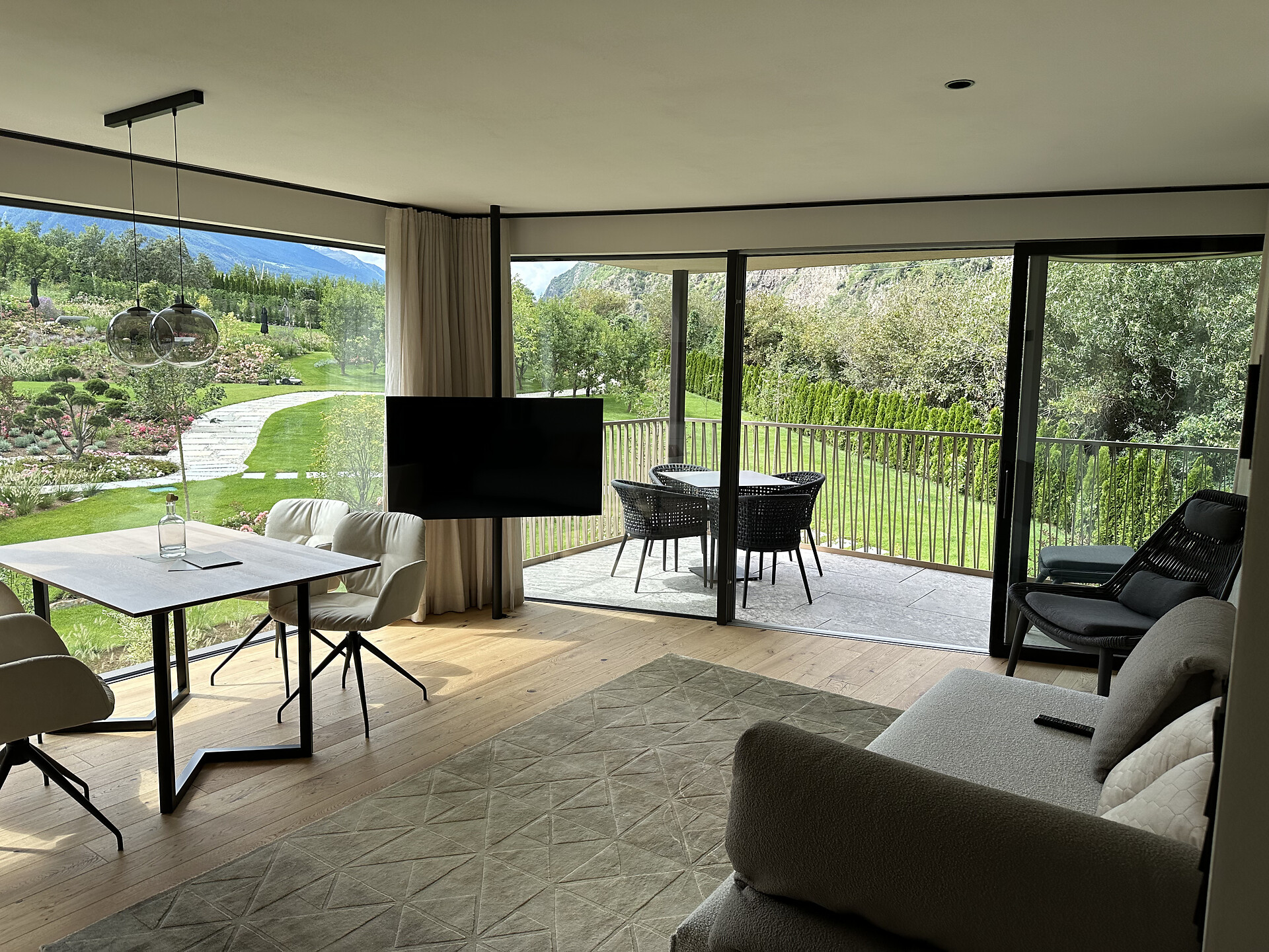 Doppelbett, Balkon, Terrasse, Klimaanlage, Nichtraucher-Apartment, Wohnküche, Kaffeemaschine, Geschirrspülmaschine, Geschirrausstattung, Dusche/Bad, Separates WC, Bidet, Haarfön, Badetücher, TV, Satellit/Kabel, WLAN, Endreinigung inbegriffen, Haupthaus, Panoramablick