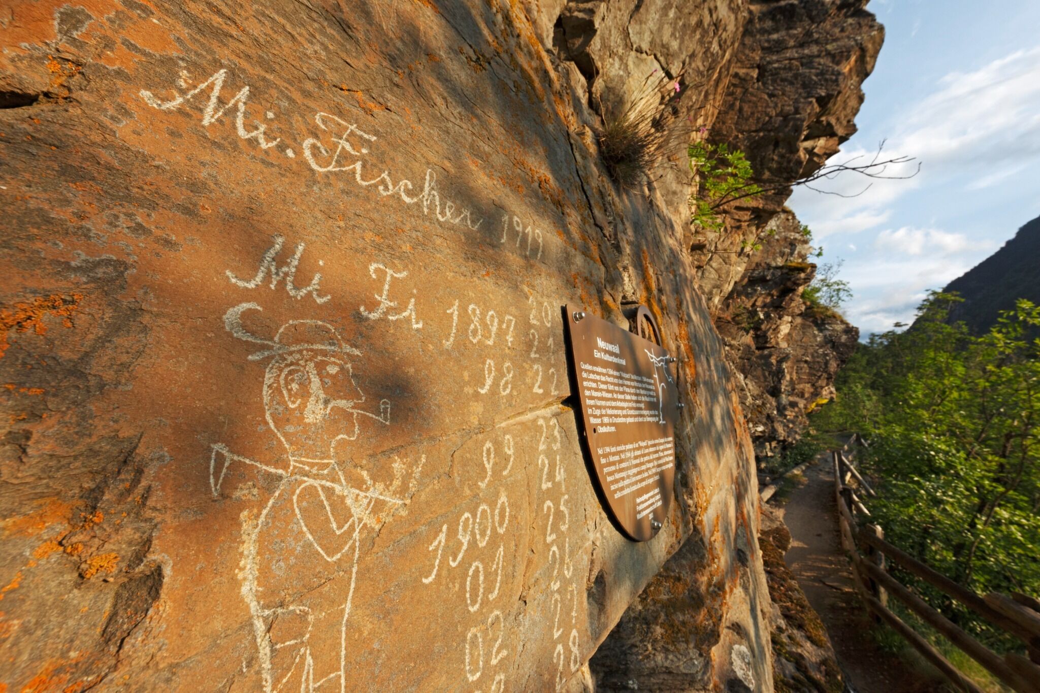 Auf den Spuren der alten Felszeichnungen der Waaler. Wir starten beim IceForum in Latsch und folgen der Weg Nummer 5 bis zum Picknick Platz Margrinböden. Dort genießen wir den Ausblick über die Burgruinen Ober-& Untermontani. Anschließen geht es weiter bis zur Weggablung wo wir abwärts den Wegnummer 5a bis zum Bierkeller folgen. Von dort geht es durch die Obstplantagen über die Asphaltstraße zurück zum Ausgangspunkt. Variante: wer es länger mag kann von den Marginböden über die Burgruinen Ober-& Untermontani absteigen und den Mareinwaal über den Bierkeller zurücklaufen.