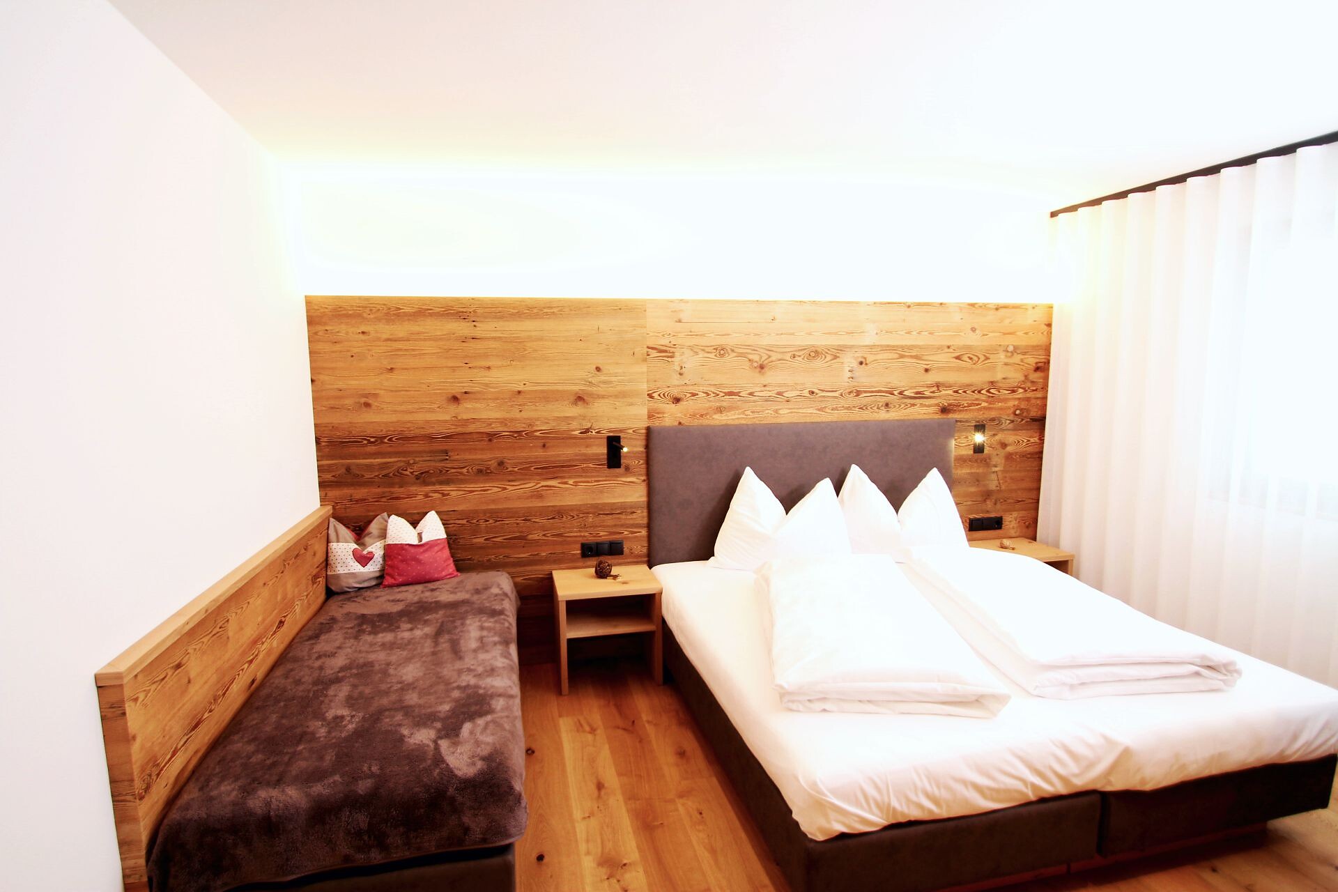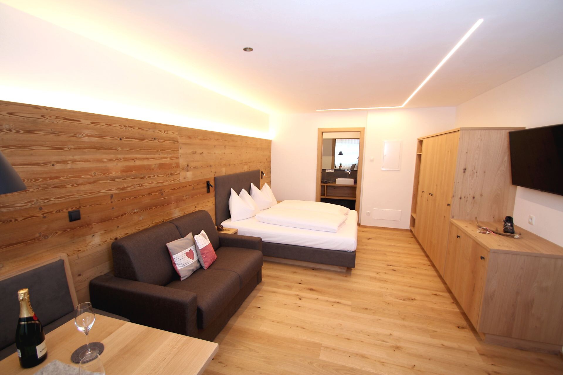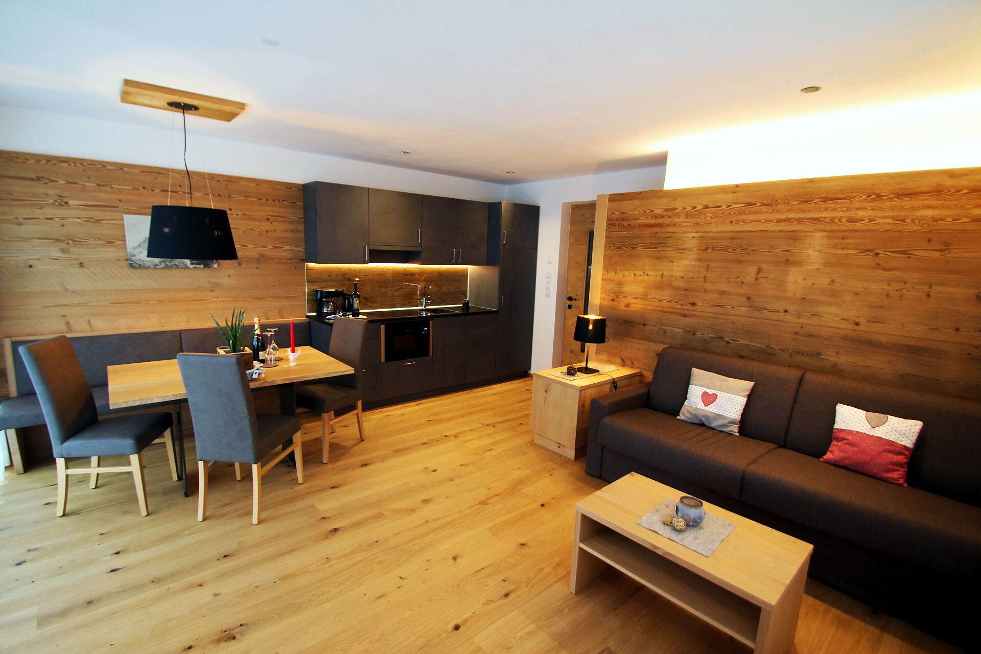 2-Raum-Chalet: Das Chalet "Ortler" (65 m²) ist für maximal 5 Personen konzipiert. Das Chalet verfügt über ein Schlafzimmer, in welchem sich ein Doppelbett und ein drittes Bett befindet. Weiters verfügt es über ein Badezimmer und ein Wohnzimmer. Die Küche ist als Verlängerung im Wohnraum integriert und ist mit sämtlichen Kochutensilien ausgestattet. Im Wohnraum steht Ihnen zudem ein Doppelschlafsofa mit Matratze zur Verfügung. Das Chalet verfügt über eine großzügige Terrasse, welche vom Wohnraum aus begehbar ist und einen traumhaften Blick auf den König Ortler und die Königspitze ermöglicht. Vor dem Haus stehen Ihnen kostenlose Parkplätze zur Verfügung.