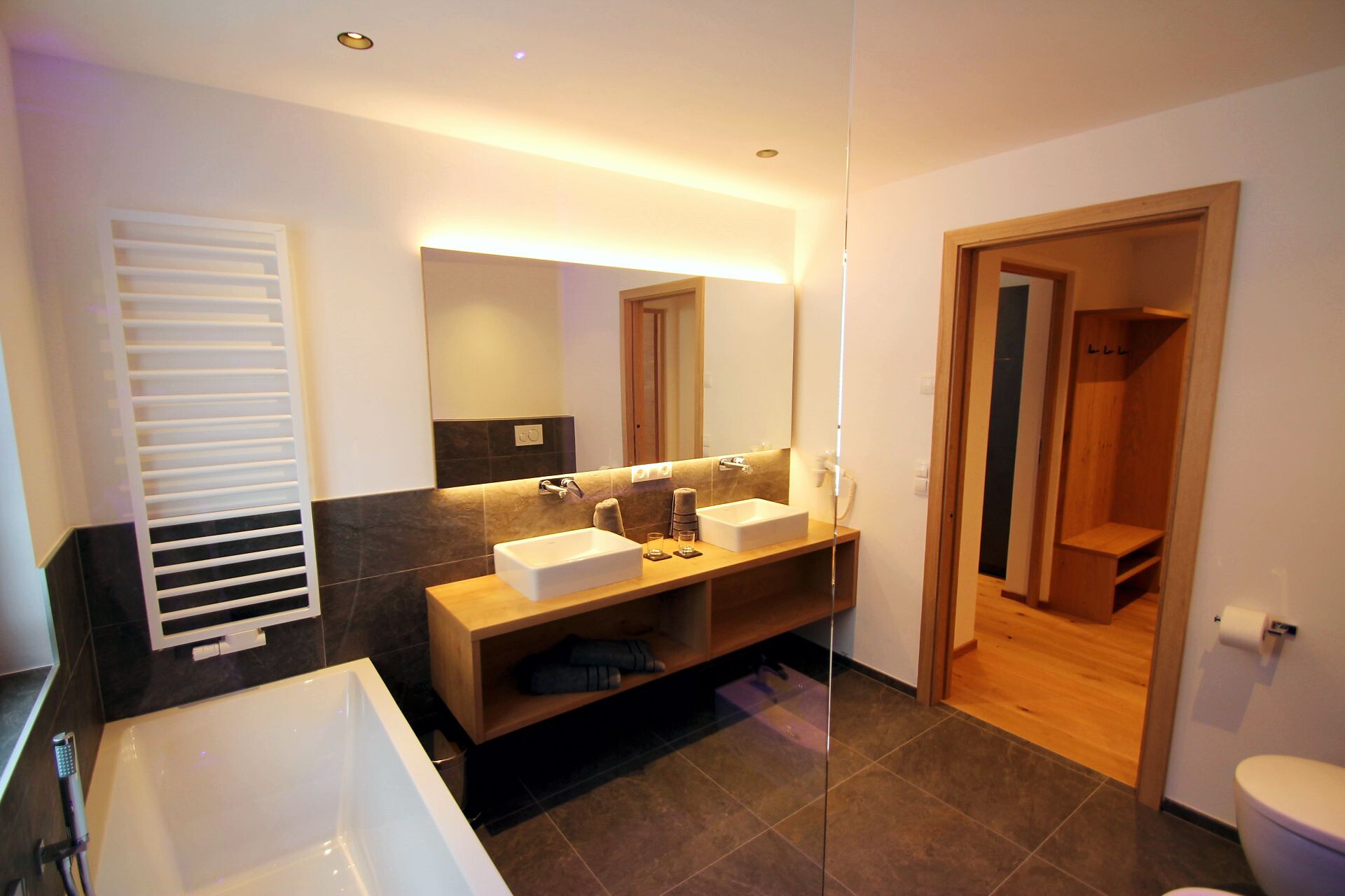 Einzelbett, Doppelbett, Babybett, Doppelschlafcouch, Balkon, Terrasse, Barrierefrei, Bettwäsche vorhanden, Safe, Nichtraucher-Apartment, Wohnküche, Kaffeemaschine, Geschirrspülmaschine, Elektroherd, Mikrowelle, Geschirrausstattung, Kochfeld, Dusche/Bad, Bidet, Haarfön, Badetücher, Badewanne, Ferienwohnung mit Sauna, Ferienwohnung mit Infrarotkabine, TV, Satellit/Kabel, WLAN, Internetanschluss, Haupthaus, Panoramablick