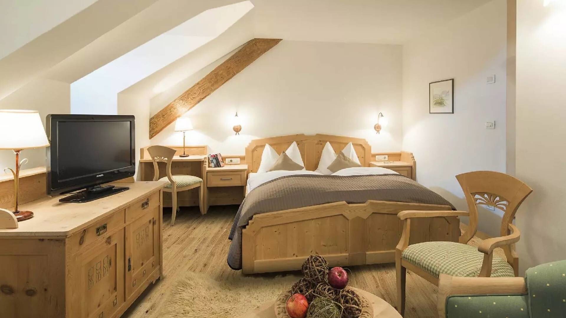 Hier genießen Sie einen unvergleichlichen Blick auf die schönsten und mächtigsten Berge Südtirols und echte, alpine Gemütlichkeit: Stube und Lounge mit offenen Kamin zum Relaxen, große Panoramafenster zum Genießen der Bergkulisse und erlesene Köstlichkeiten aus Küche und Keller.