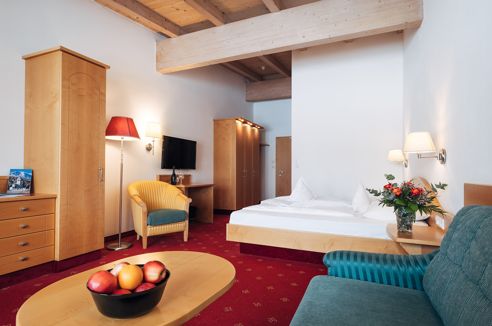 Ausstattung: Zweibettzimmer, Doppelzimmer, Doppelbett, Balkon, Wohnecke, Dusche / Bad, Bidet, Haarfön, TV, Satellit/Kabel, WLAN, Haupthaus, Panoramablick