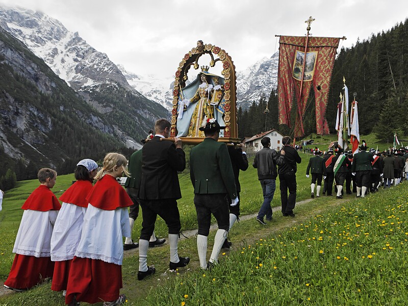 Fronleichnam, das Fest am Donnerstag der zweiten Woche nach Pfingsten, wird nunmehr seit der Abschaffung kirchlicher Feiertage am folgenden Sonntag gehalten. Damit hat wohl das geachtetste wie geliebteste Fest, das sich nach der Einführung von Papst Urban IV. 1264 in der Bevölkerung fest verwurzelt hat, ein zweites Mal nach 1919 durch Verbote und Formveränderungen an Würde verloren. Wir betrachten daher den Heili-Bluats-Tog vor diesen befremdenden Eingriffen.