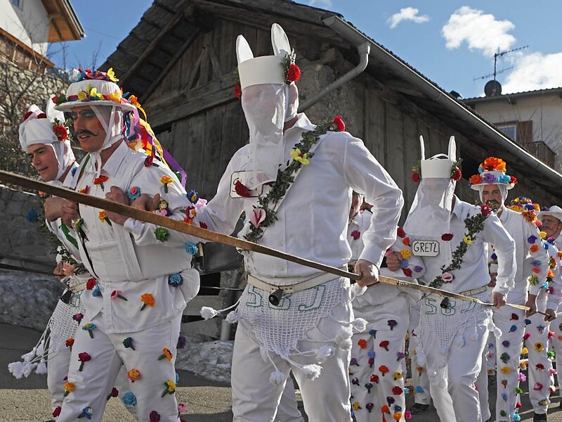 Der unsinnige Pfinz- oder Zusltog, Prads größter Feiertag schlechthin, birgt manchen Glauben aus vorchristlicher Zeit: Fängt jemand an diesem Tag eine neue Arbeit an, misslingt sie; wer es trotzdem wagt, gehört zu den Verworfenen. Oder, wer sich am Zusltag verletzt, bleibt unheilbar