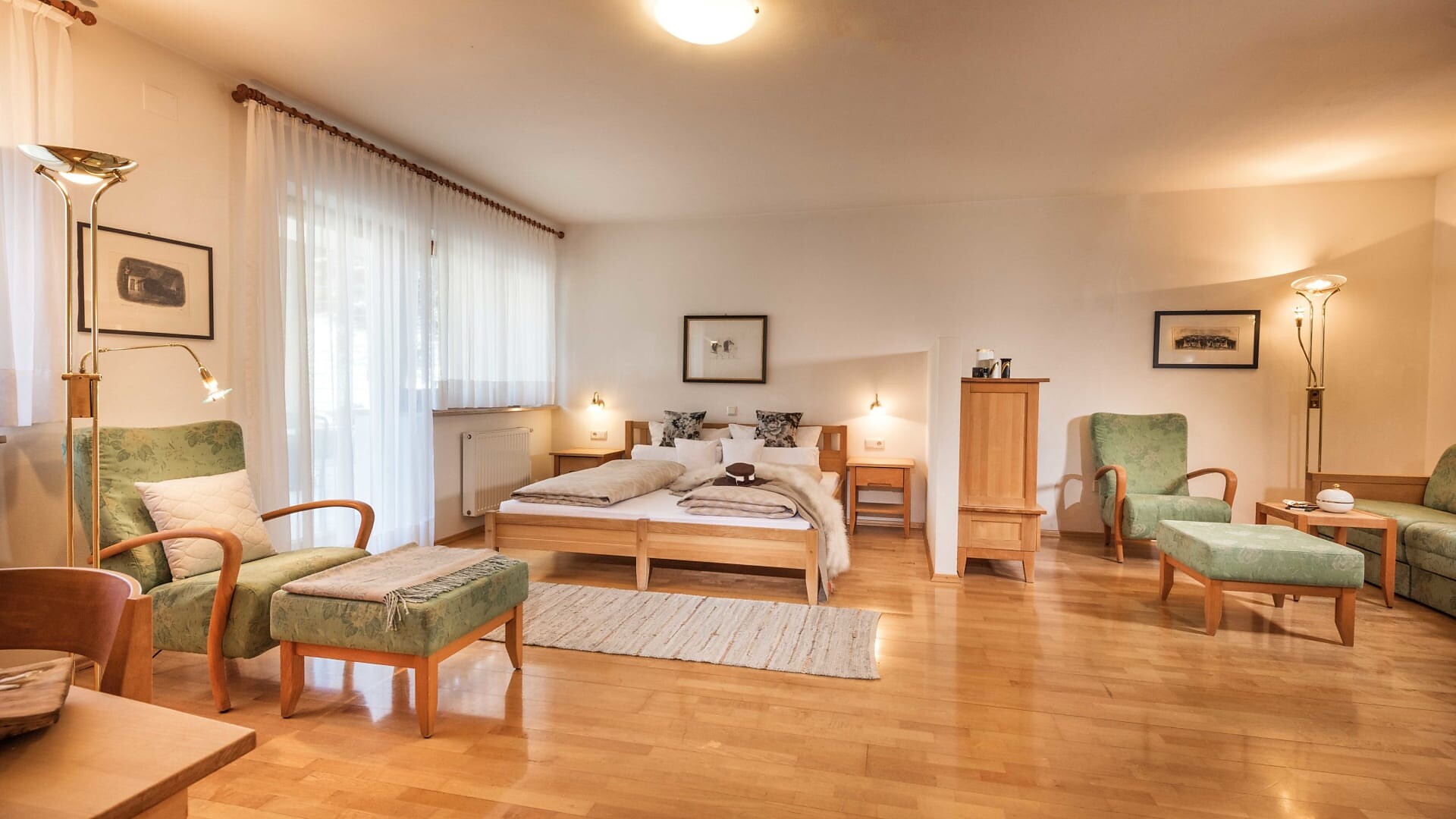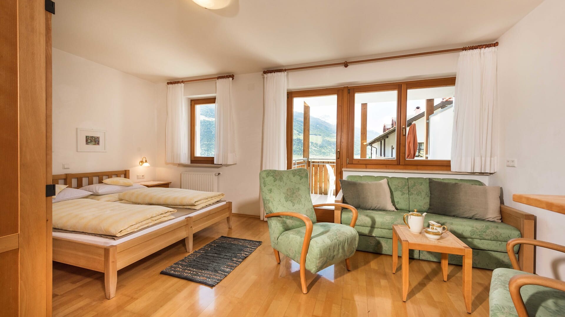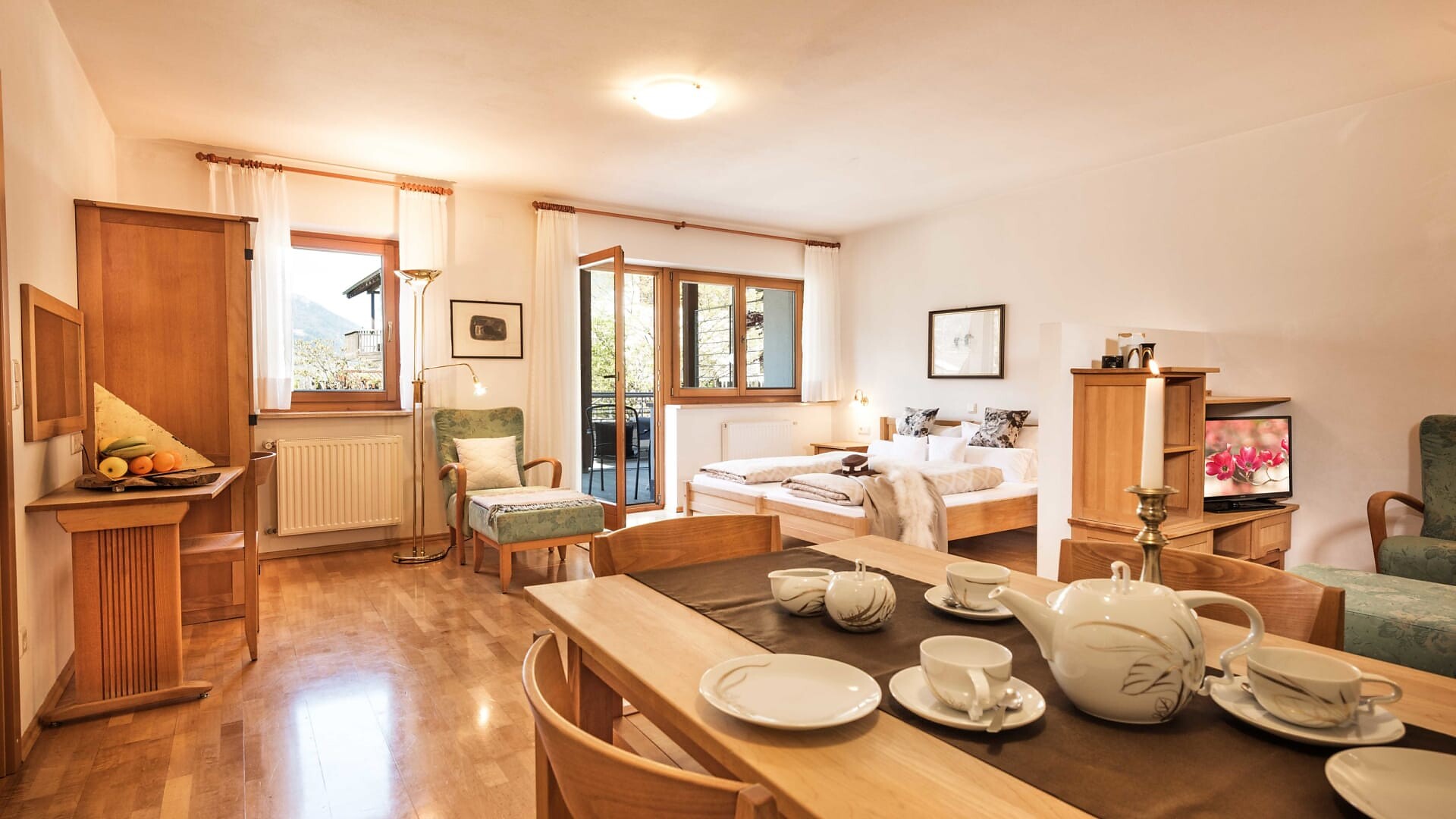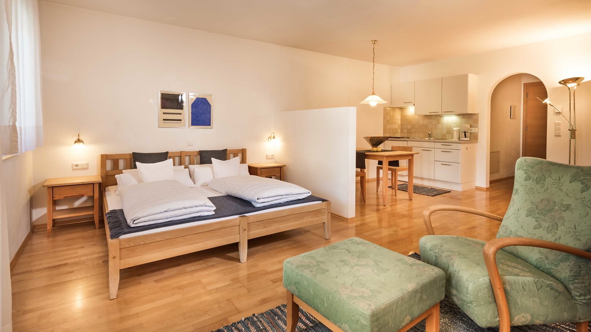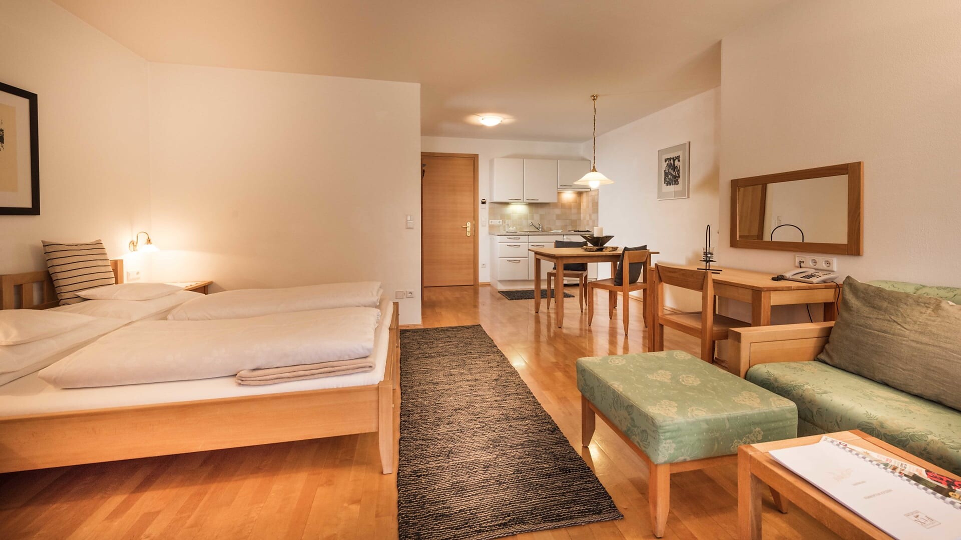 Unsere Appartments sind alle in Naturholz ausgestattet. Neben Hallenbad mit Verbindung ins Freibad und Wellnessanlage (3 verschiedene Saunas, Hot-Whirlpool, Solarium, Relaxraum, Kinderpool) vefügen wir auch über eine Liegewiese, Holzgrill, hauseigenen Spielplatz (Schaukel, Sandkasten), Parkplatz, Garage, Liftzugang, Bar und Kaffeeterrasse.