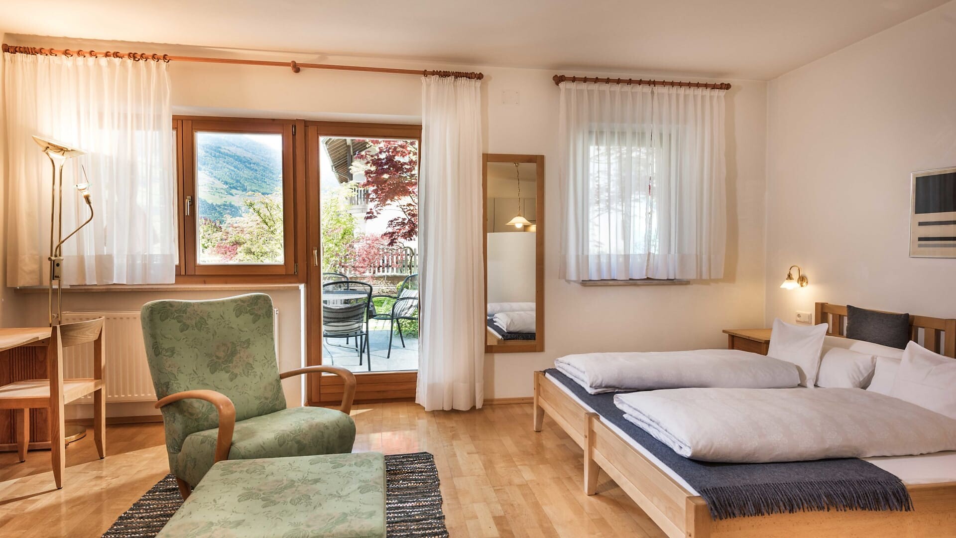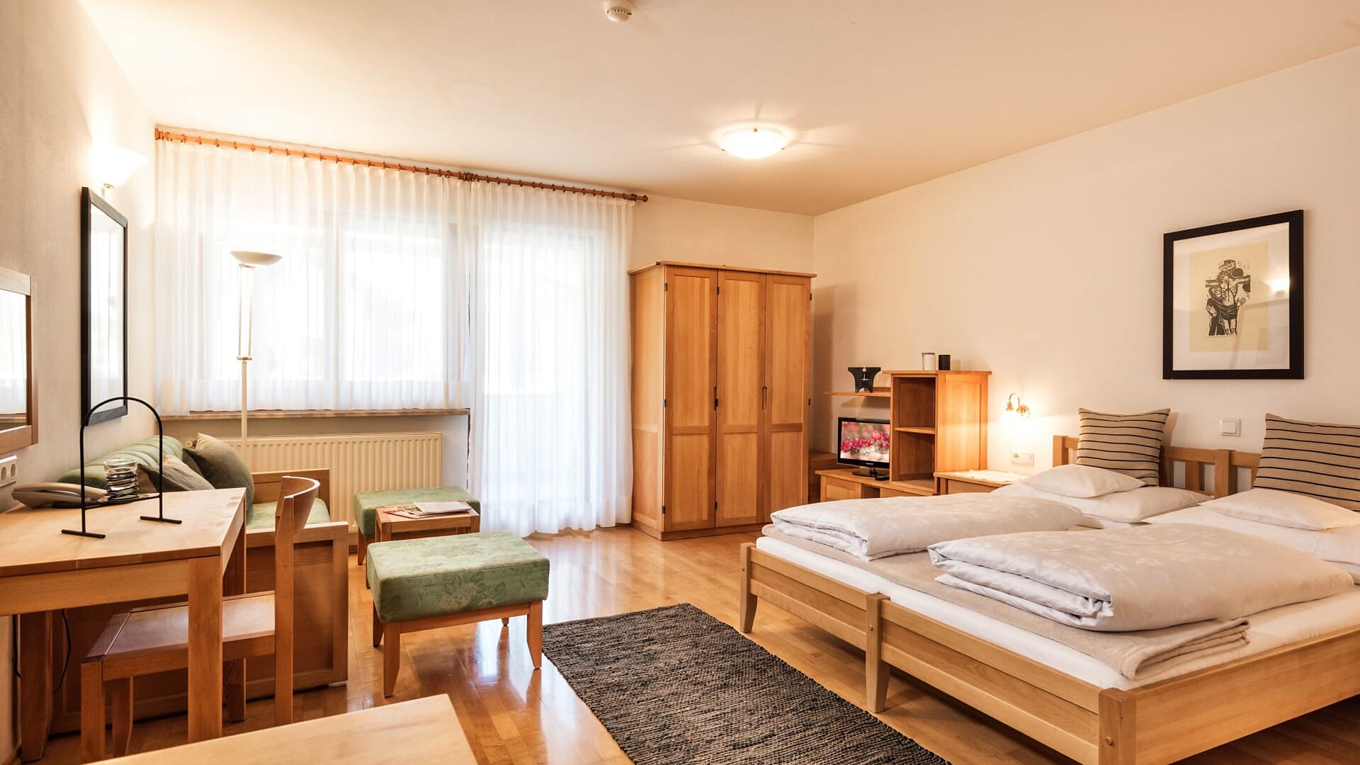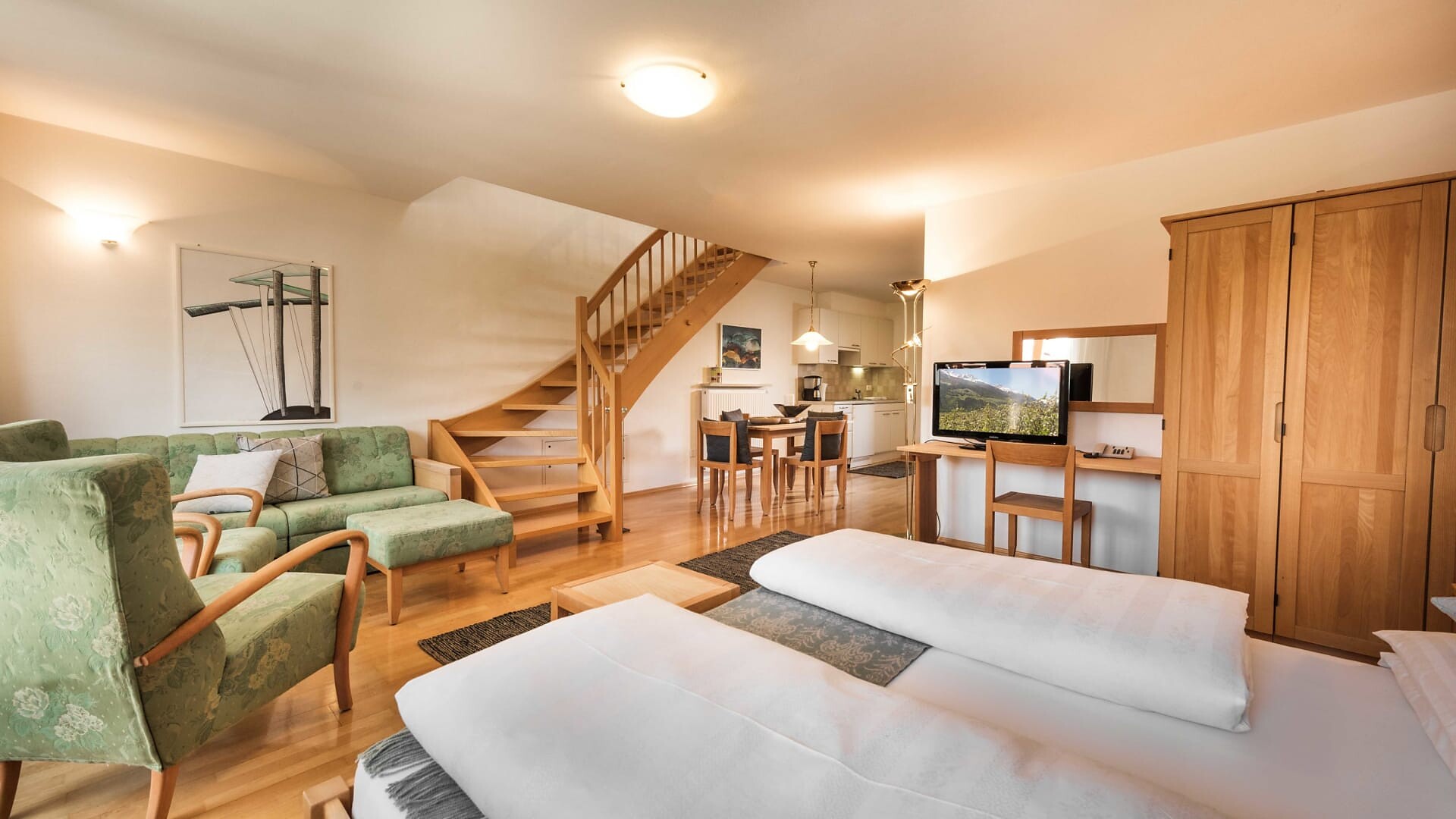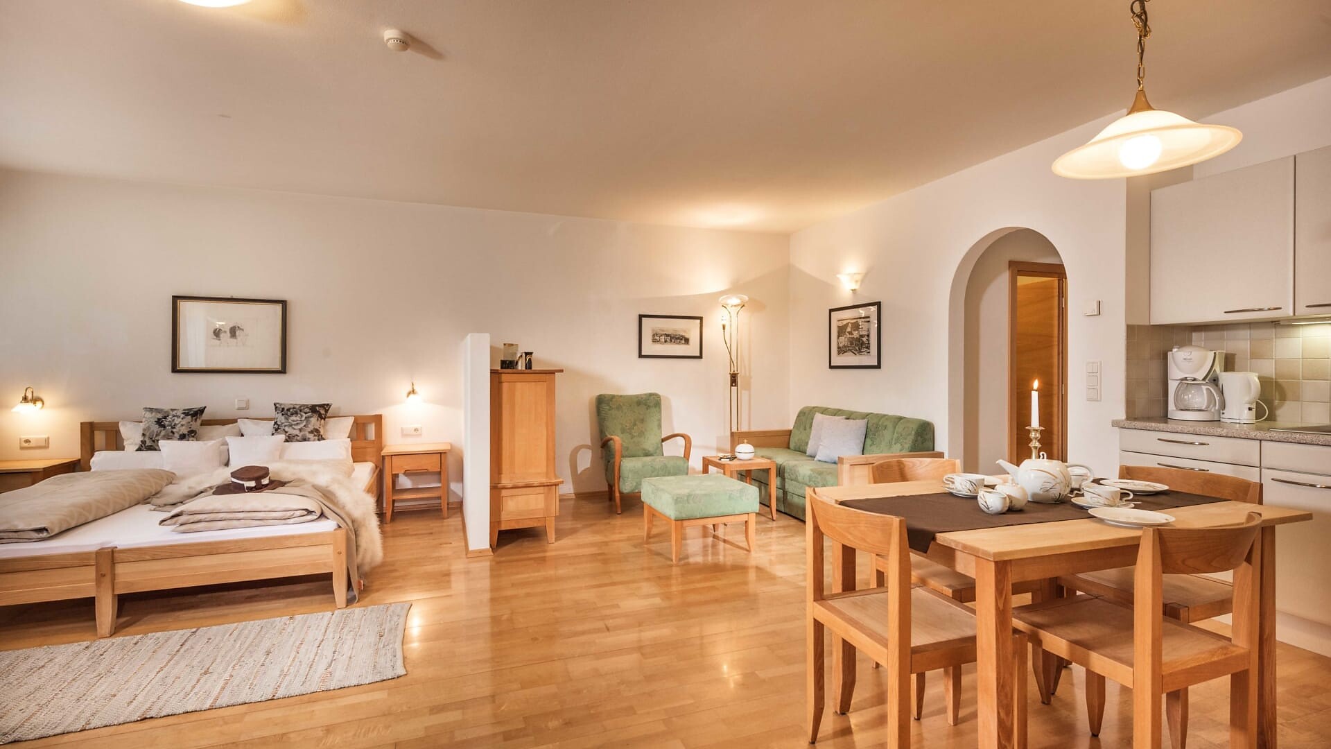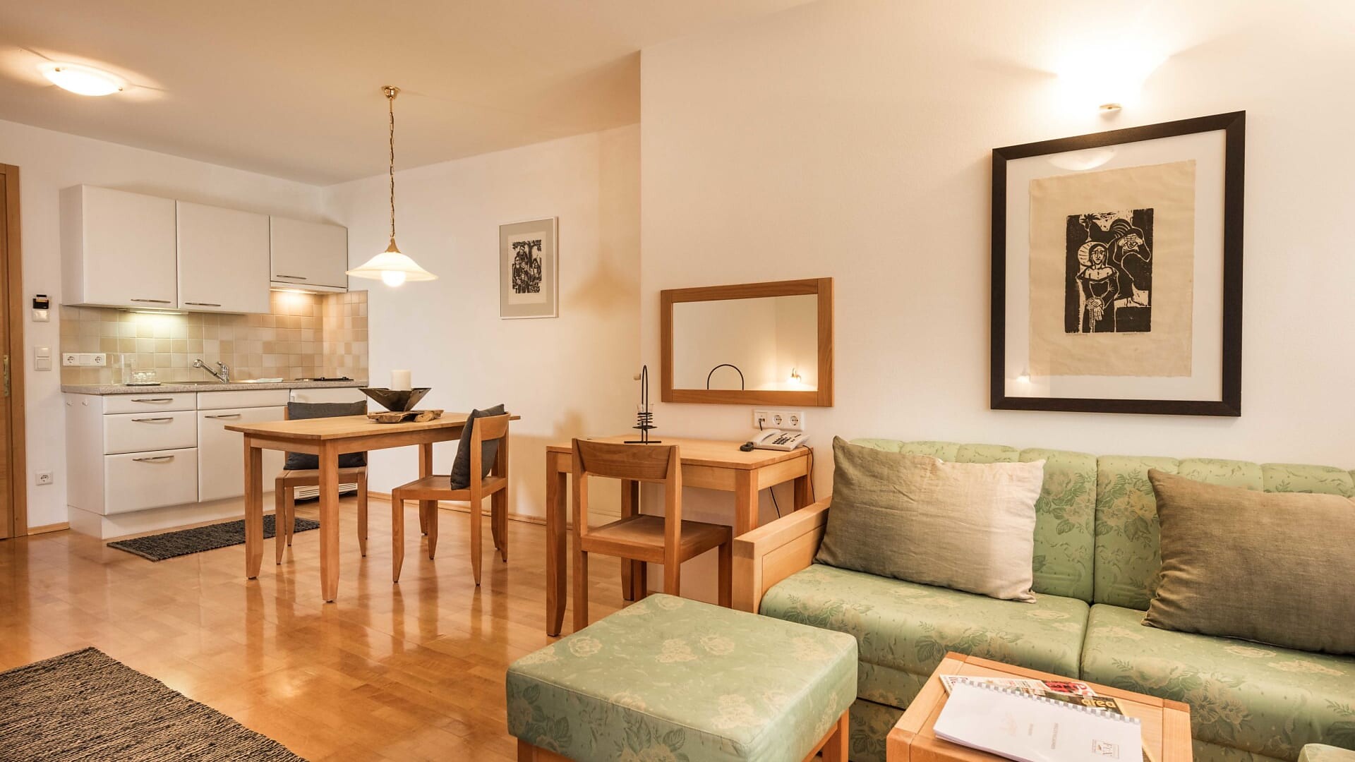 Unsere Appartments sind alle in Naturholz ausgestattet. Neben Hallenbad mit Verbindung ins Freibad und Wellnessanlage (3 verschiedene Saunas, Hot-Whirlpool, Solarium, Relaxraum, Kinderpool) vefügen wir auch über eine Liegewiese, Holzgrill, hauseigenen Spielplatz (Schaukel, Sandkasten), Parkplatz, Garage, Liftzugang, Bar und Kaffeeterrasse.