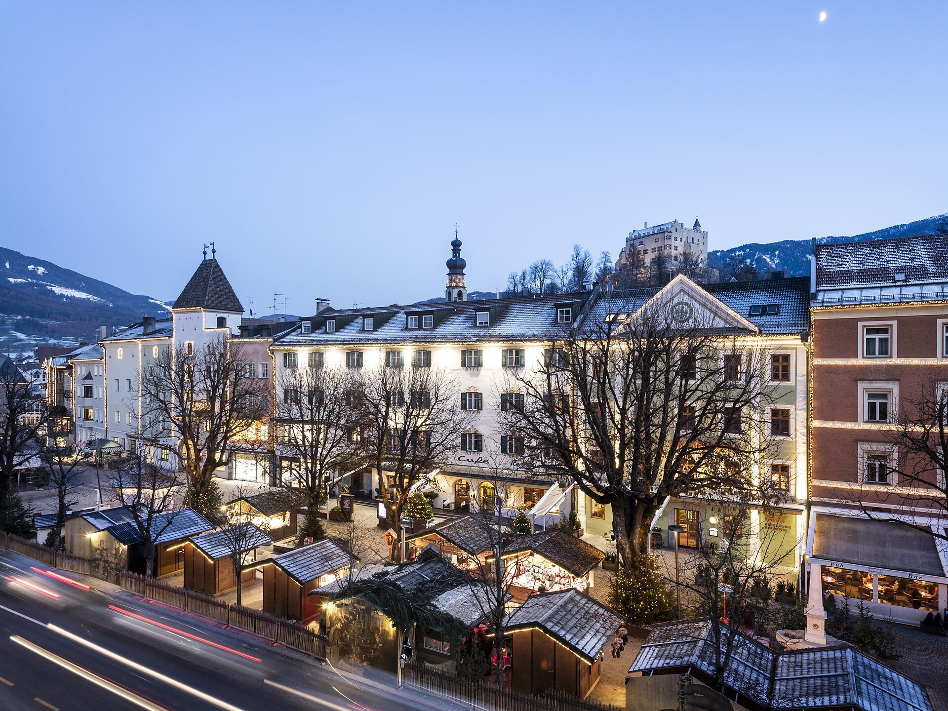 Bruneck verbindet den Charme einer Kleinstadt mit dem unverkennbaren Flair eines Wintersportortes. Am Fuße des verschneiten Hausbergs Kronplatz, beim Schlendern durch die Gassen der Altstadt erlebt man diese besondere Mischung aus alpiner Gemütlichkeit und italienischem Dolce Vita. Gerade deshalb ist während der Vorweihnachtszeit ein Abstecher auf den Brunecker Christkindlmarkt ein absolutes Muss. Die weihnachtliche Vorfreude macht sich in der gesamten Stadt bemerkbar. Liebevoll dekorierte Stände laden zum Stöbern zwischen Kunsthandwerk, süßen Köstlichkeiten, handgefertigten Dekorationen und kulinarischen Leckerbissen ein. Und mit einer Tasse Glühwein lässt sich bei geselligem Beisammensein ein Winterabend gemütlich ausklingen.