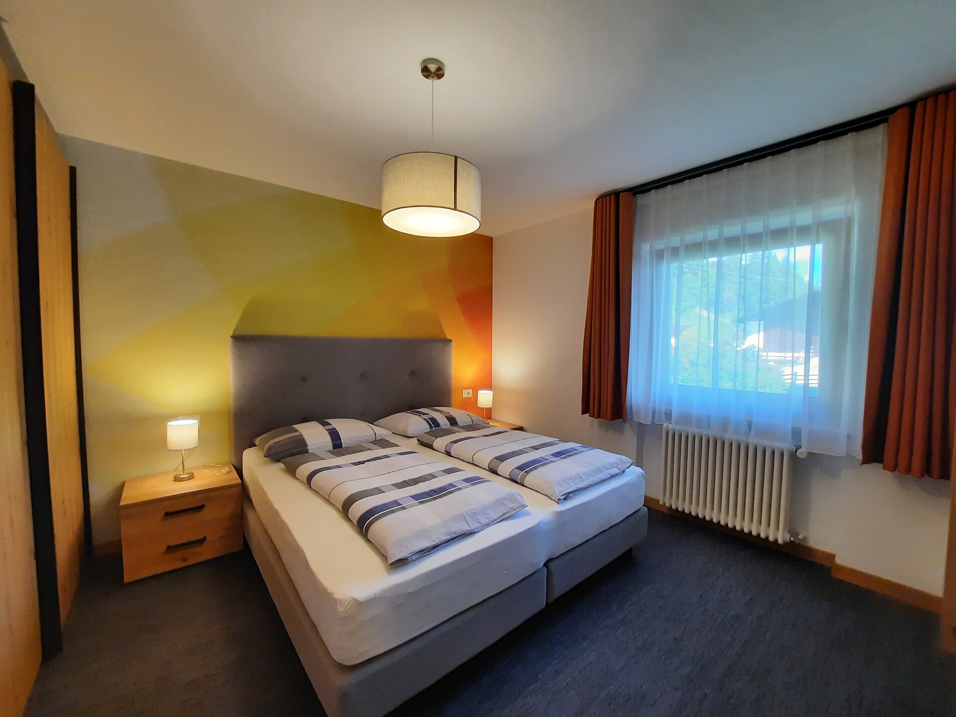 Fewo mit zwei getrennten Schlafzimmern (je ein Doppelbettzimmer mit Dusche/WC pro Zimmer). Kindergitterbettchen auf Anfrage.