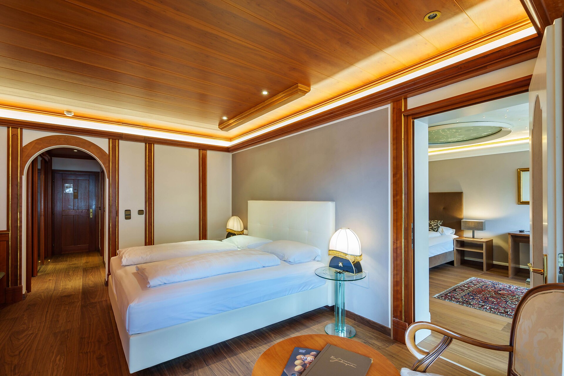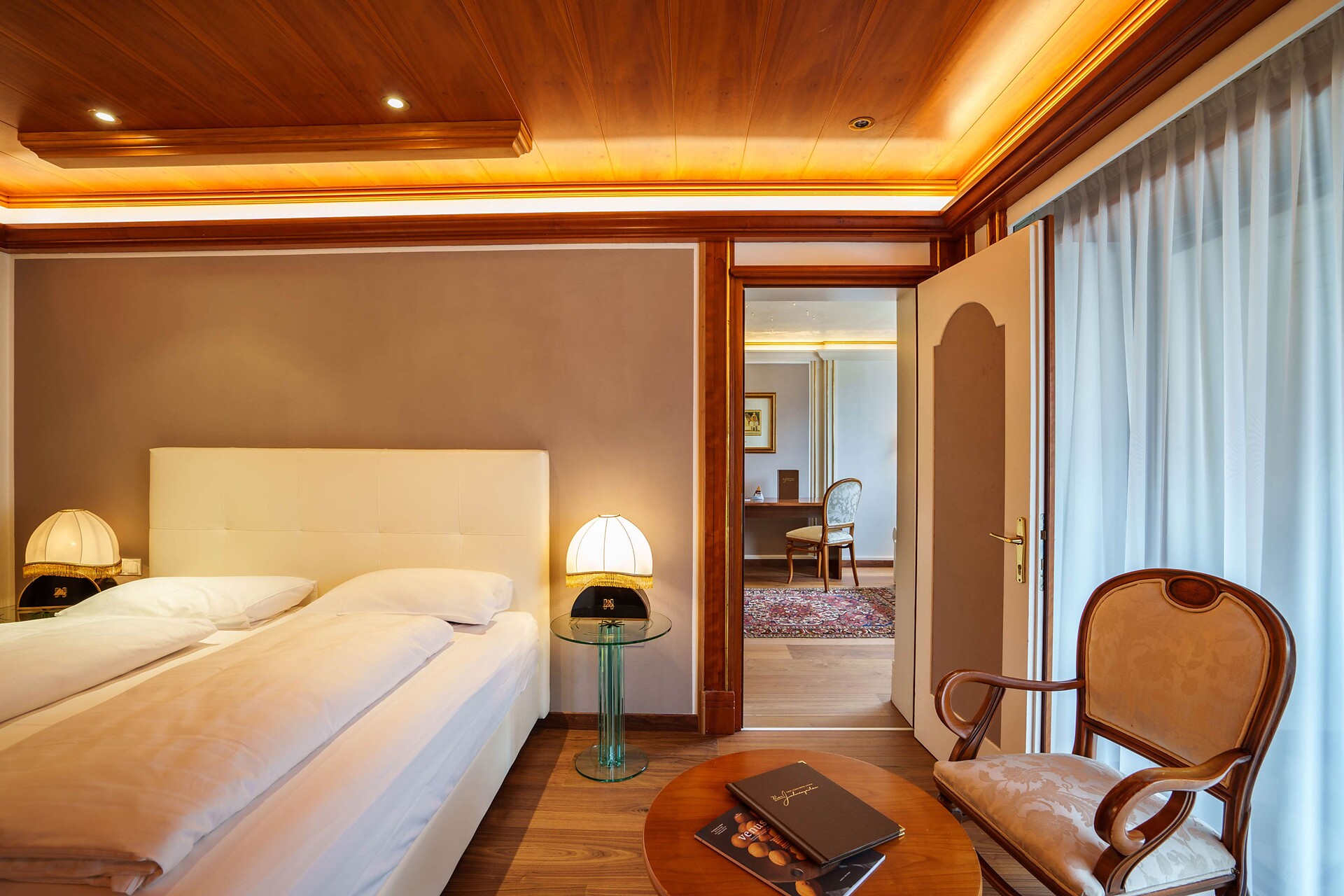 Zimmer: Großes Bett, Holz-/Parkettboden, Schrank, Flachbild-TV mit Satelliten-Anschluss, Klimaanlage, Sitzecke, Schreibtisch, Balkon mit Bergblick, Safe, Minibar, Weckservice, Telefon. Badezimmer: Große Dusche, Bidet, WC, Handtücher, Badekorb, kuschelige Bademäntel, Hausschuhe, Haartrockner, kostenfreie Pflegeprodukte.