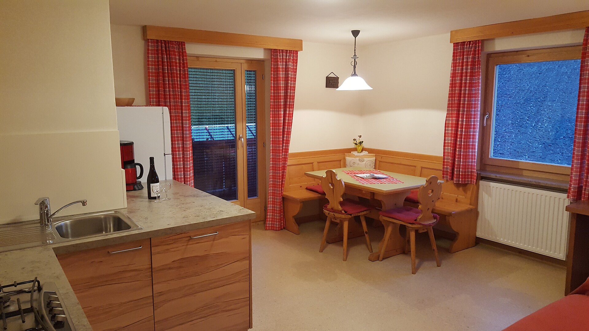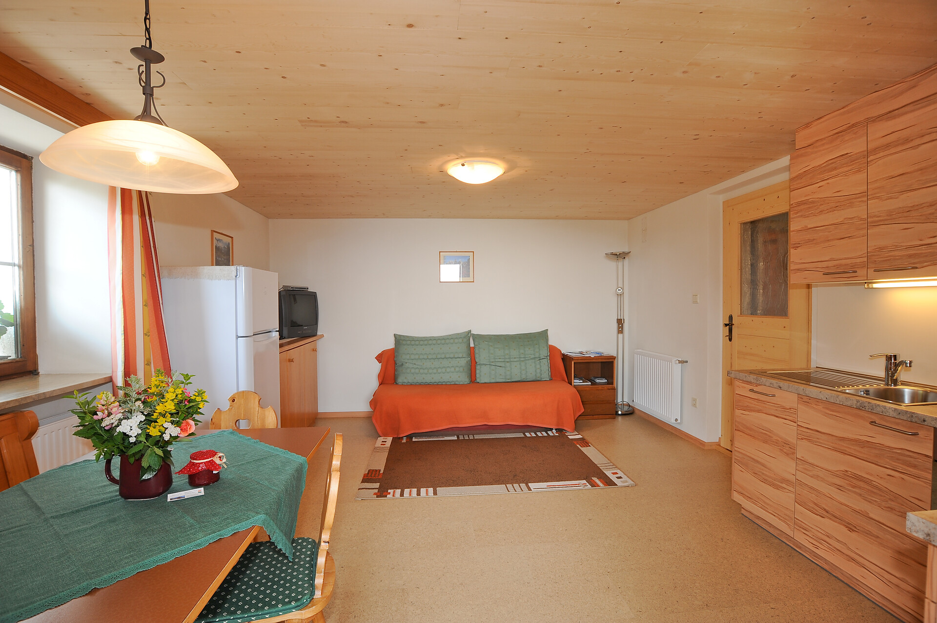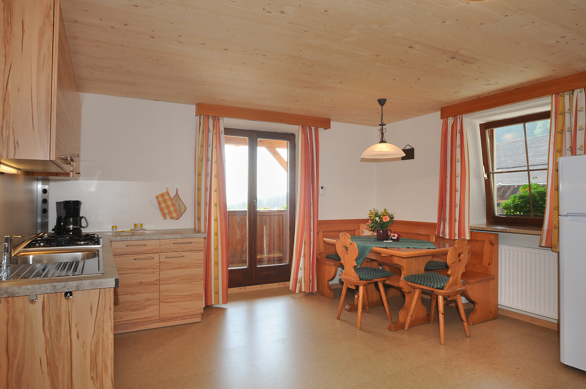 In unseren Ferienwohnungen haben wir selbst Hand angelegt und viel heimisches Zirben-, Lärchen- und Fichtenholz verwendet; geheizt wird mit Holz aus den Hof-nahen Wäldern und das Wasser wird mit Solarenergie erwärmt. Beide Ferienwohnungen sind komplett neu eingerichtet und verfügen über eine Wohnküche, zwei Schlafzimmer und Balkon.