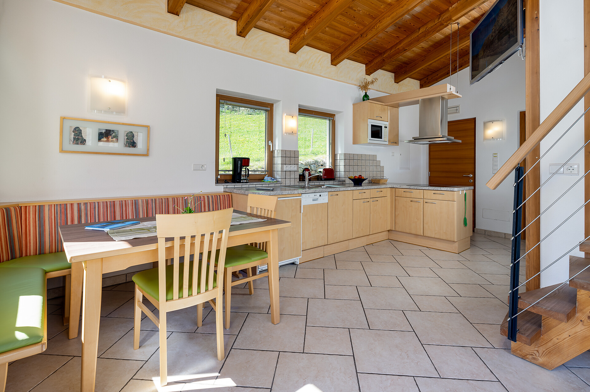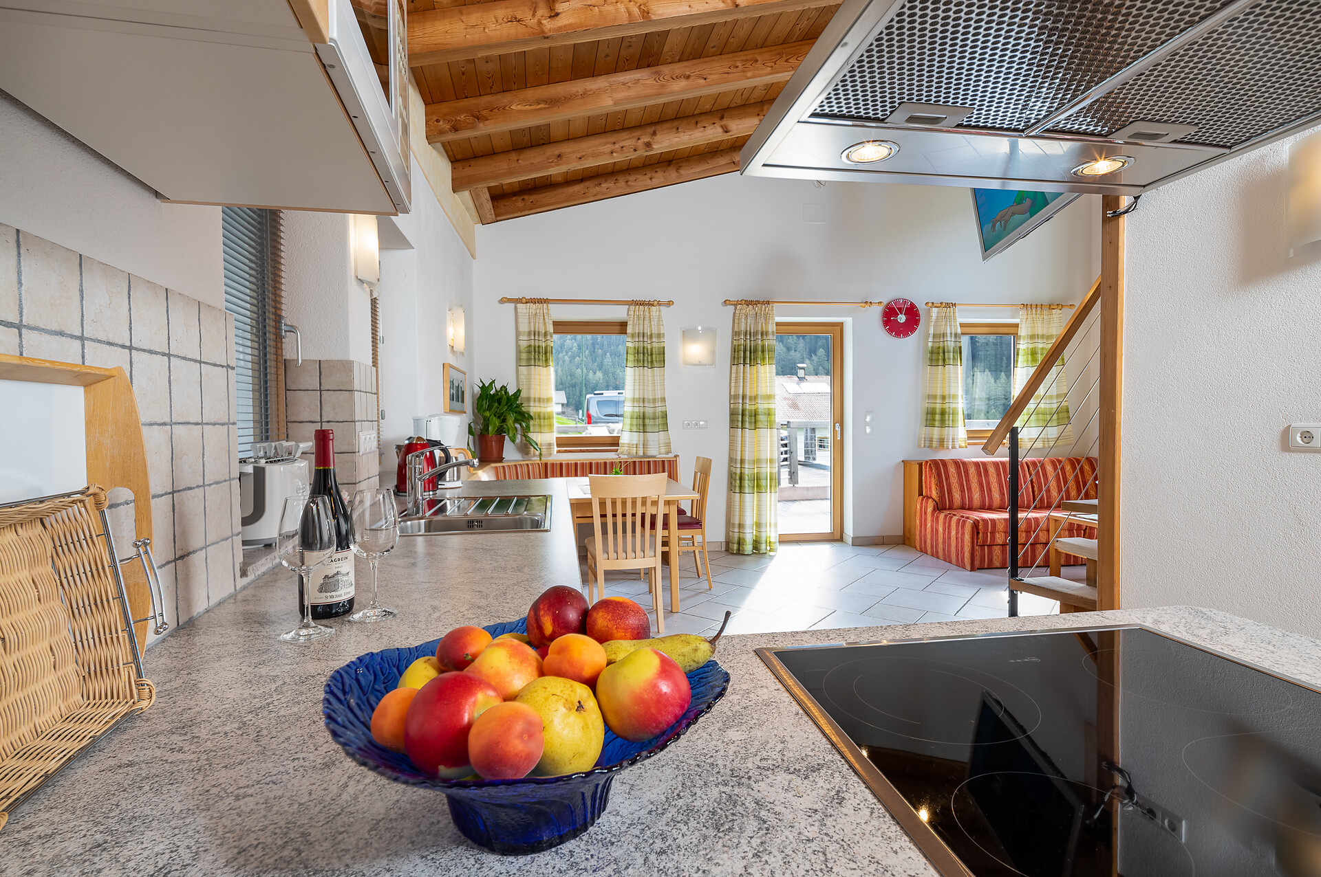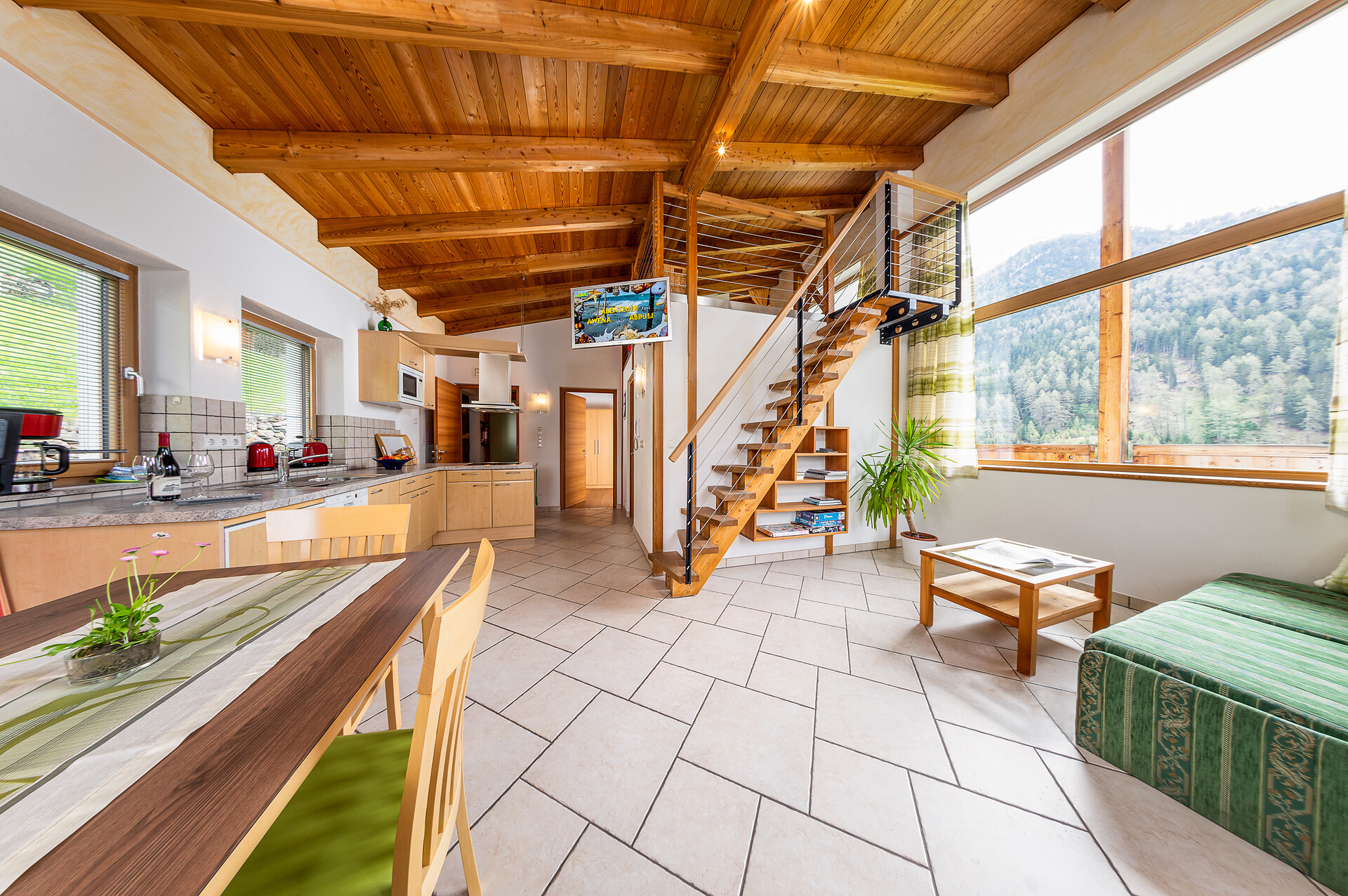Doppelbett, Zustellbett, Babybett, Bettsofa, Balkon, Terrasse, Bettwäsche vorhanden, Nichtraucher-Apartment, Ebenerdig, Wohnküche, Kaffeemaschine, Geschirrspülmaschine, Elektroherd, Mikrowelle, Geschirrausstattung, Dusche/Bad, Bidet, Haarfön, Badetücher, TV, WLAN, Endreinigung inbegriffen, Haupthaus, Panoramablick, Südseite