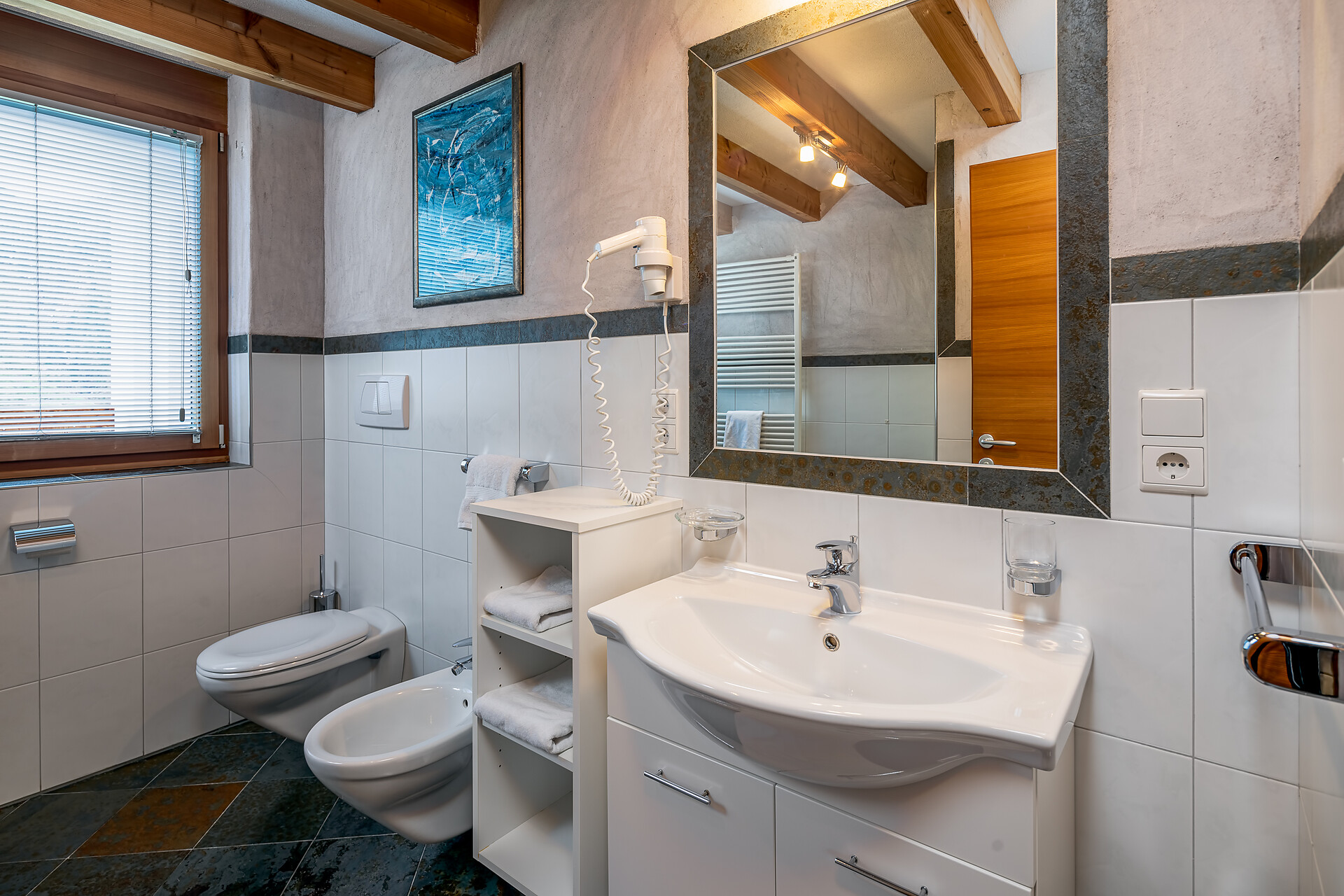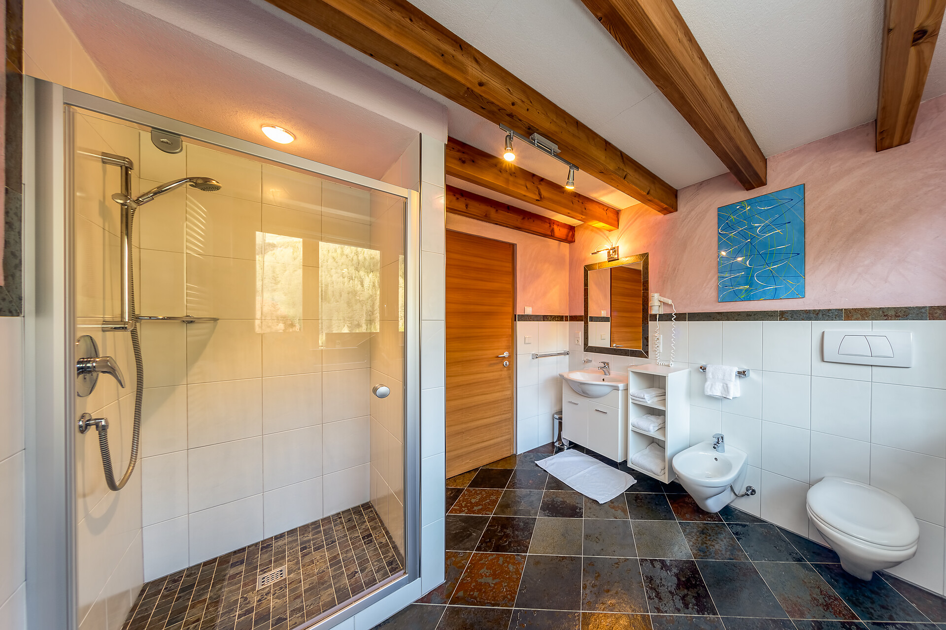 Doppelbett, Zustellbett, Babybett, Bettsofa, Balkon, Terrasse, Bettwäsche vorhanden, Wohnküche, Kaffeemaschine, Geschirrspülmaschine, Elektroherd, Mikrowelle, Geschirrausstattung, Dusche/Bad, Bidet, Haarfön, Badetücher, TV, Satellit/Kabel, WLAN, Endreinigung inbegriffen, Haupthaus, Panoramablick