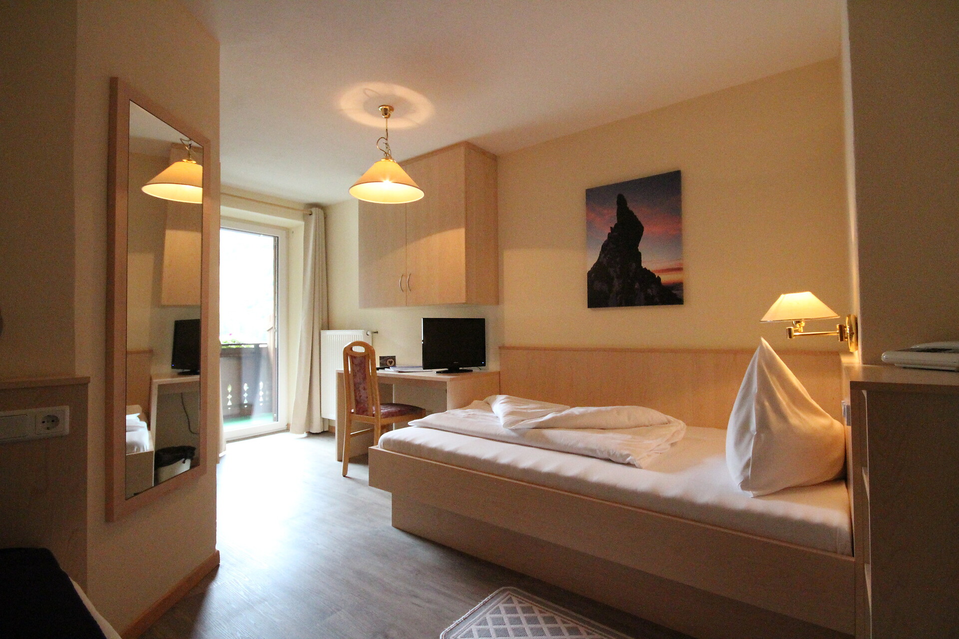 Einzelzimmer, Einzelbett, Babybett, Balkon, Dusche / Bad, Bademantel, TV, Satellit/Kabel, WLAN, Haupthaus