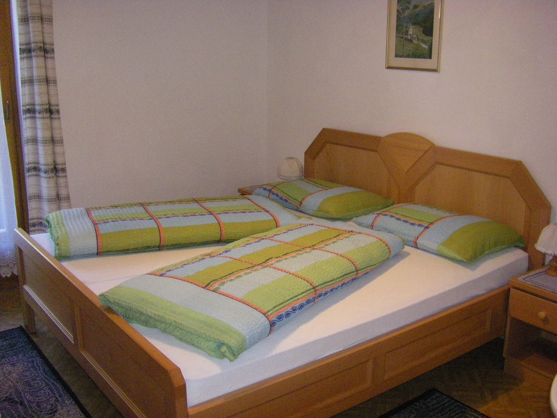 Doppelbett, Babybett, Doppelschlafcouch, Balkon, Bettwäsche vorhanden, Wohnküche, Kaffeemaschine, Geschirrspülmaschine, Elektroherd, Mikrowelle, Geschirrausstattung, Separates WC, Haarfön, Badetücher, TV, Satellit/Kabel, Reinigung auf Anfrage, Haupthaus, Südseite