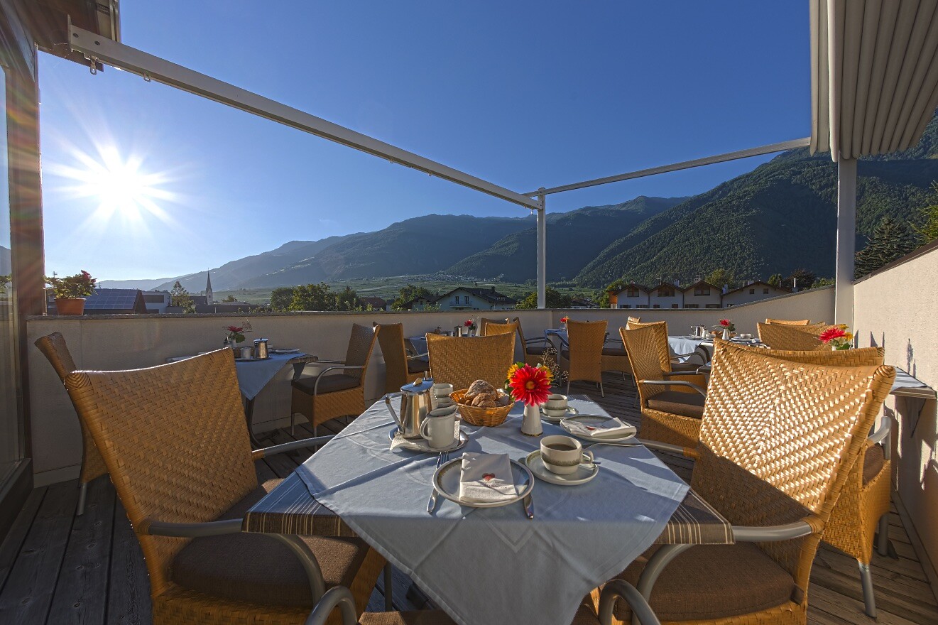 Sämtliche Zimmer mit Bad, Du/WC, Telefon, Sat-TV, Südbalkone mit Garten u. Bergblick, Garage, Internetzugang