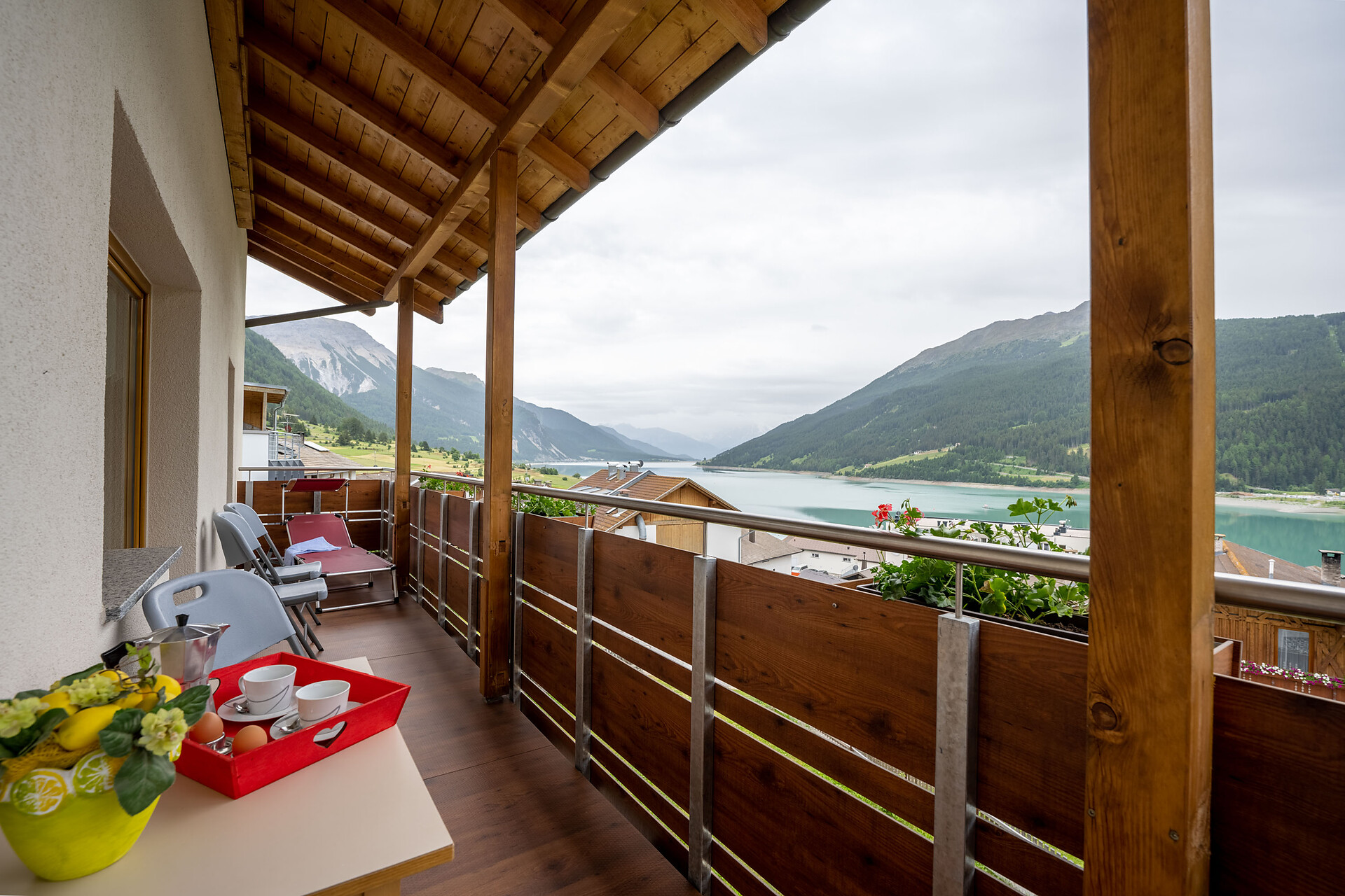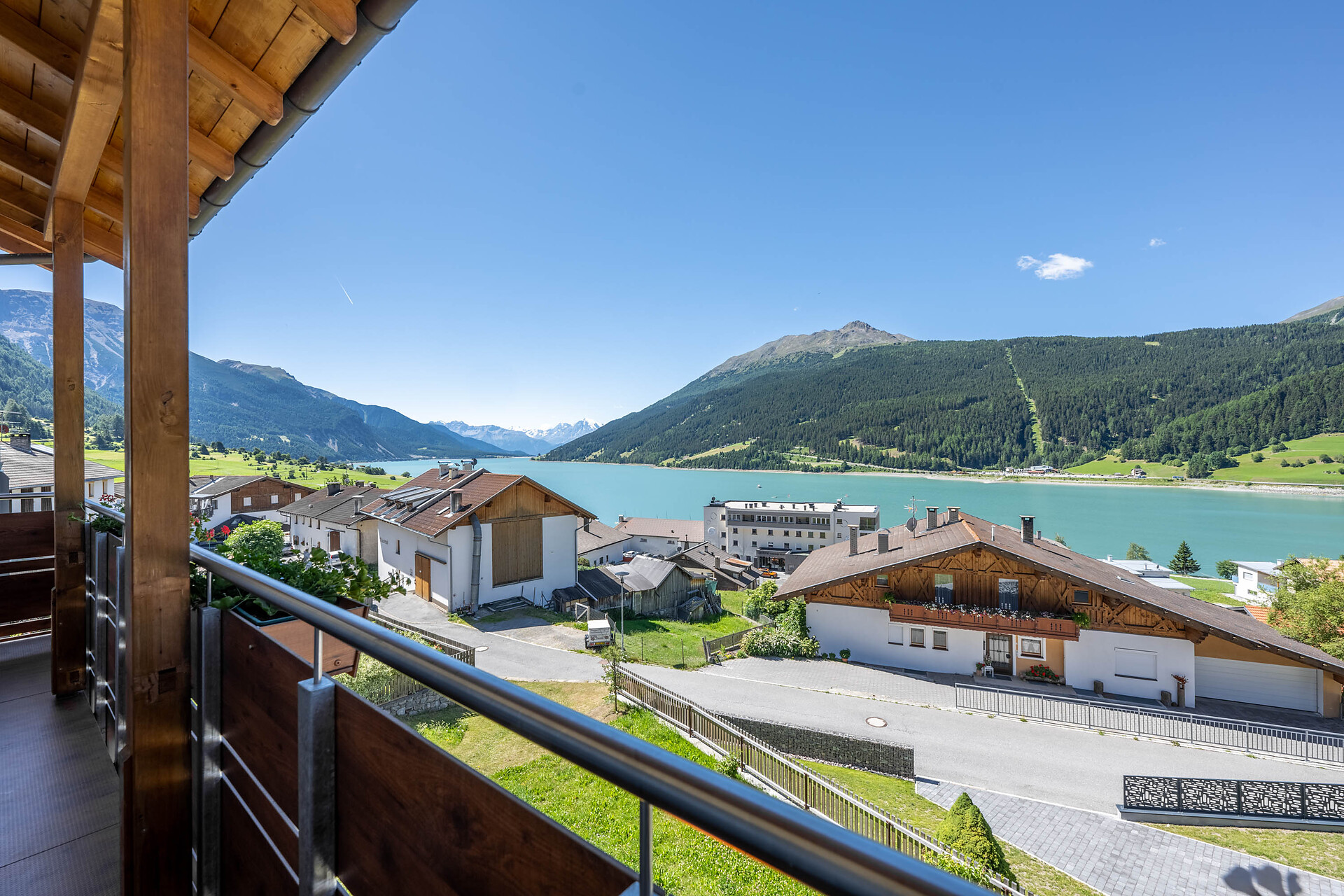 Ruhige Lage und schöne Aussicht auf den Reschensee und auf den Ortler
