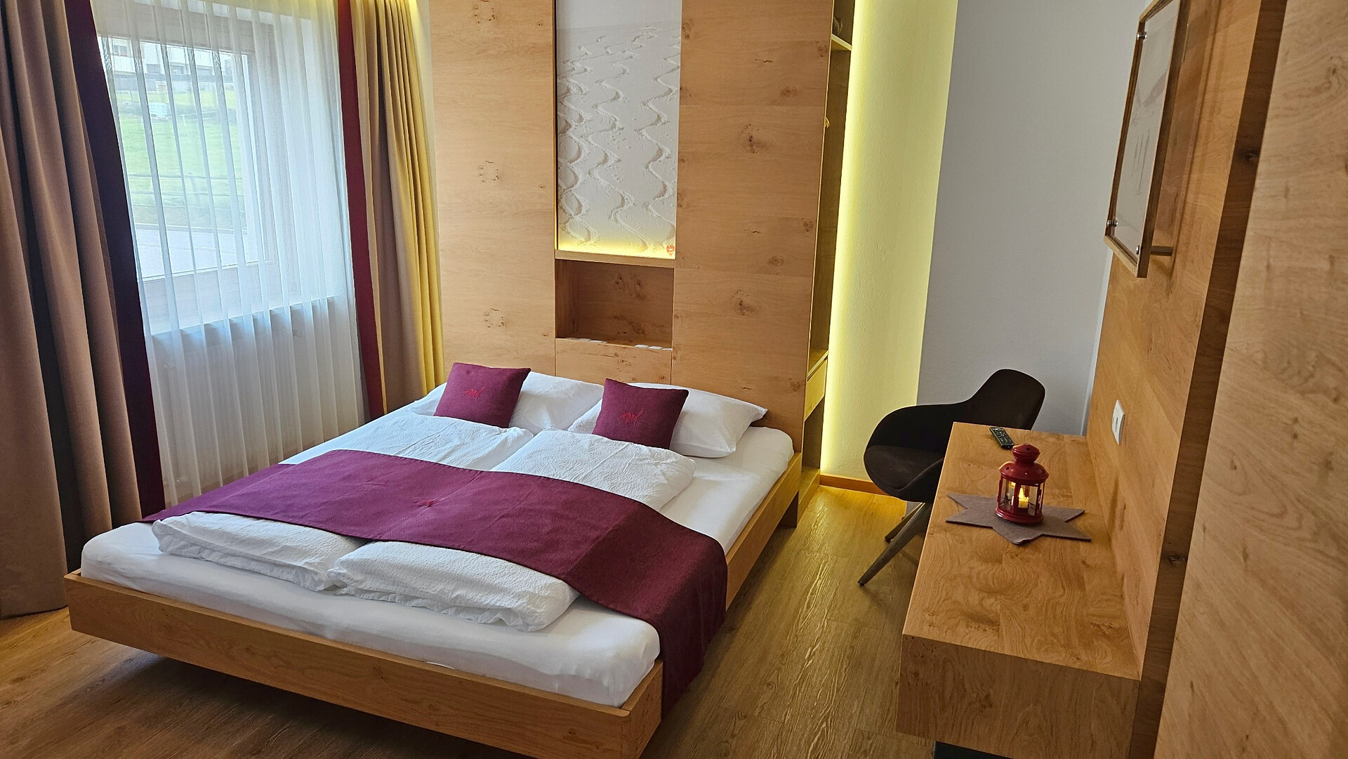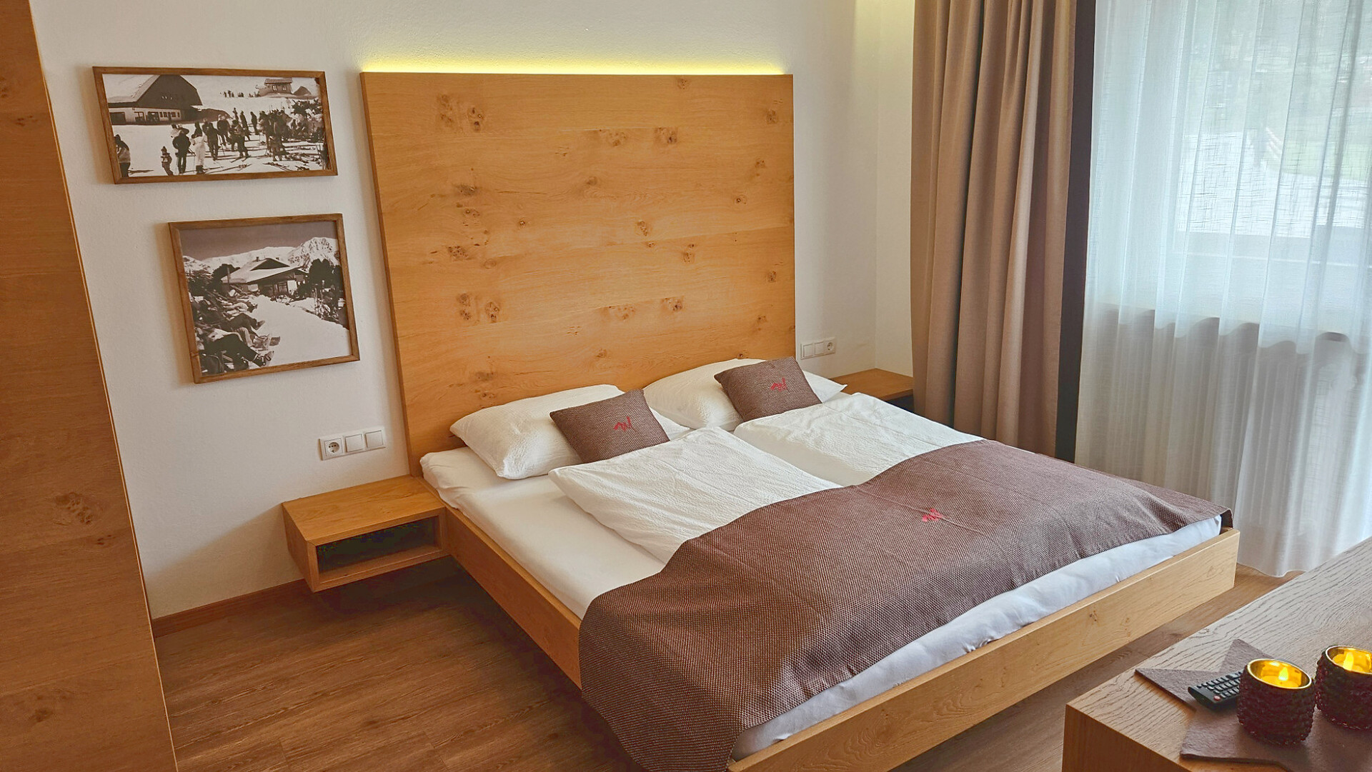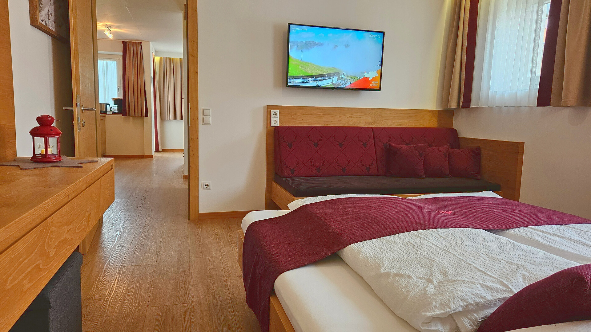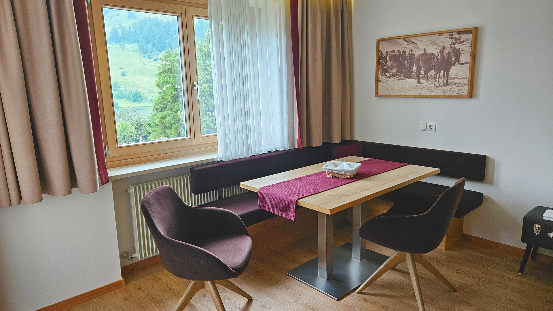 Die Ferienwohnung bietet ein gemütliches Ambiente für entspannte Tage und erinnert an das einzigartige Bergerlebnis "dinner on top" auf der Seebodenspitze.