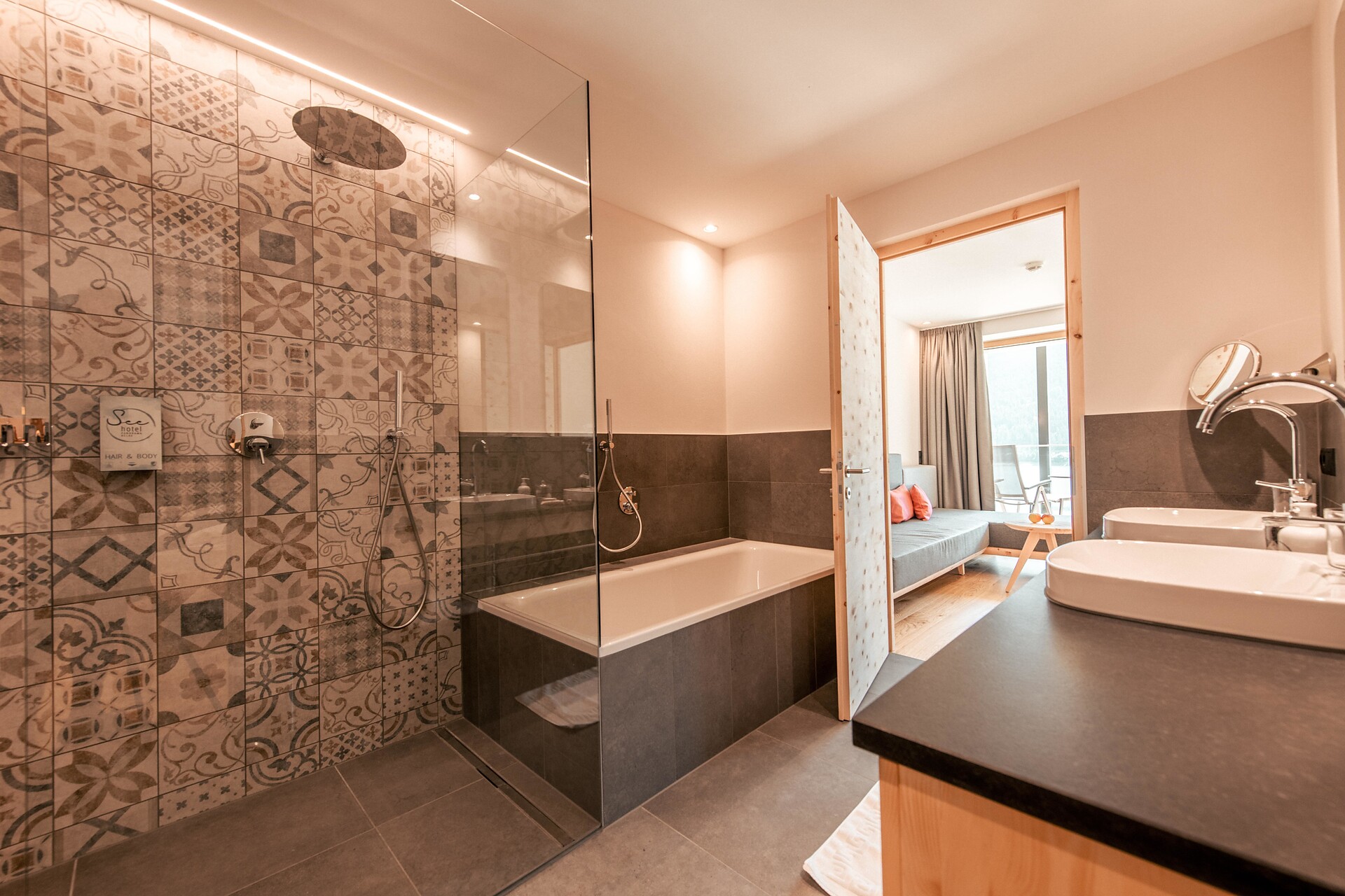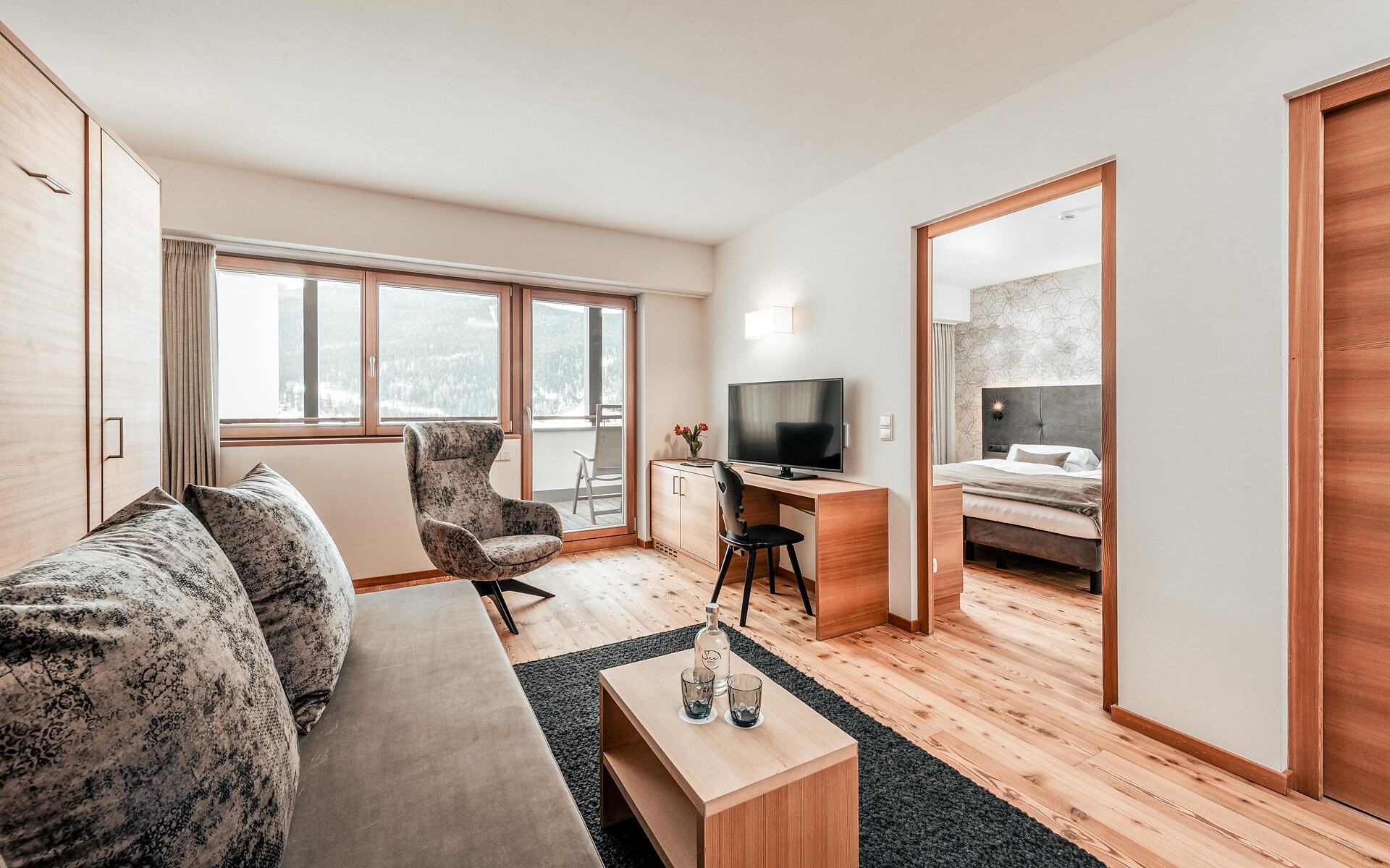 Suite, Doppelbett, Zustellbett, Babybett, Bettsofa, Balkon, Zimmer mit Verbindungstür, Barrierefrei, Minibar, Safe, Dusche / Bad, Bidet, Haarfön, Bademantel, TV, Satellit/Kabel, WLAN, Internetanschluss, Haupthaus, Seeblick