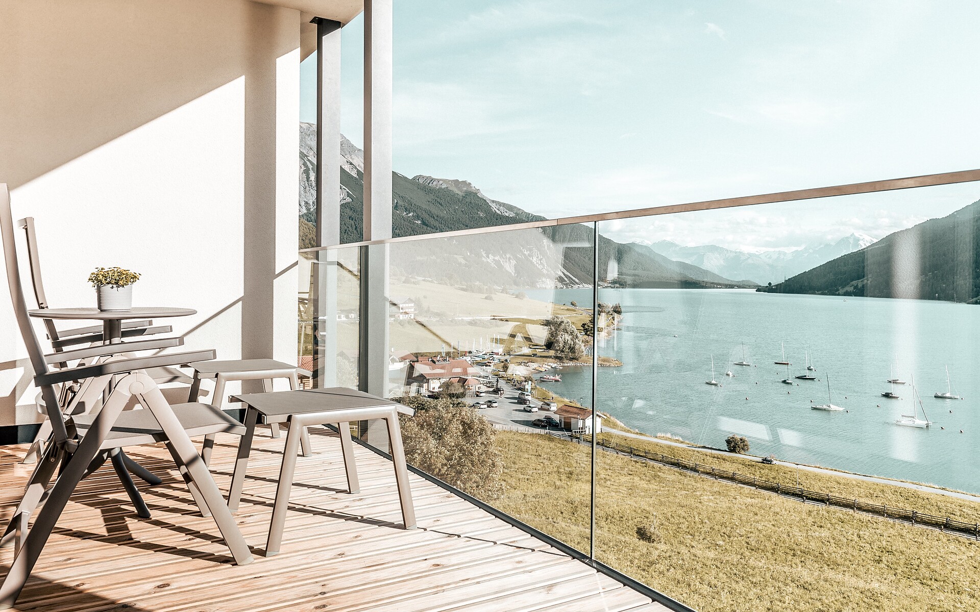 Als Highlight gilt die Südwest-Terrasse mit Blick auf den Reschensee und König Ortler.