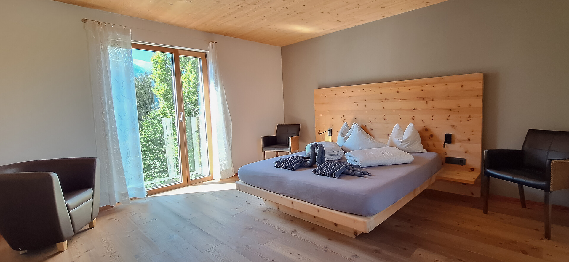 Doppelzimmer, Doppelbett, Balkon, Allergikerzimmer, Dusche / Bad, Haarfön, TV, Satellit/Kabel, WLAN, Haupthaus, Panoramablick, Südseite