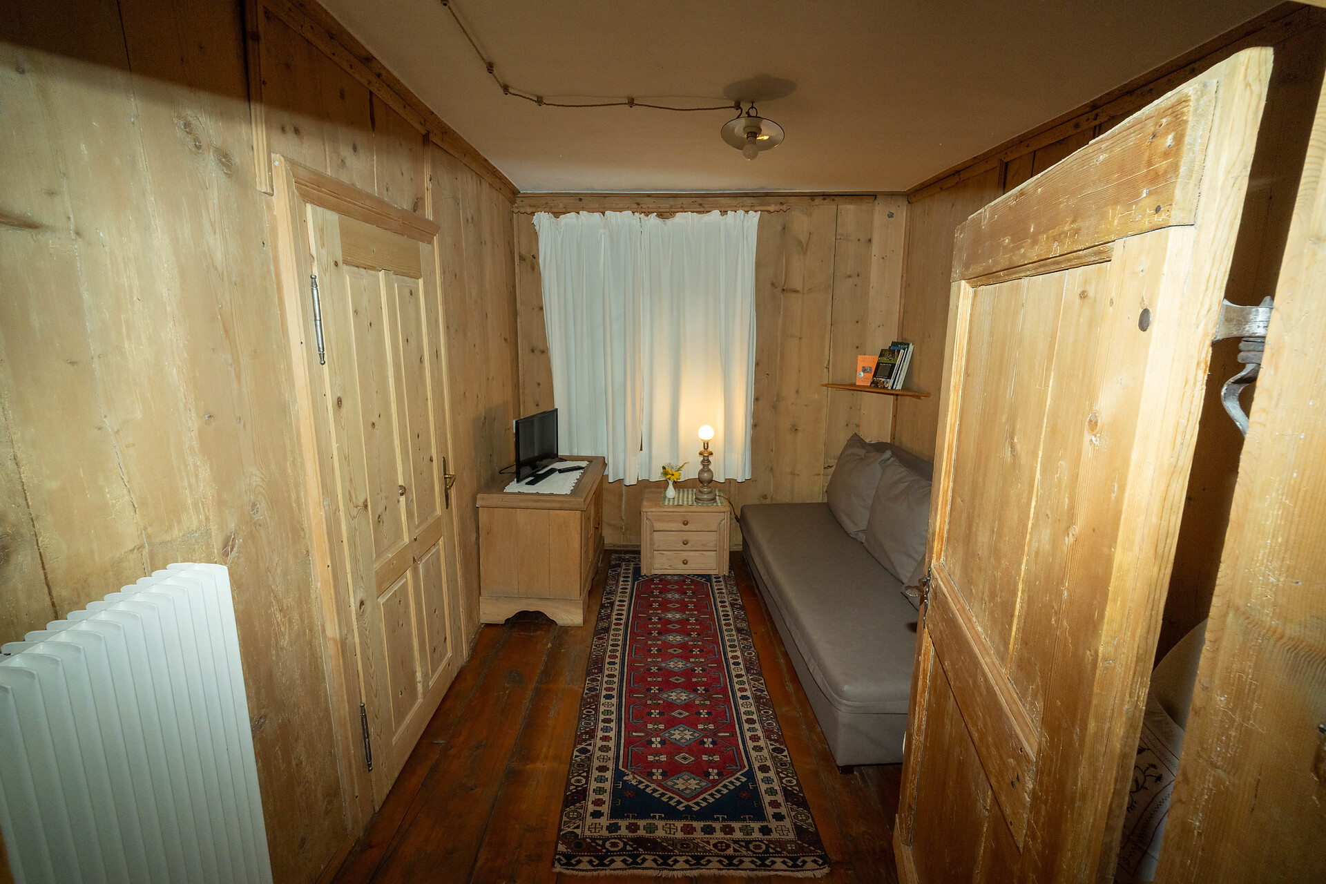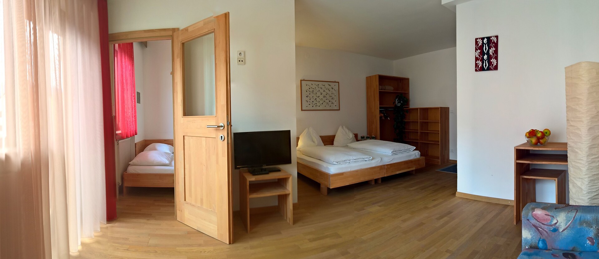 Die Mehrbettzimmer ohne Balkon haben einen herrlichen Ausblick auf den Vinschger Sonnenberg und das Schlandrauntal