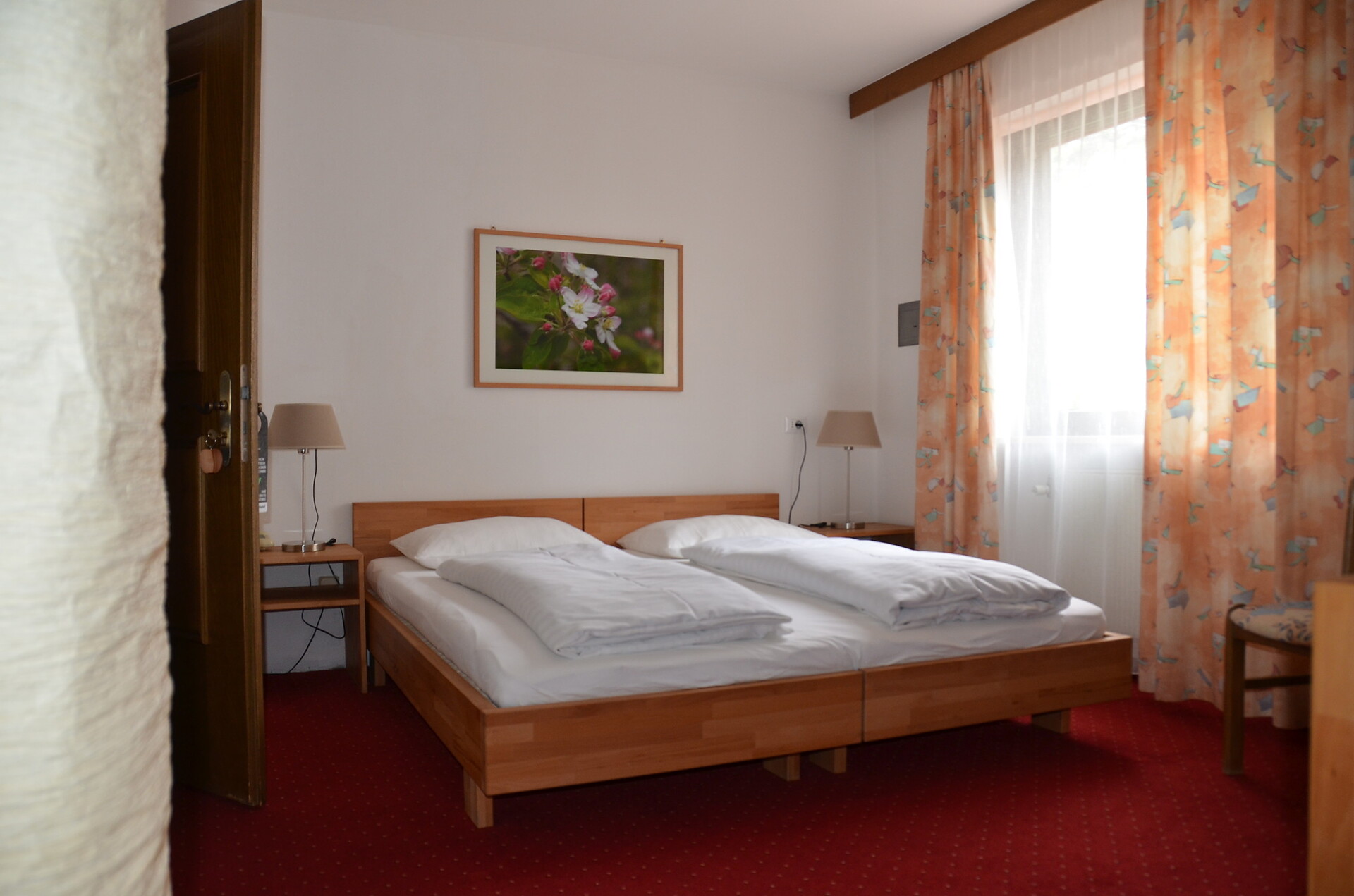 die Doppelzimmer ohne Balkon zeigen in Richtung Schlanderser Sonnenberg