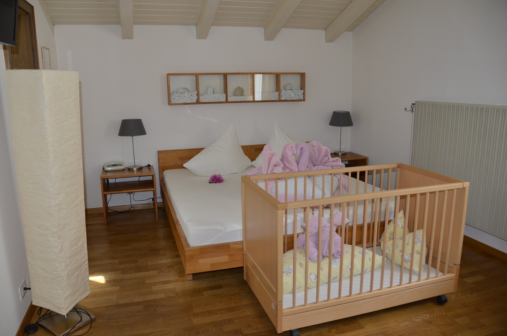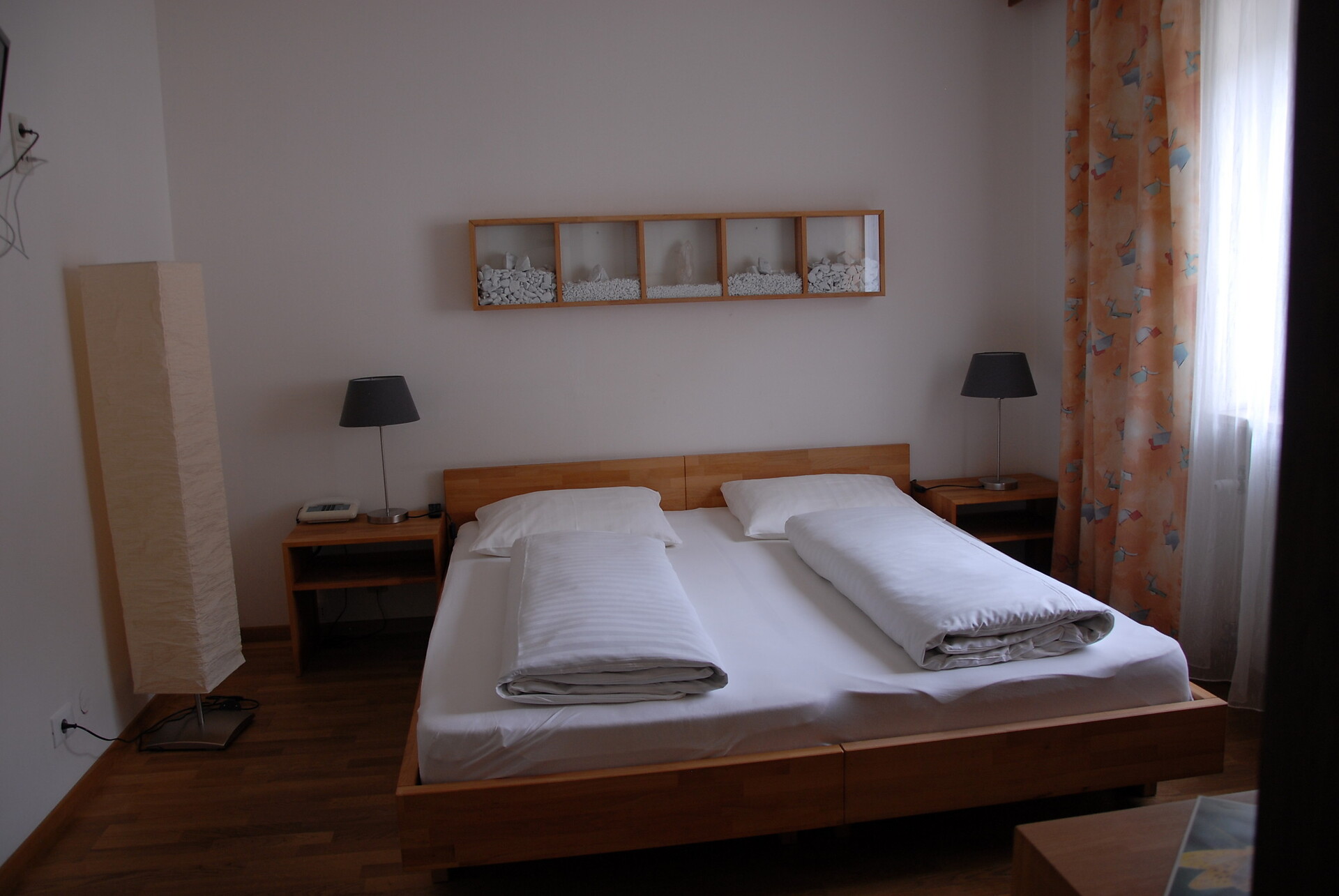 Doppelzimmer, Doppelbett, Zustellbett, Balkon, Safe, Dusche / Bad, Haarfön, TV, WLAN, Haupthaus, Südseite