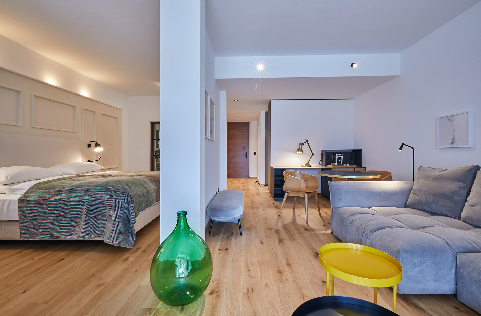 Ein Urlaubszuhause für gesellige Stunden mit ausreichend Privatsphäre? Genau das bietet Ihnen unser Maletum Studio. Die Suite punktet mit einem Schlafzimmer samt großer Wohnecke sowie mit einem zusätzlichen Schlafzimmer. Klassisch und modern gehalten, sind die funktional ausgestatteten Zimmer gemütlich, frisch und charmant. Die helle Möblierung verleiht den Räumlichkeiten mit hochwertigem Interieur aus Naturmaterialien einen freundlichen Charakter. Genießen Sie gemeinsam den Blick auf das Dorfpanorama von Mals, schmieden Sie Pläne für den Urlaubstag oder entspannen Sie nach erlebnisreichen Momenten in der Natur. (ca. 55 m² & Balkon 20 m²)