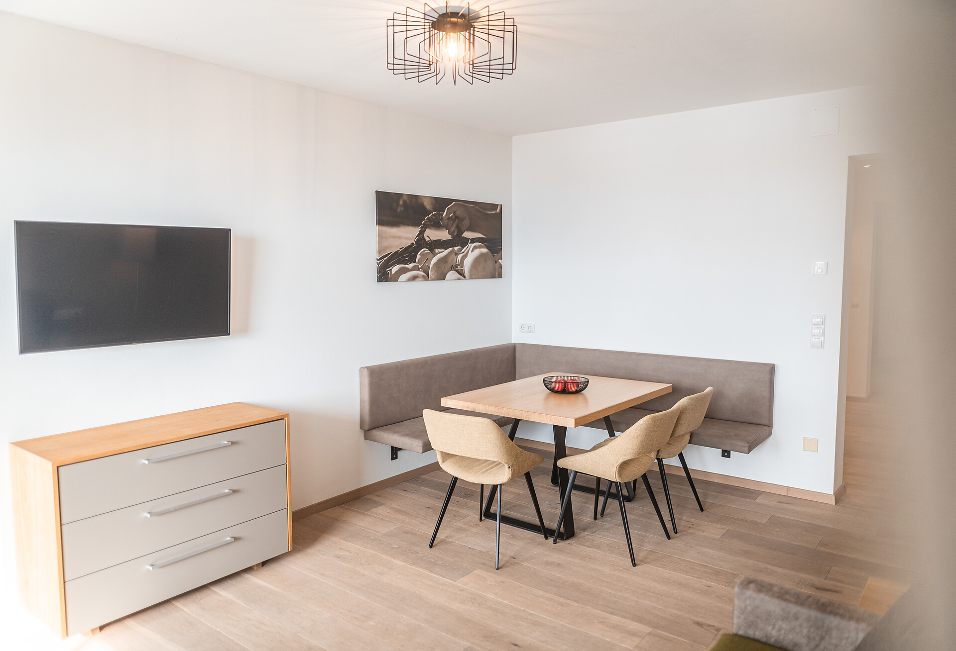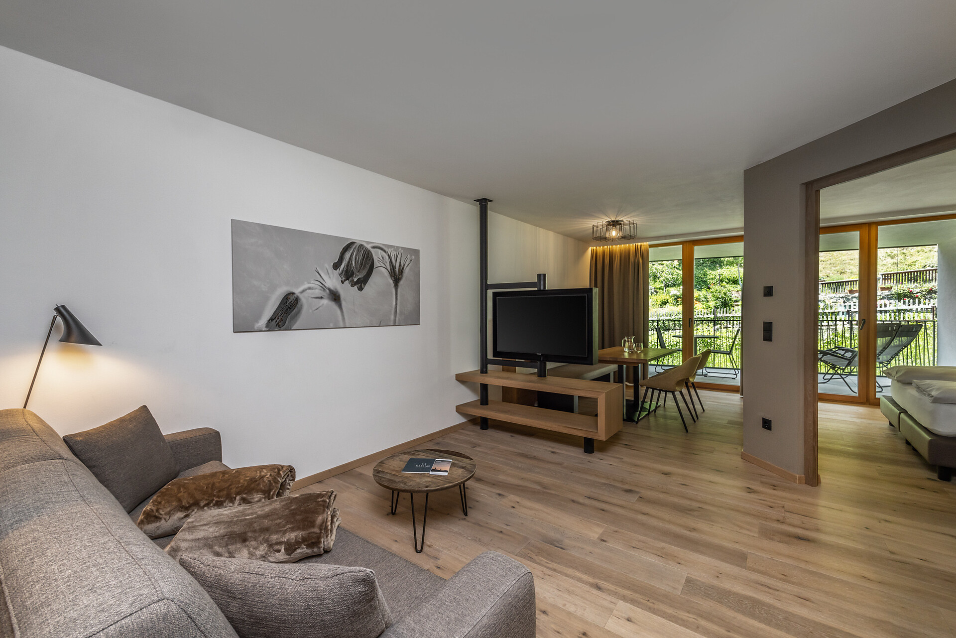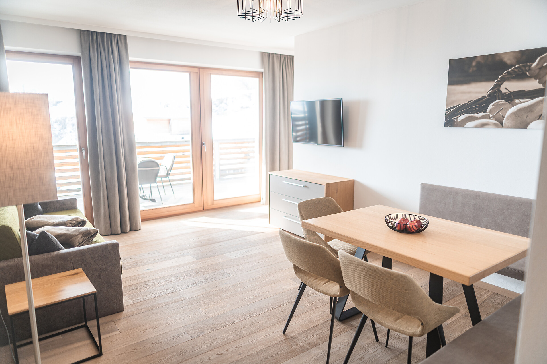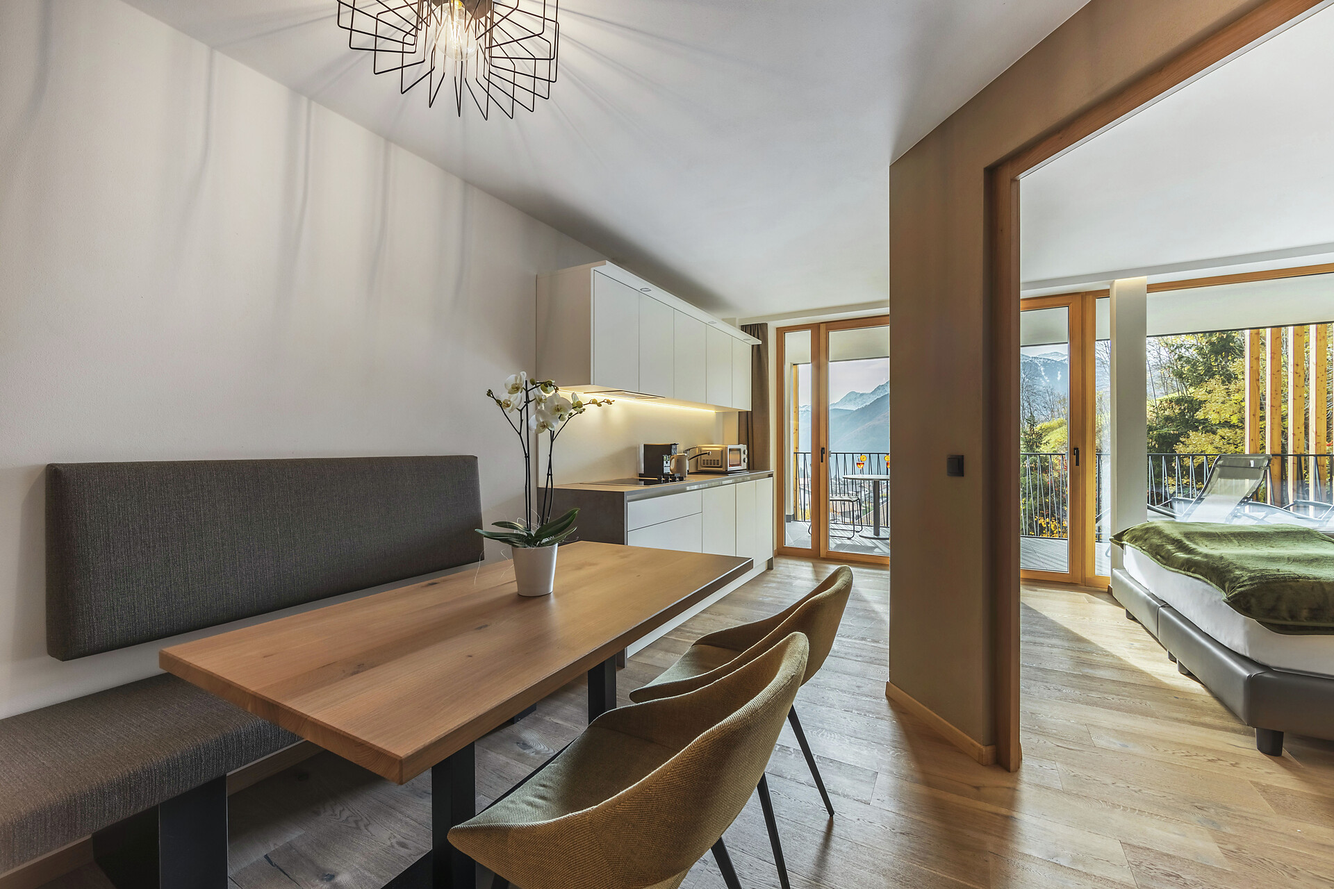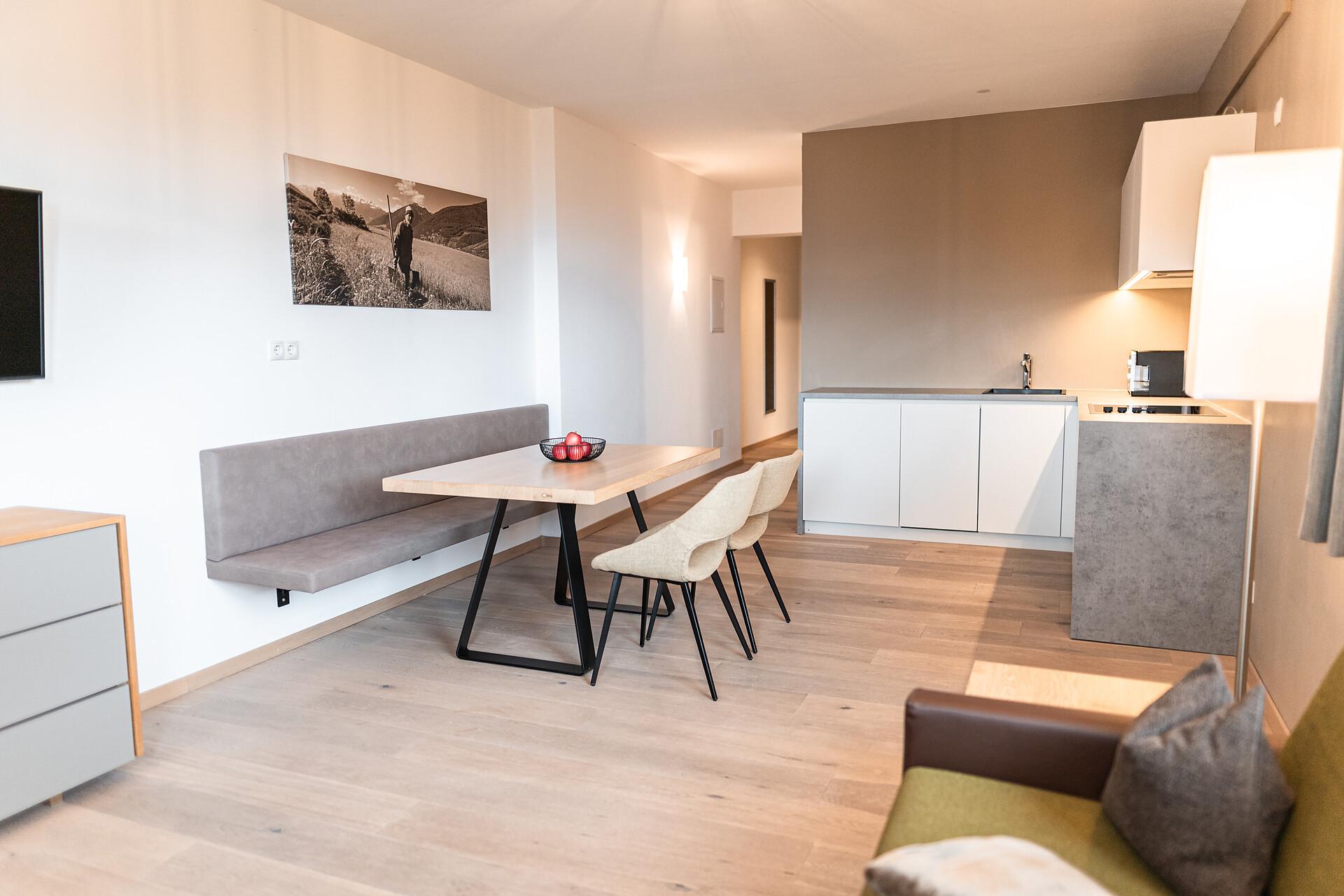 Wohnkomfort, Freiheit, Ausblick auf den Ortler von der Panoramaterrasse – alles, was das Herz begehrt finden Sie im Farm Apartment 1 in der Dependance, direkt neben unserem Bauernhof. Nur 50 m entfernt vom Haupthaus verfügt diese Wohnung über einen Wohn- und Essbereich mit Küchenzeile, ein Schlafzimmer und einem Zusatzimmer mit Doppelbett.