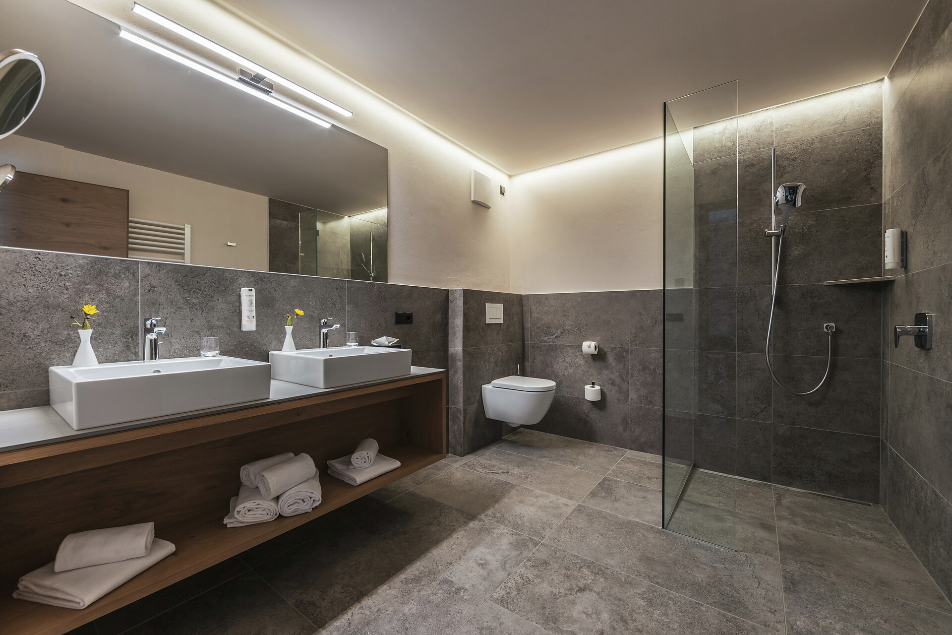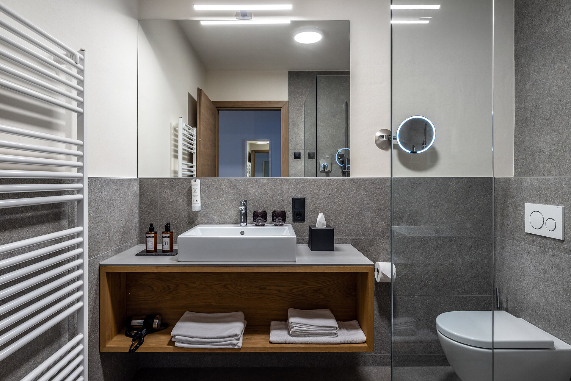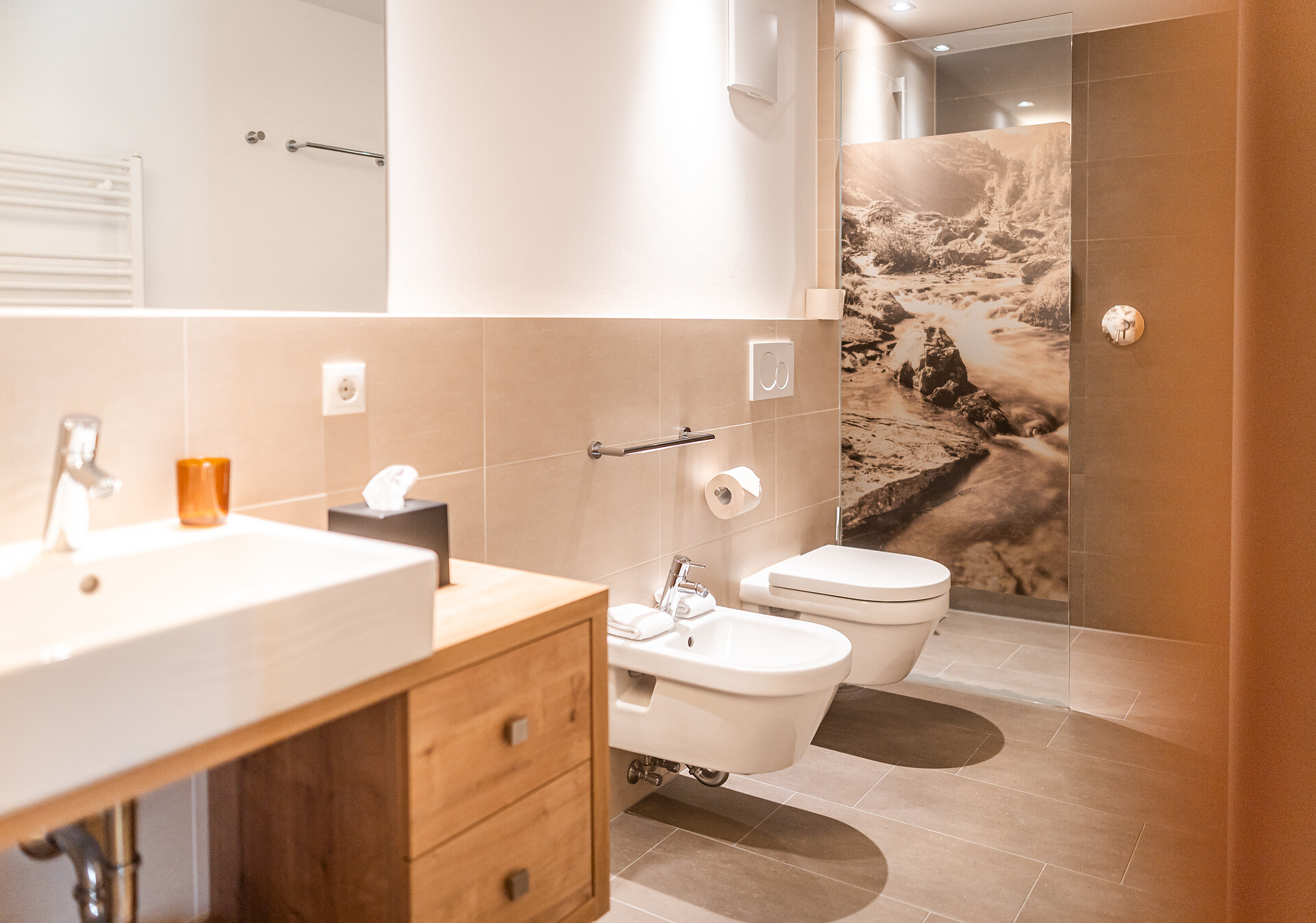 2 Bäder mit Dusche, Badewanne, Bidet, Föhn und getrenntem WC