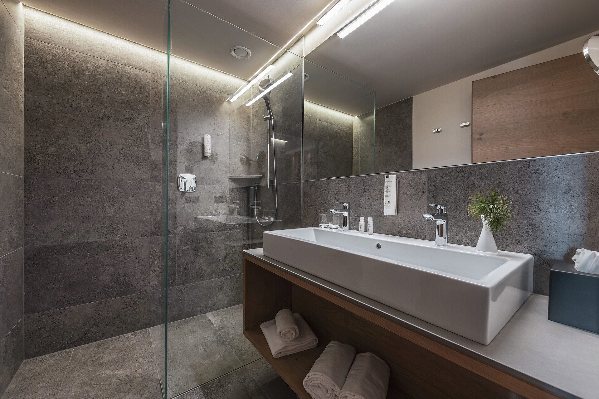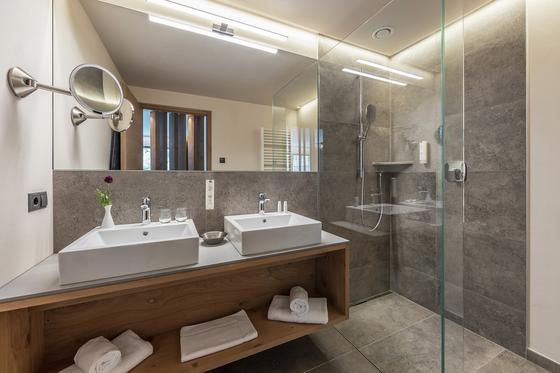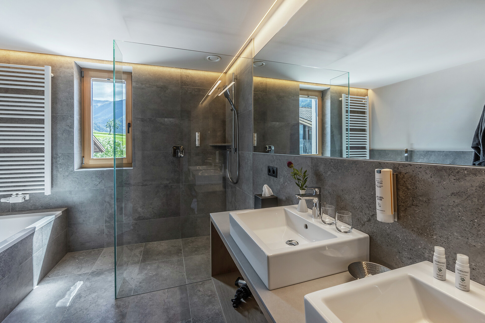 2 Bäder mit Dusche, Badewanne, Bidet, Föhn und getrenntem WC