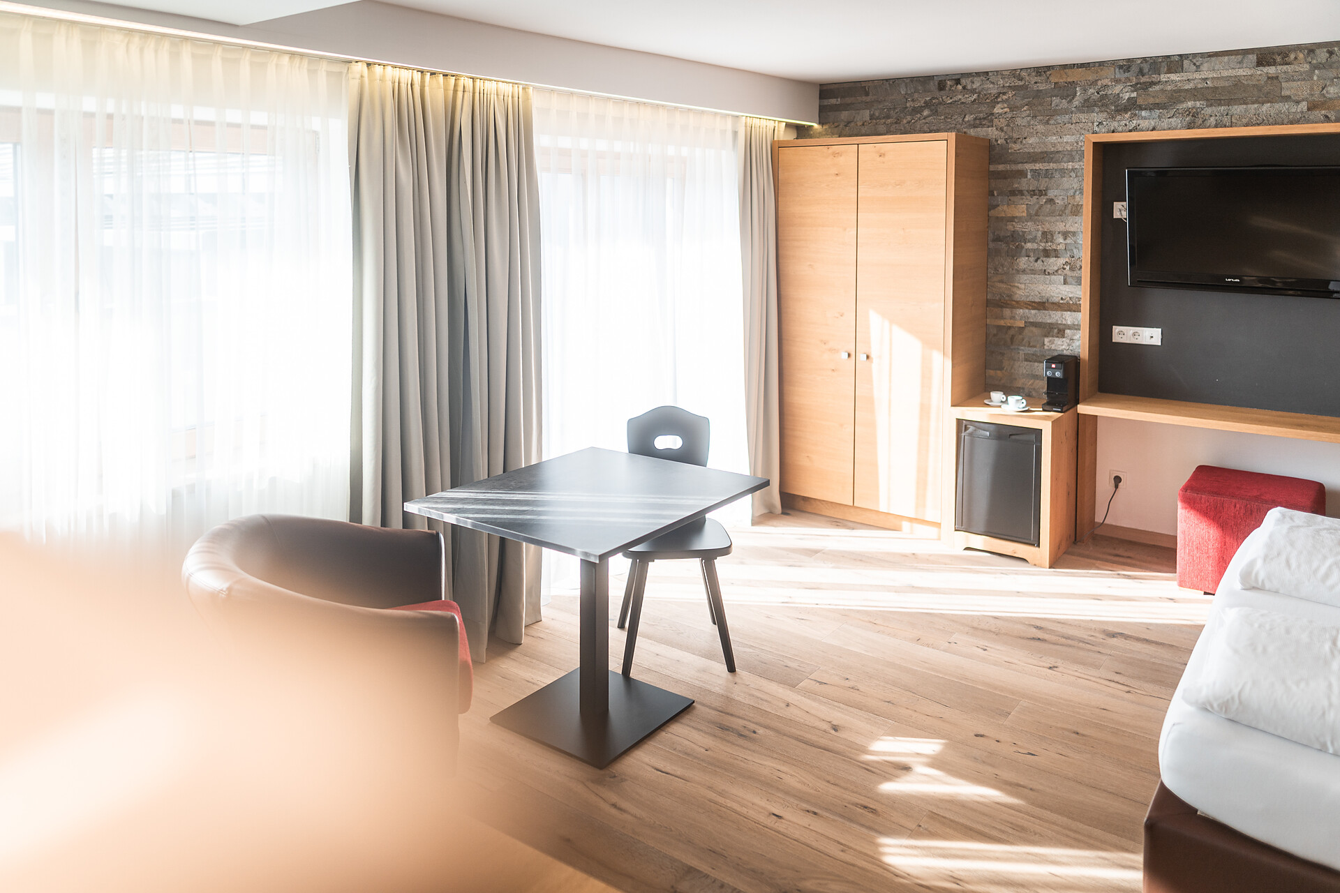 Doppelbett, Bettsofa, Allergikerzimmer, Bettwäsche vorhanden, Safe, Wohnküche, Kaffeemaschine, Geschirrspülmaschine, Mikrowelle, Geschirrausstattung, Dusche/Bad, Separates WC, Bidet, Haarfön, Bademantel, TV, WLAN