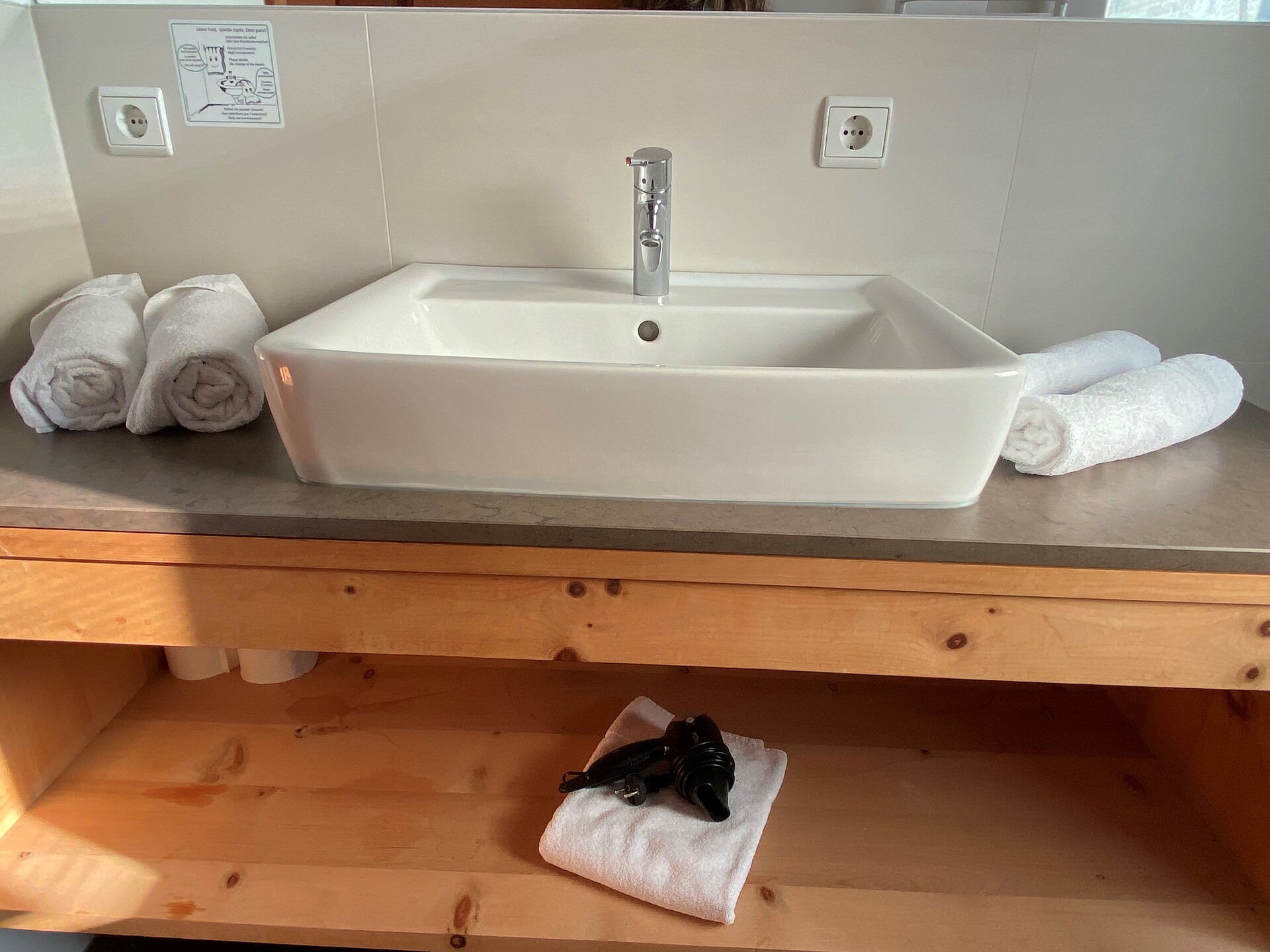 Durch das wohlduftende Zirbenholz ruhst Du hier besonders sanft. Falls Du mit Deiner Familie kommst, freust Du Dich über ein separates Zimmer für Deine 1-2 Kinder (Zustellbett) und einen kleinen Vorraum vor dem modernen Badezimmer.