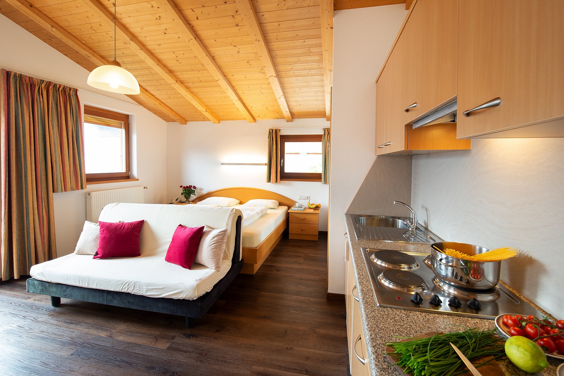 Die Wohnungen bestehen aus einem Wohn-Schlafraum. Zusätzliche Zimmer können auch autonom dazu gemietet