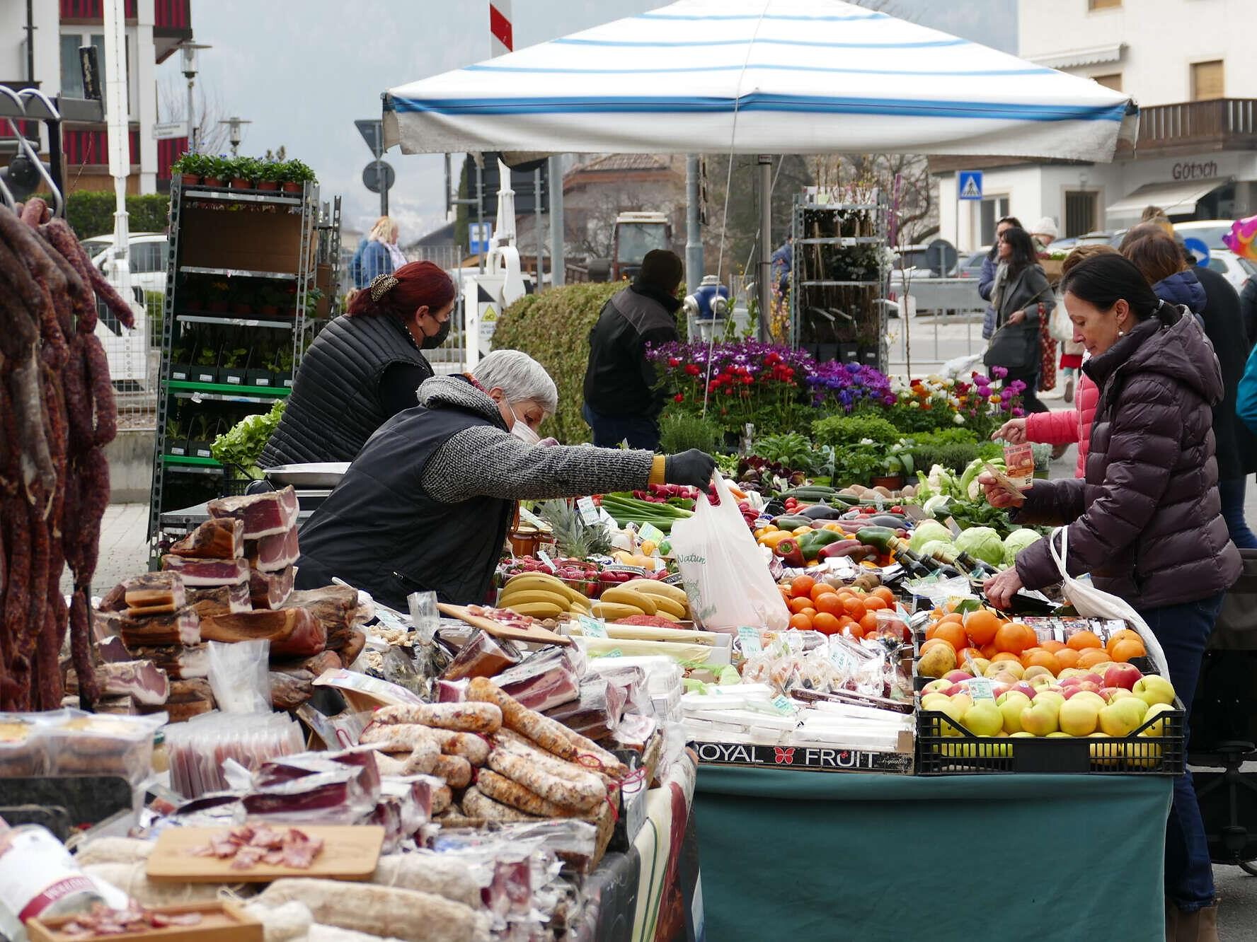 Traditioneller Landsprachmarkt im Zentrum von Goldrain.