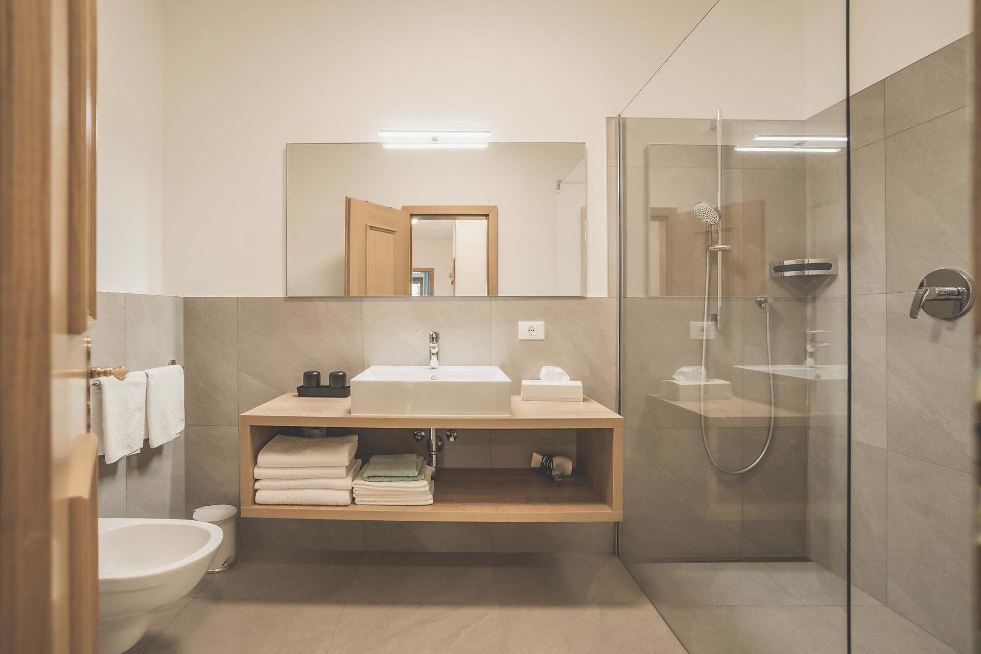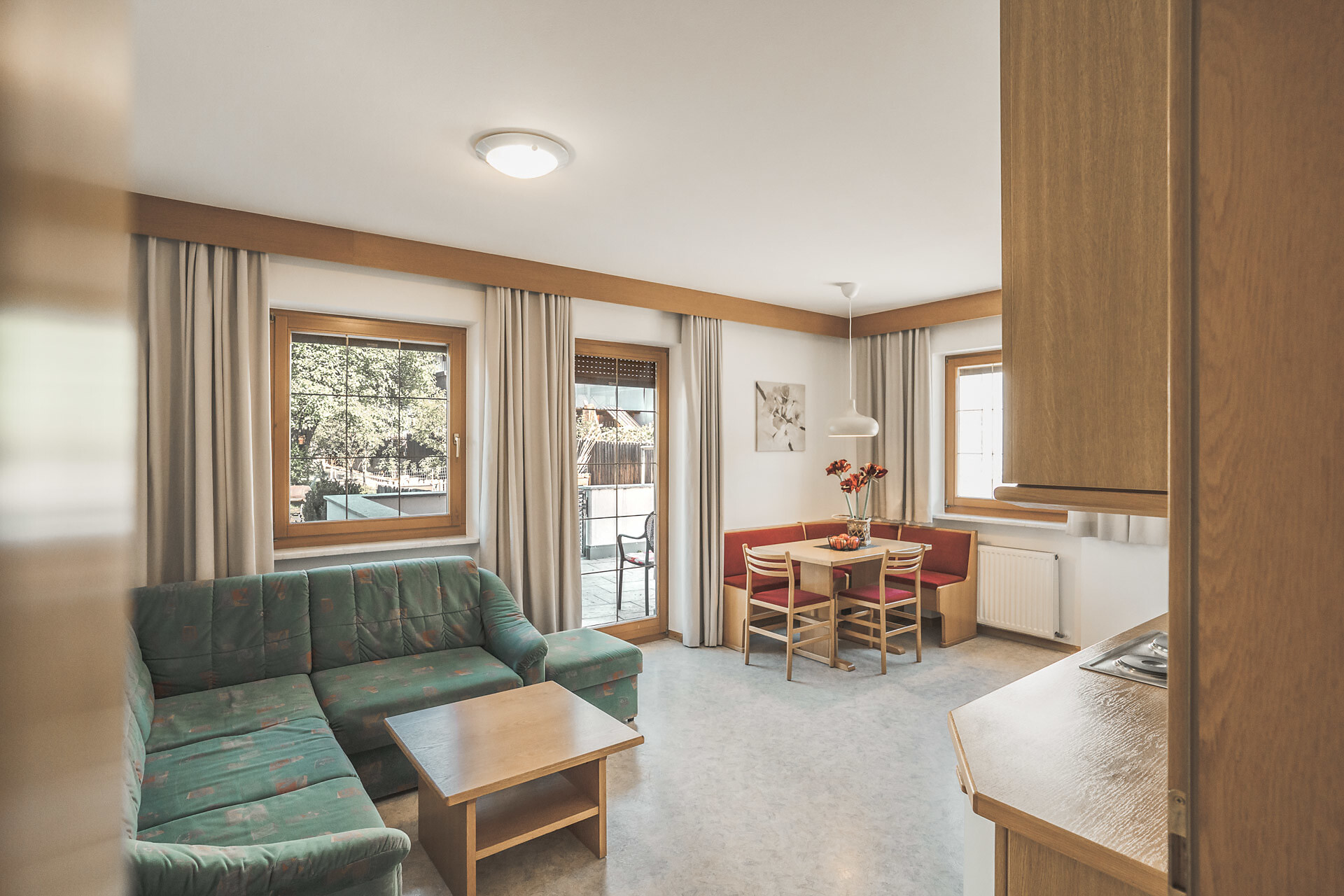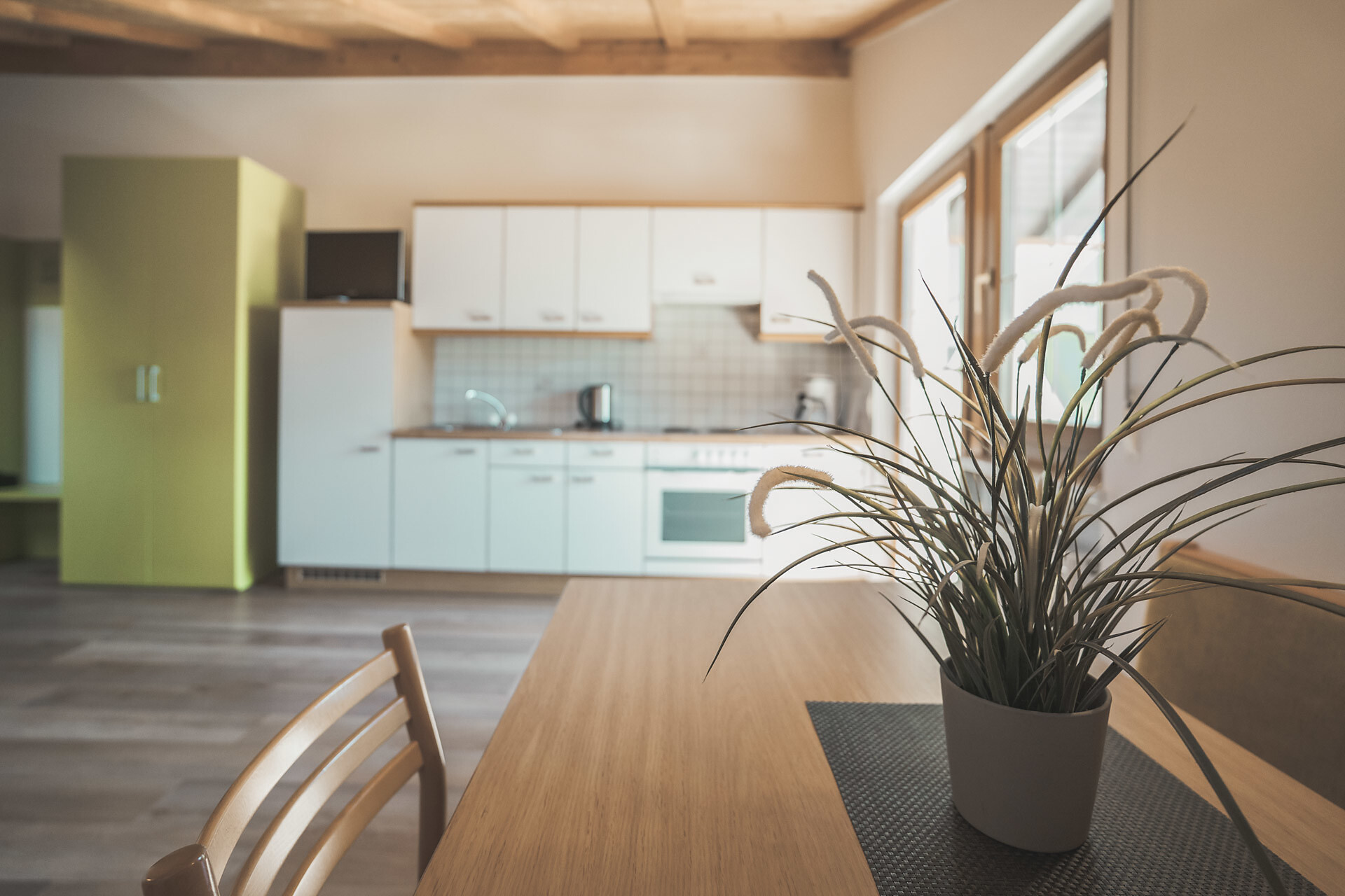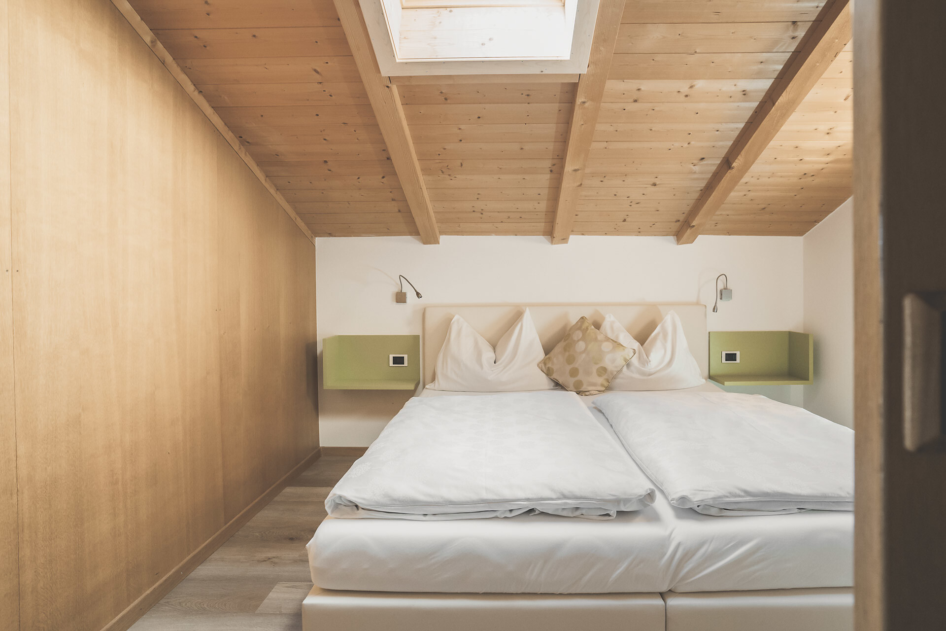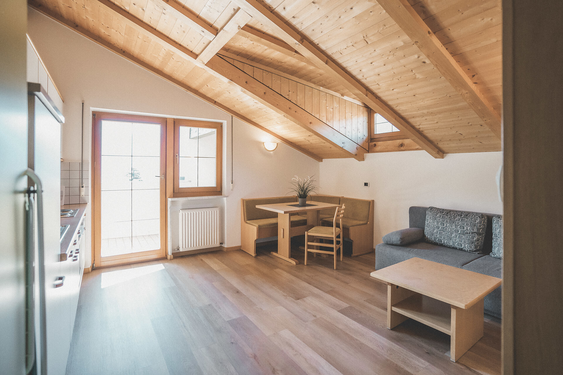 45m² for max. 4 people ,1 double room, living room with pull-out double sofa, dining table, satellite TV, kitchen with four ceramic stove tops, oven, coffee machine, fridge with freezer compartment, bathroom with shower, WC, bidet, hairdryer, balcony or terrace with terrace table, chairs and loungers on the first and second floor, reserved car park. Free WLAN access