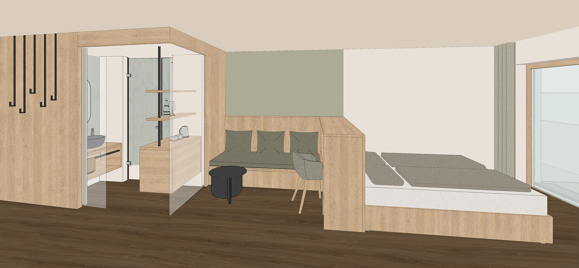 Alpine elegance combines with contemporary design: accents of spruce wood create an inviting atmosphere.