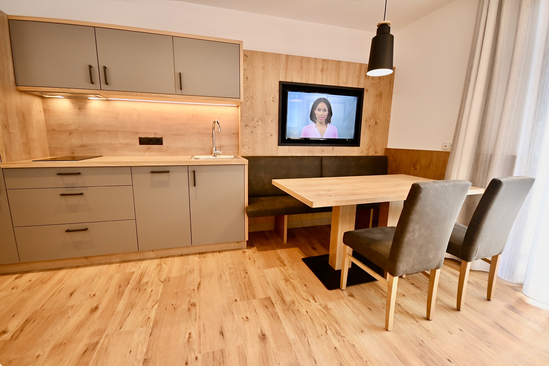 Double bed , Double sofa bed, Balcony, Bed linen provided, Safe, Non-smoking apartment, Eat-in kitchen, Coffee machine, Dishwasher, Electric cooker, Microwave, Cutlery provided, Hob, Shower/Bath tub, Hair dryer, Towels, TV, Satellite/Cable, WLAN, Internet access, Main building, Panoramic view, South view