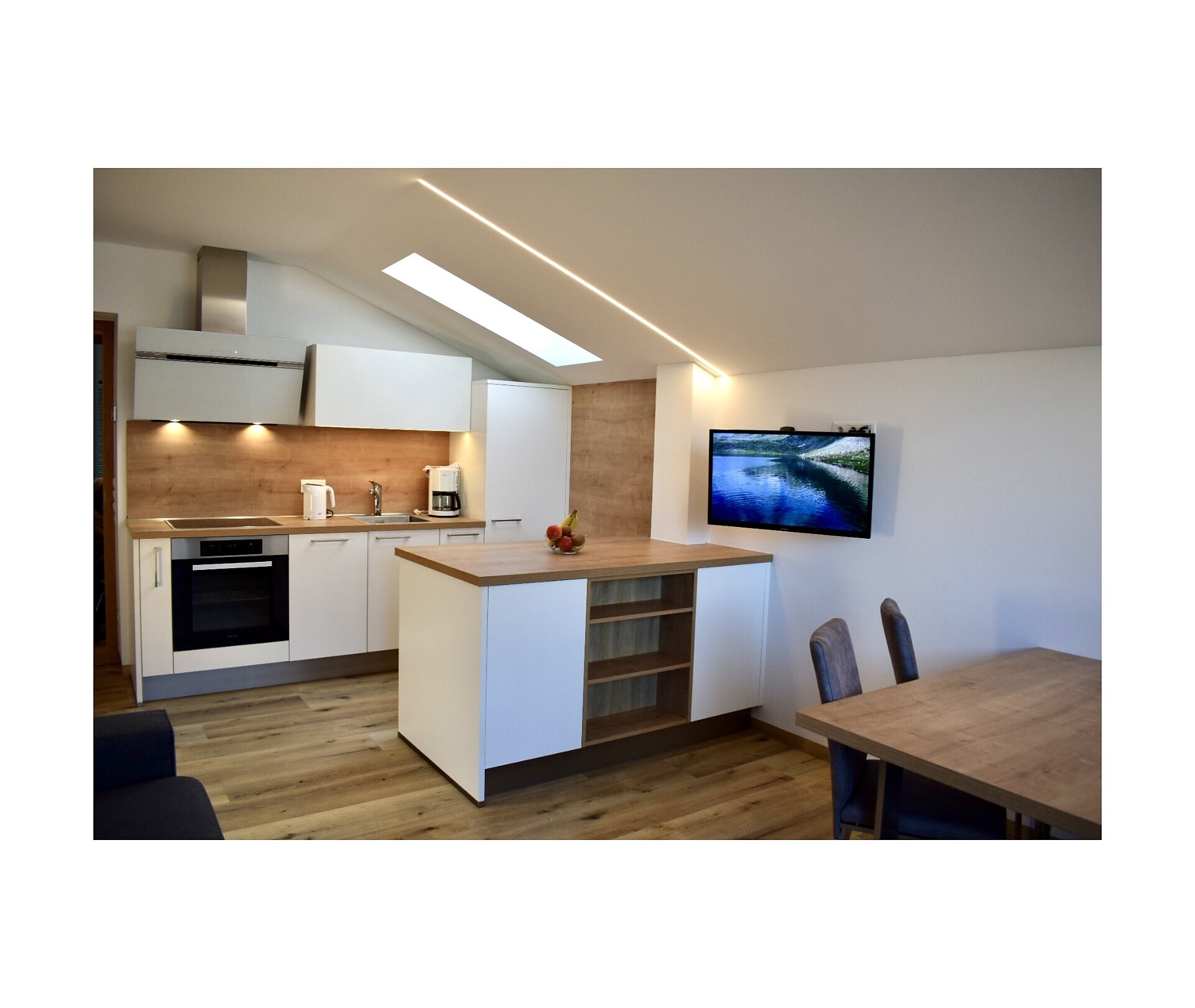 Double bed , Cot, Sofa bed, Balcony, Bed linen provided, Safe, Eat-in kitchen, Coffee machine, Dishwasher, Electric cooker, Cutlery provided, Shower/Bath tub, Hair dryer, Towels, TV, WLAN, Main building, Panoramic view