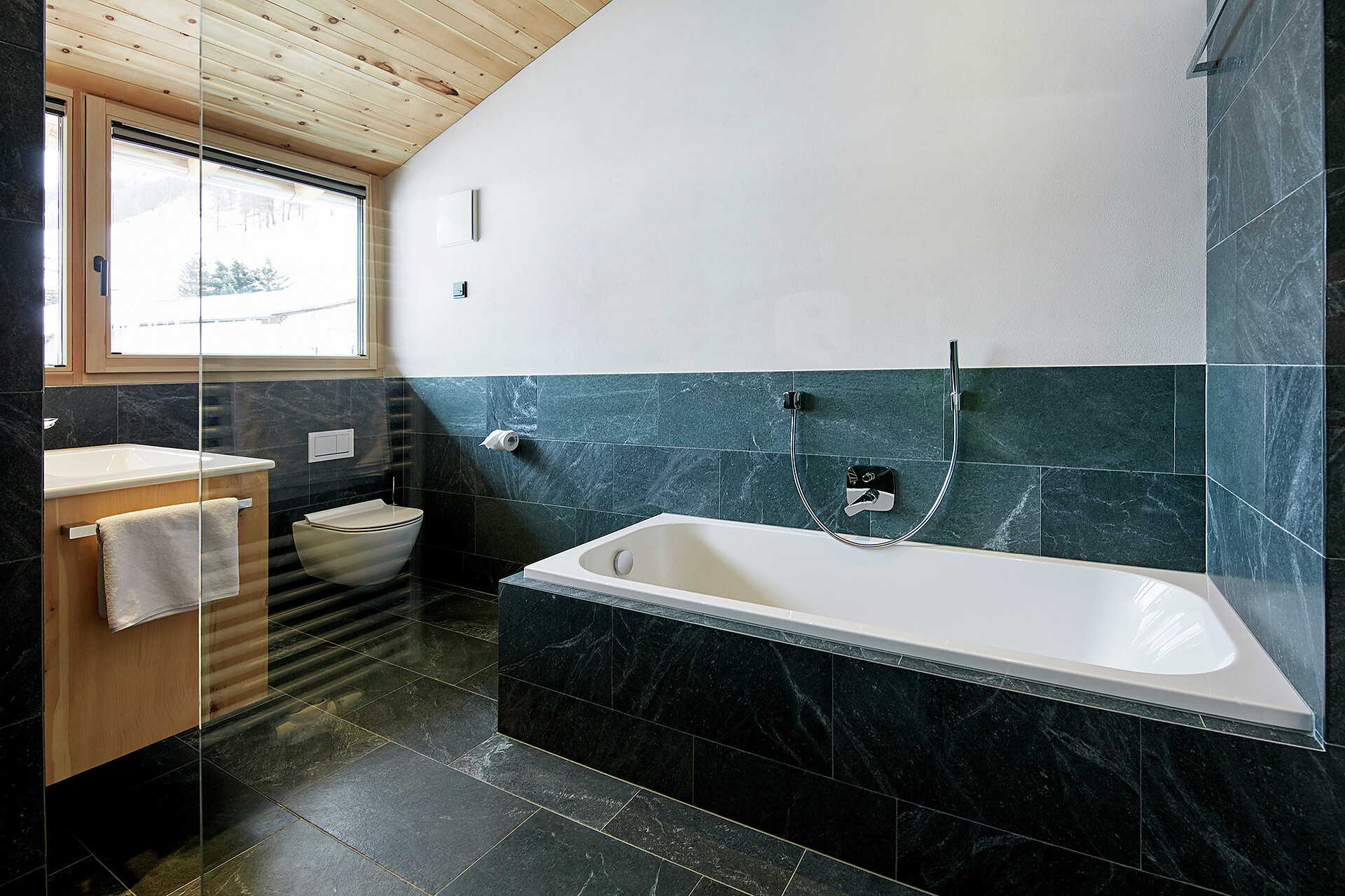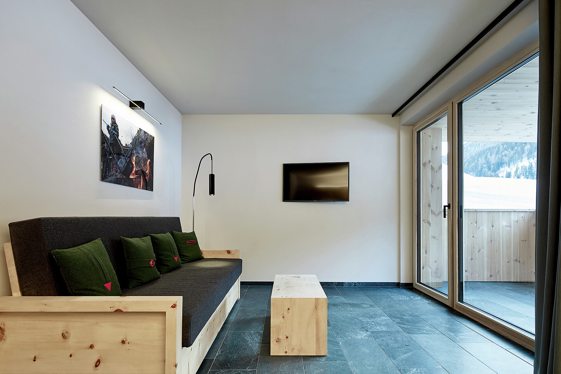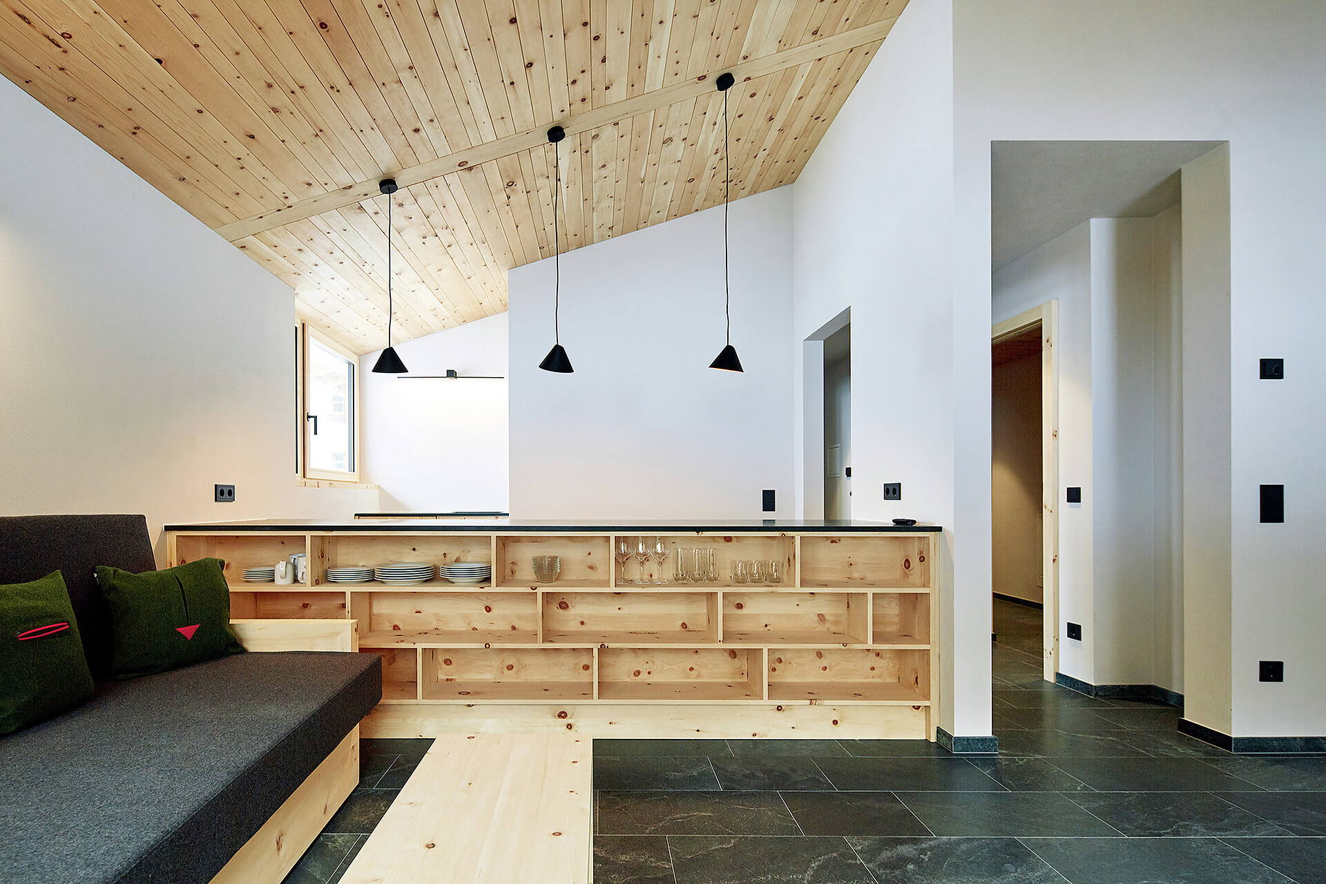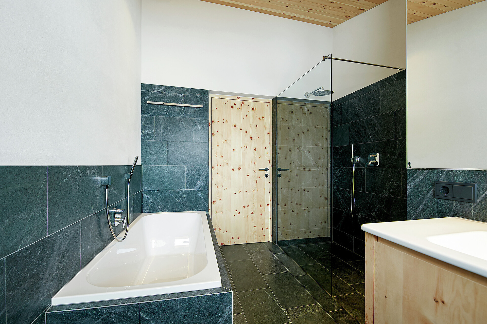 We value high quality and natural materials, and as a wood-worker by trade, Roman has an innate appreciation for wood. Natural stone tiles, wooden floors (self-harvested wood from Schlinig) and naturally lit rooms… all the components to feel at home.