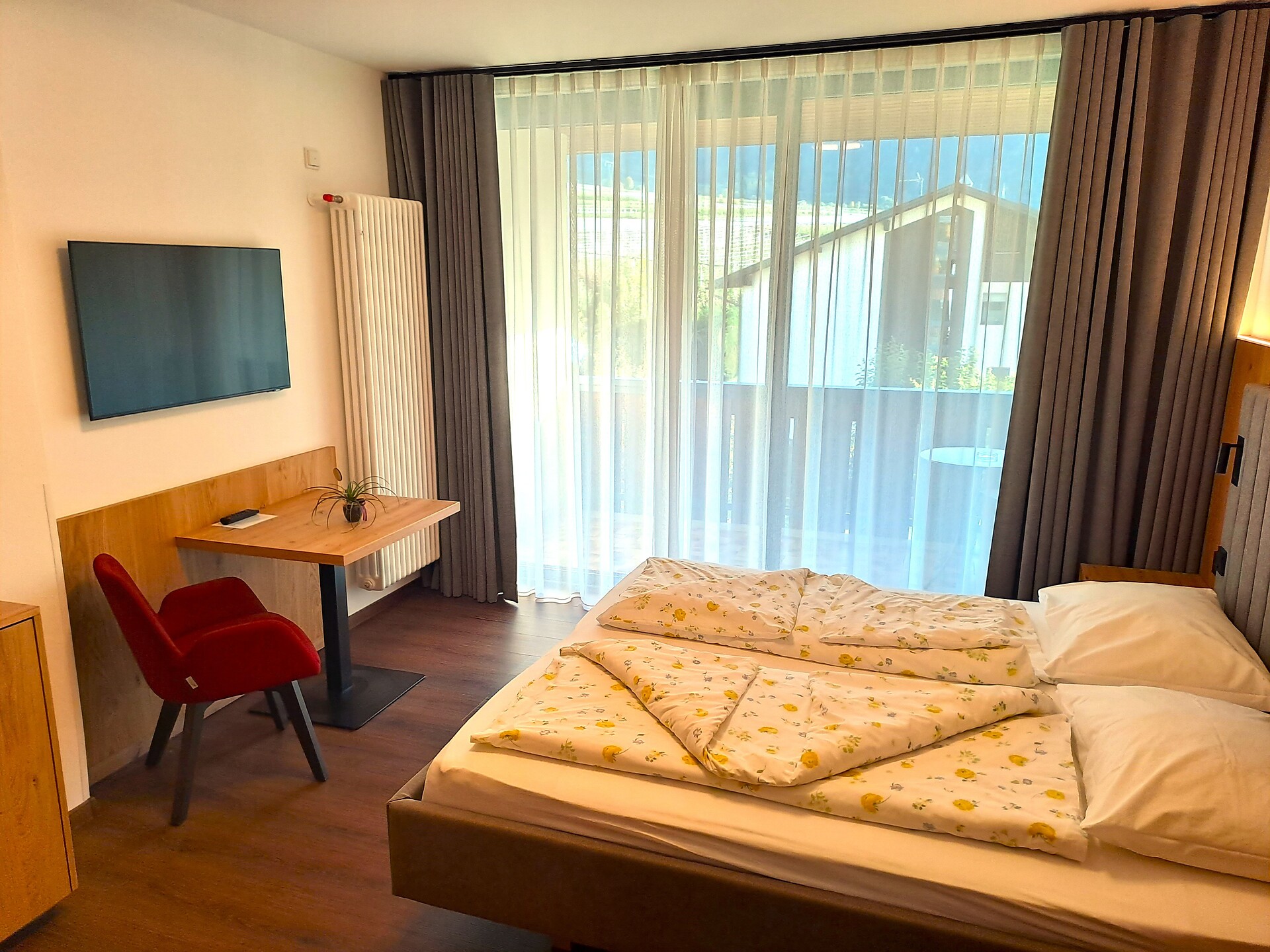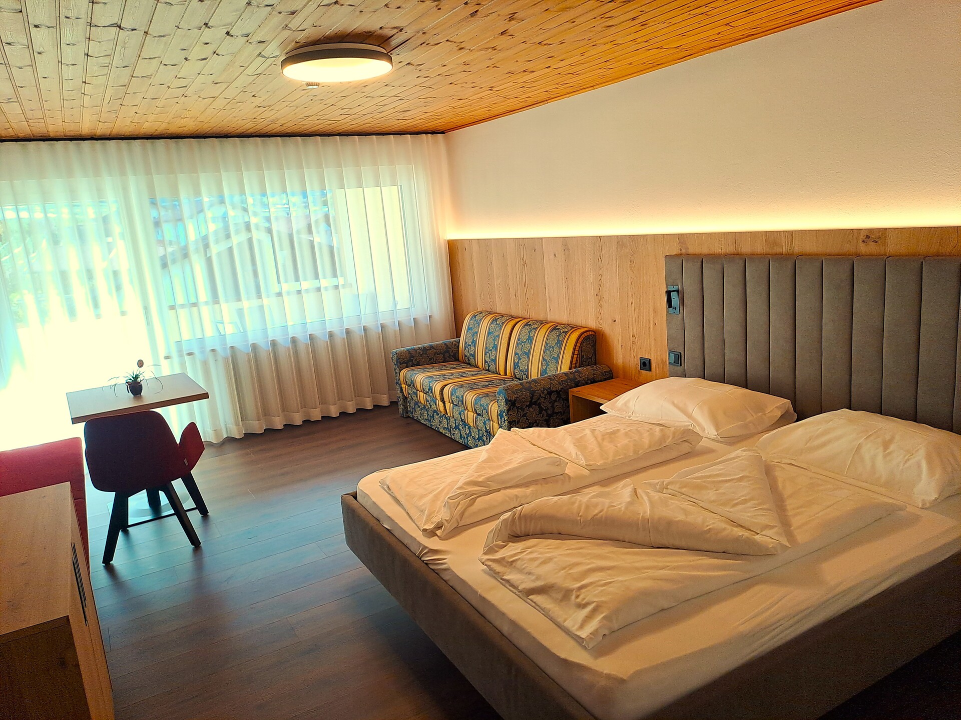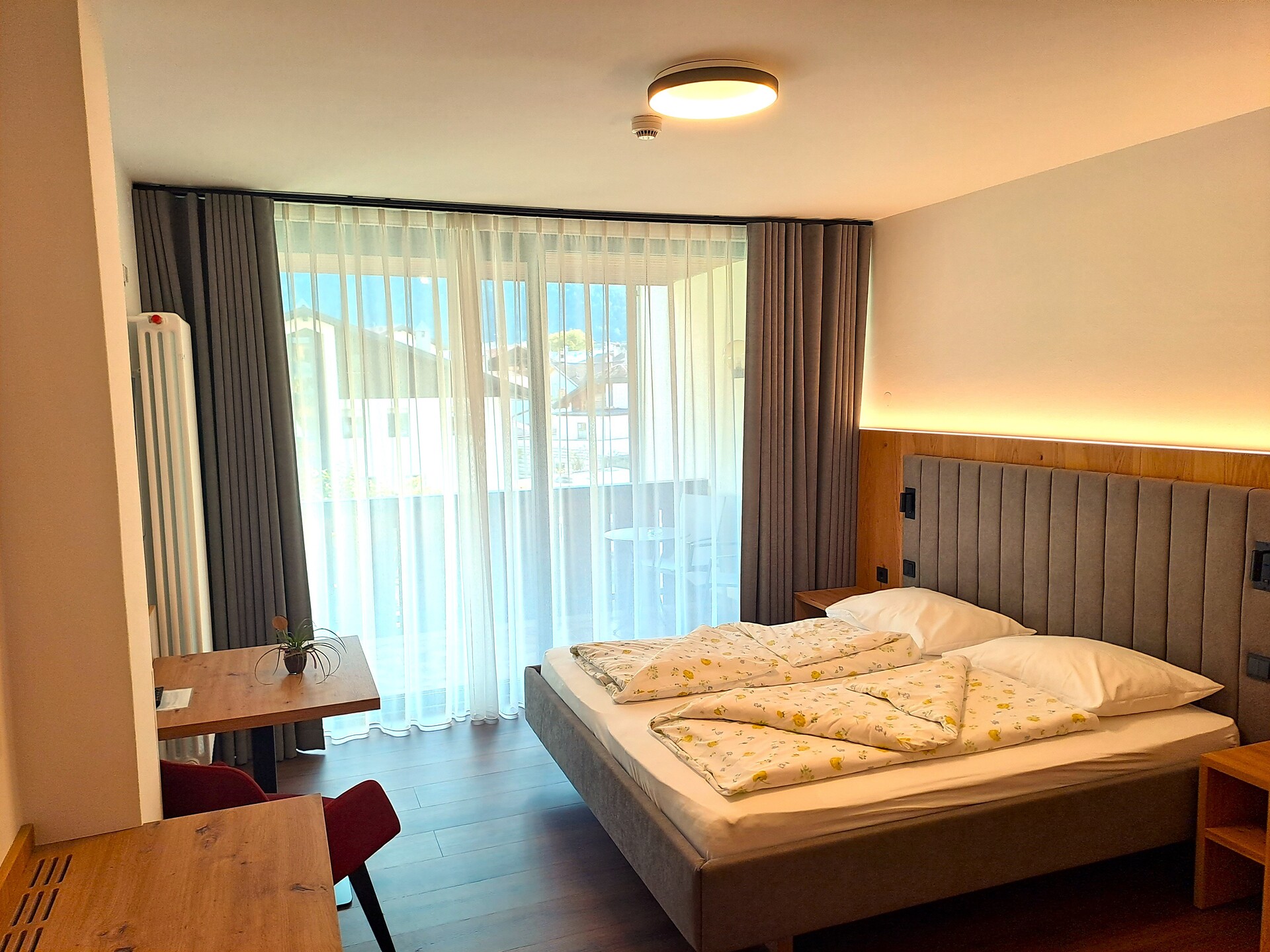 Double bed, sofa bed, balcony, living area, barrier-free, safe, fridge, non-smoking room, shower / bath, toilet, TV, satellite / cable, hairdryer, WiFi, main house, panoramic view, south side