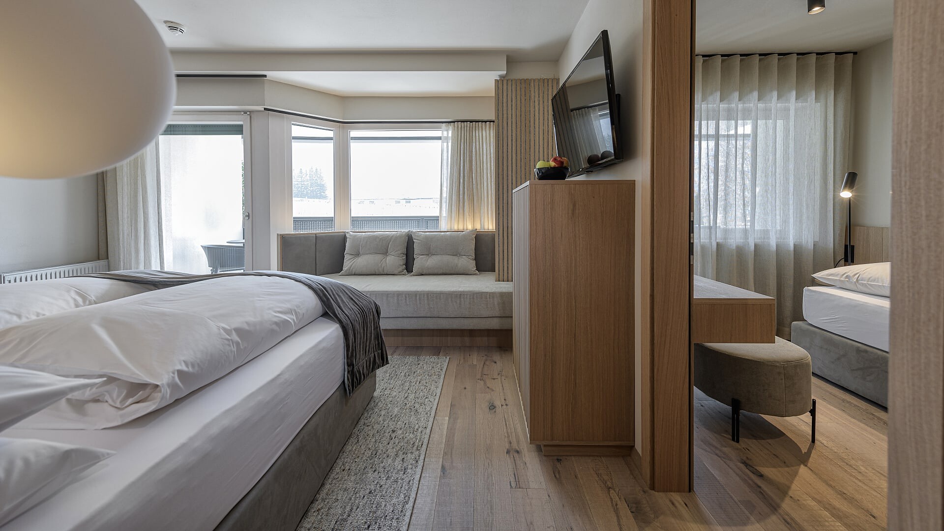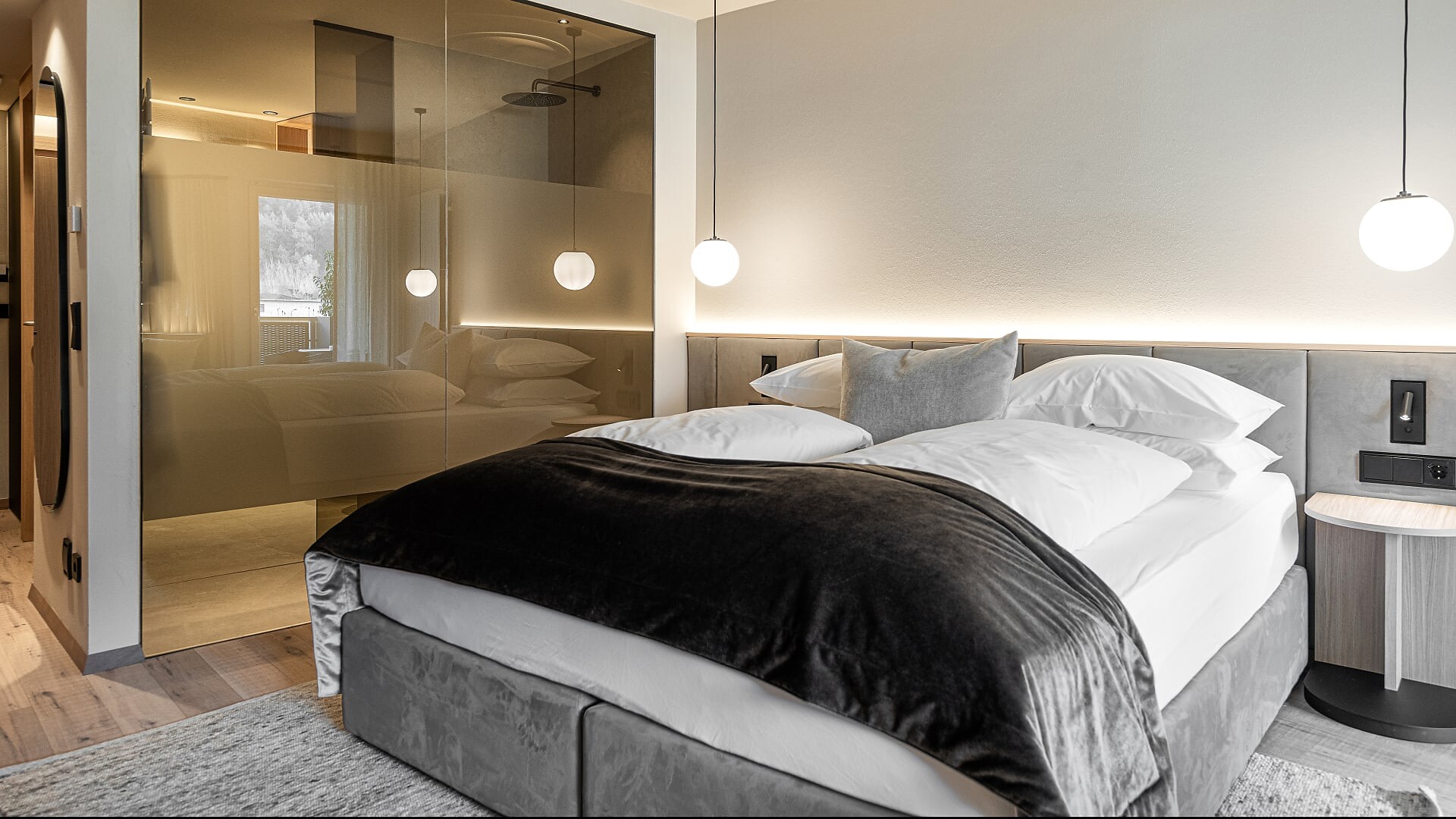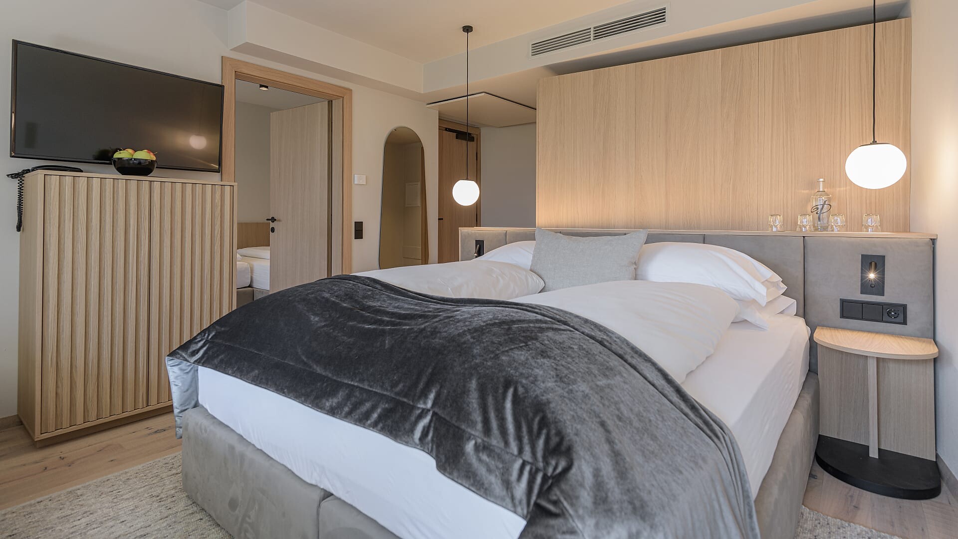Suite with 41 m² (additional 10m² balcony)Noble wooden floorAir conditioningView towards the mountains/villageModern bathroom with separate WC and bidetWellness bag with bathrobe and towels for your entire stayThe room is located on the first floor.