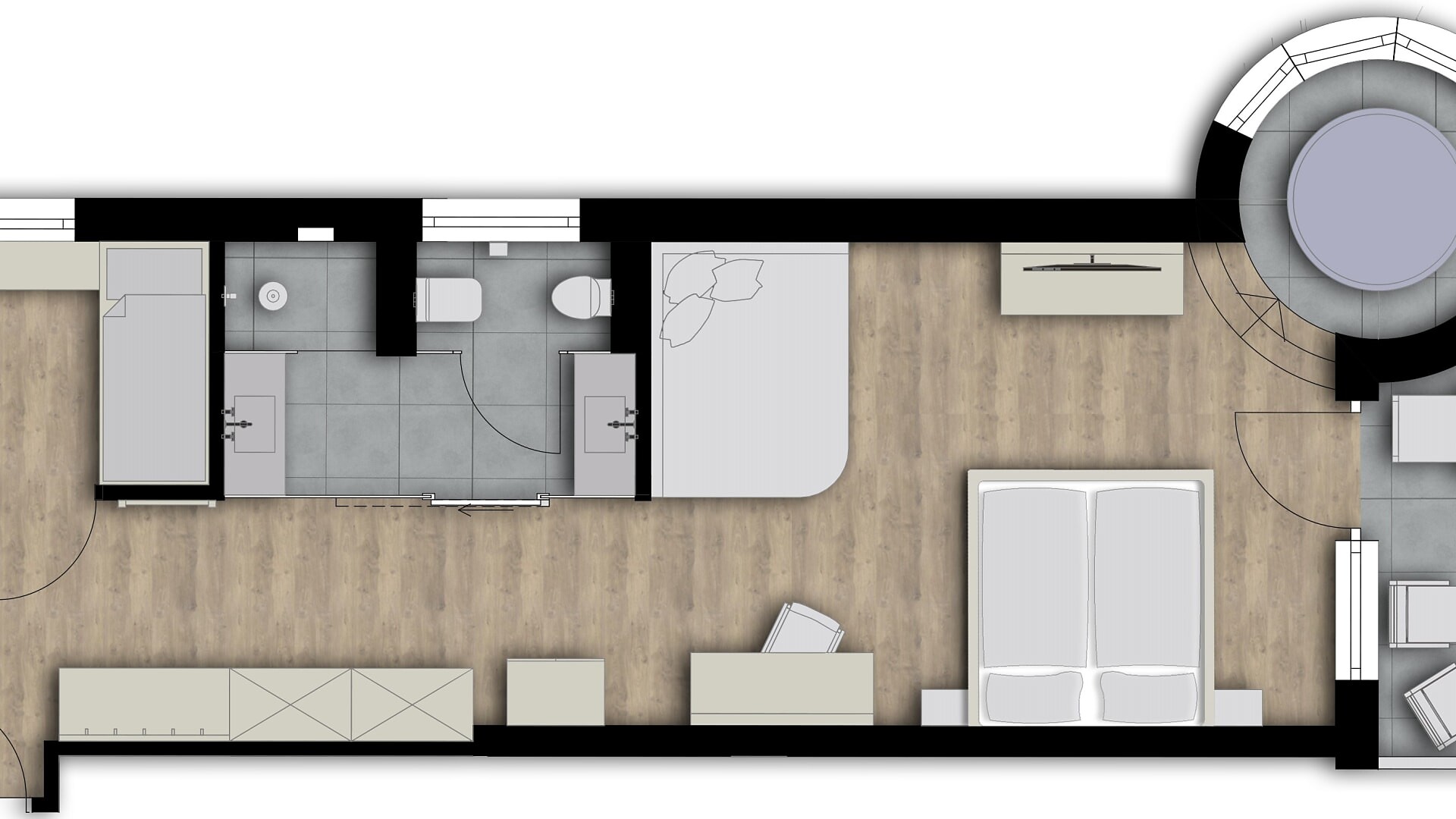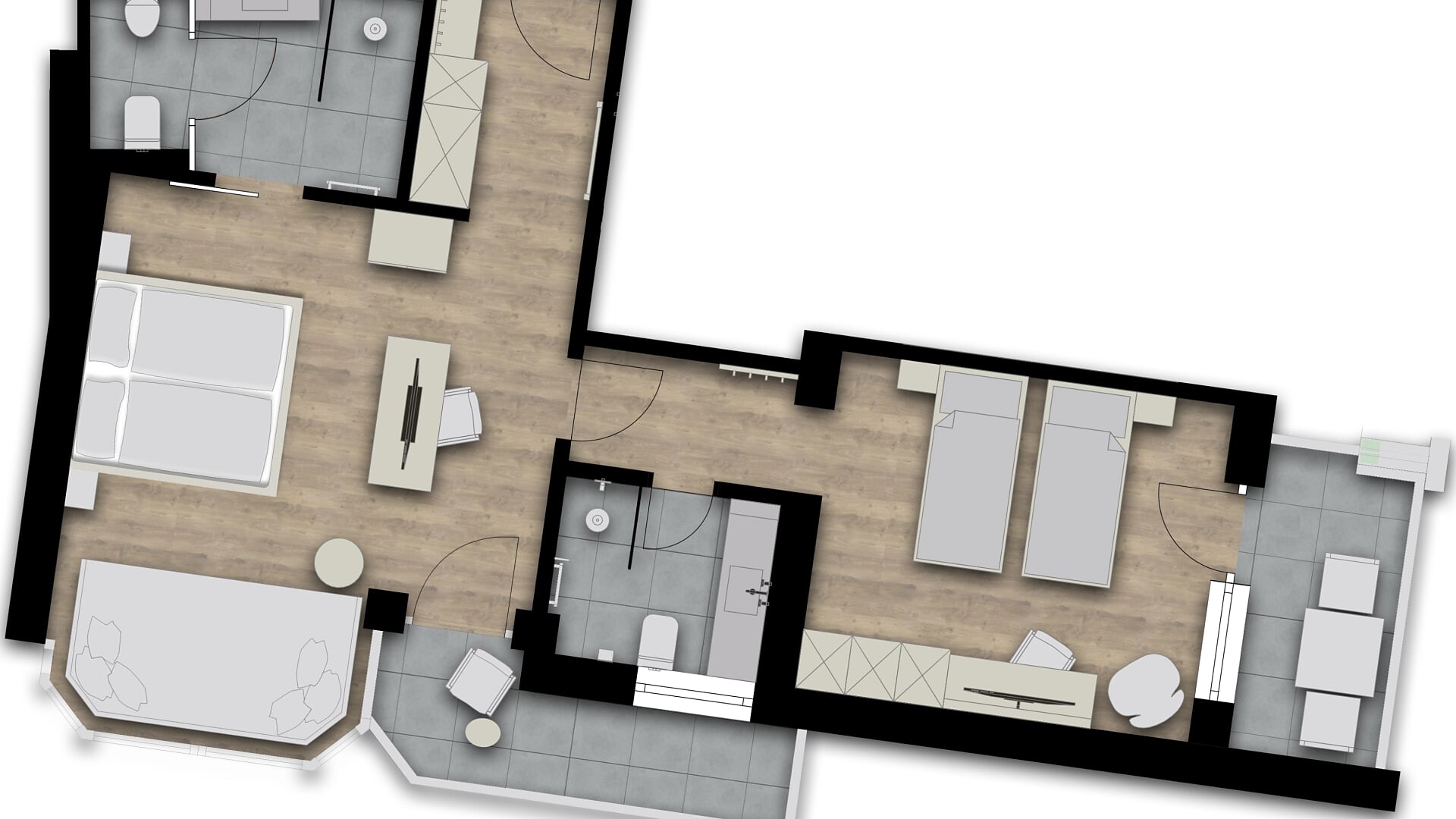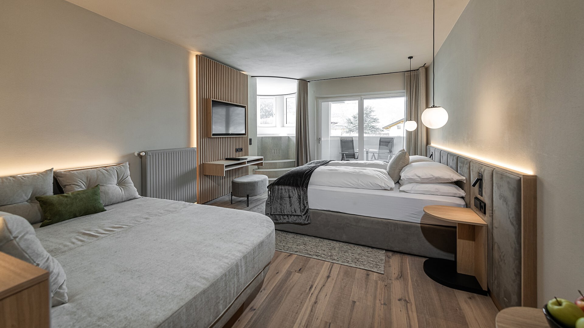 Suite with 41 m² (additional 10m² balcony)Noble wooden floorAir conditioningView towards the mountains/villageModern bathroom with separate WC and bidetWellness bag with bathrobe and towels for your entire stayThe room is located on the first floor.