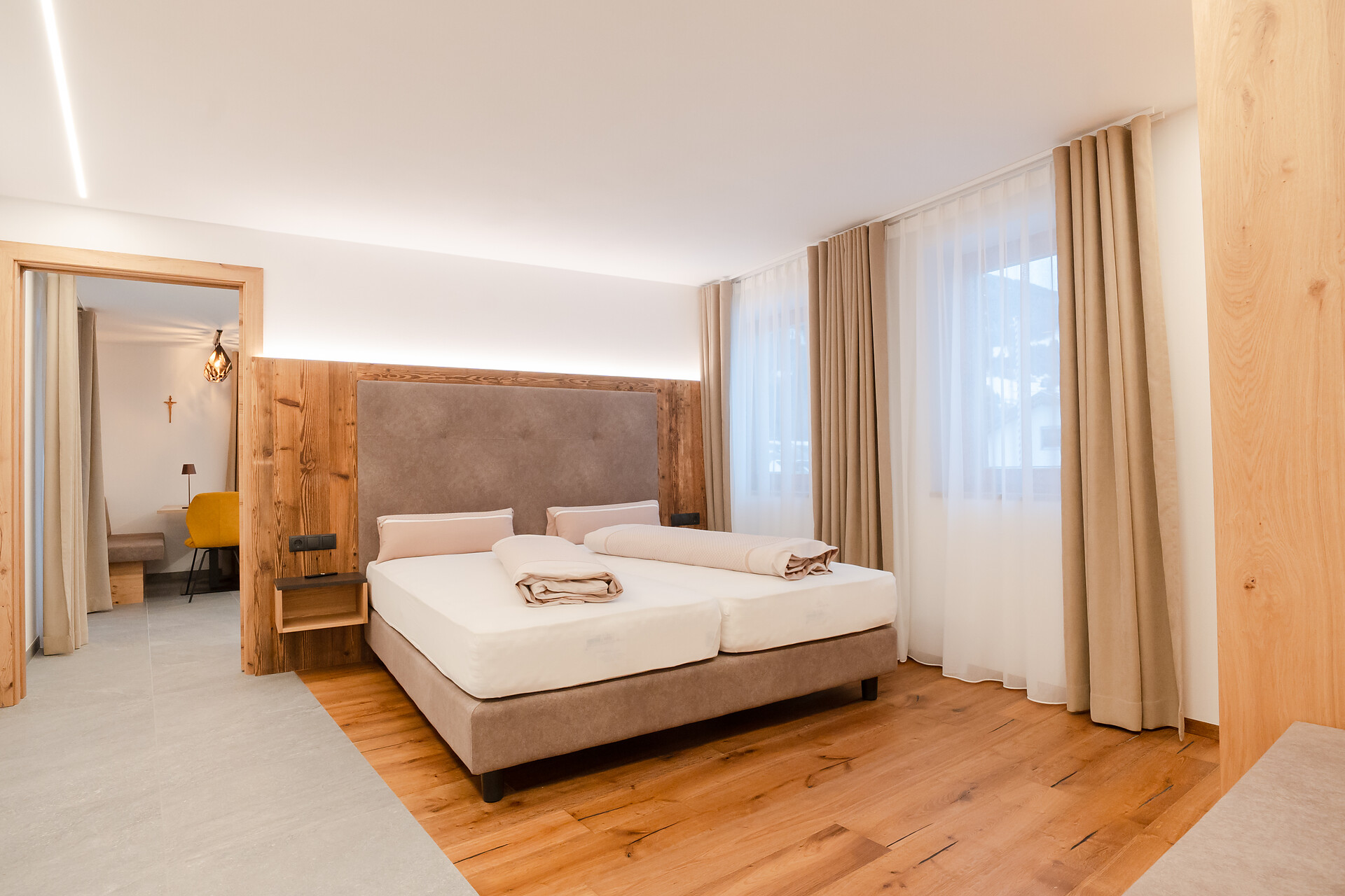 Solid wood furniture and underfloor heating provide a warm and inviting atmosphere.