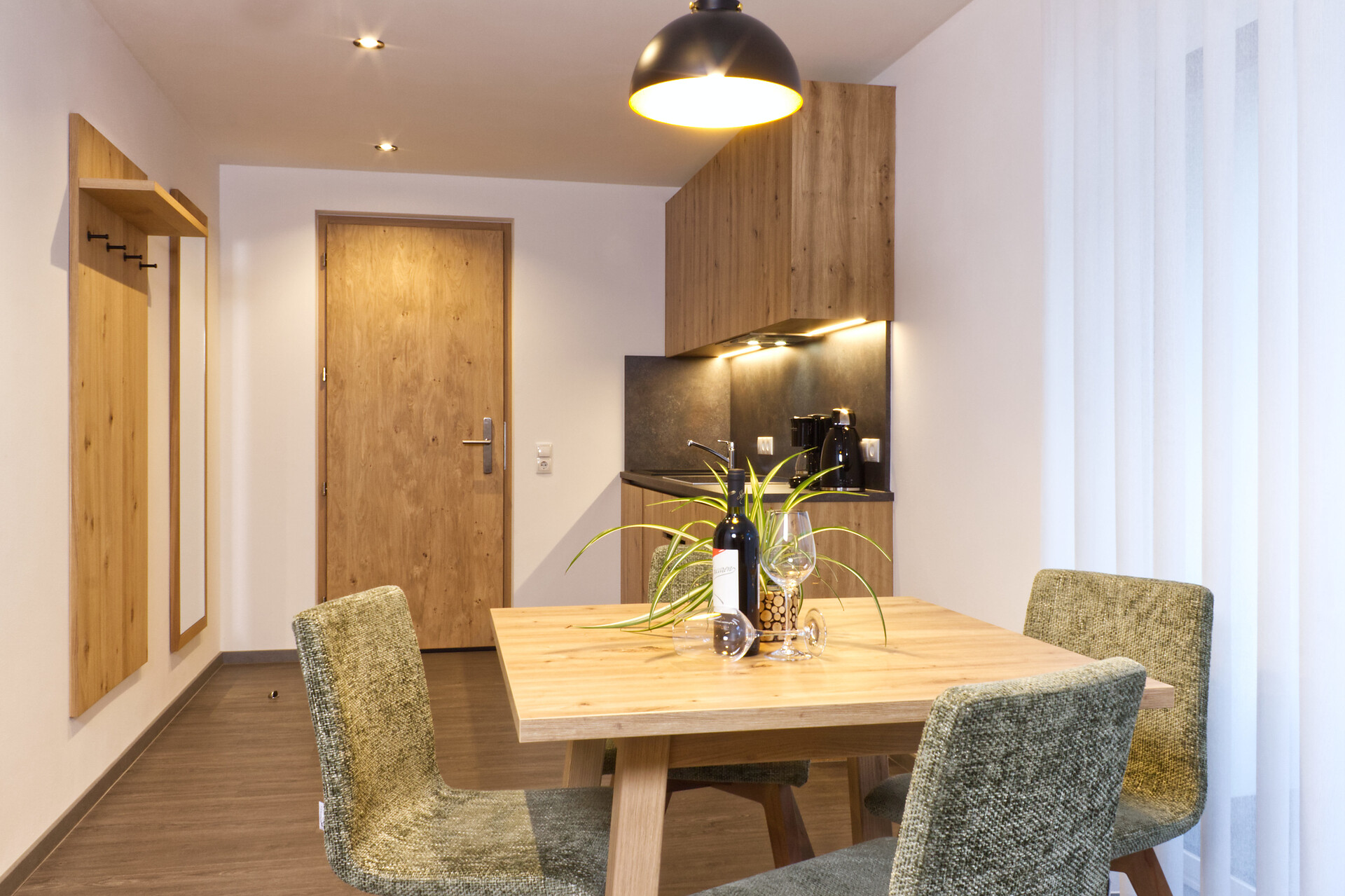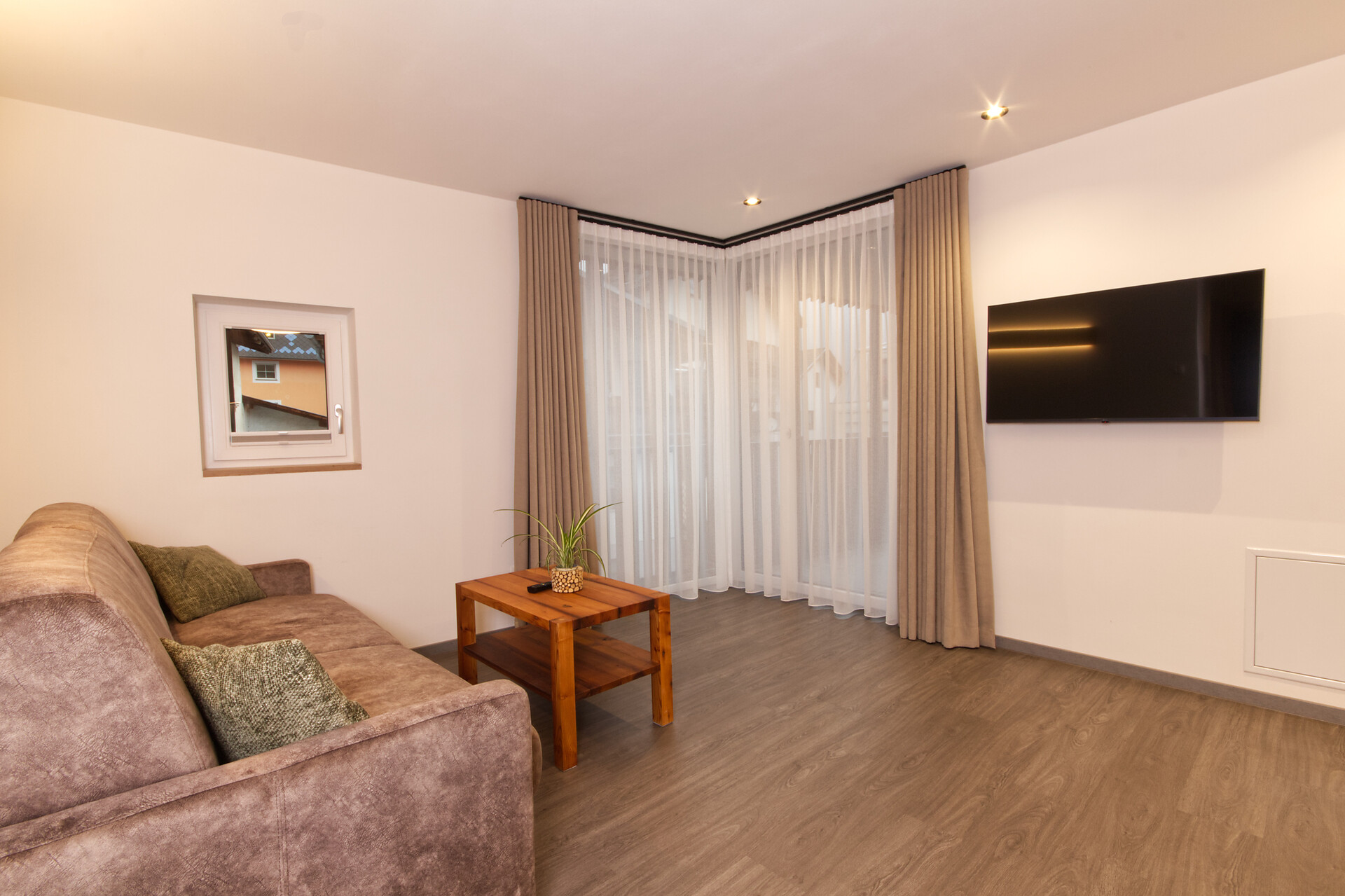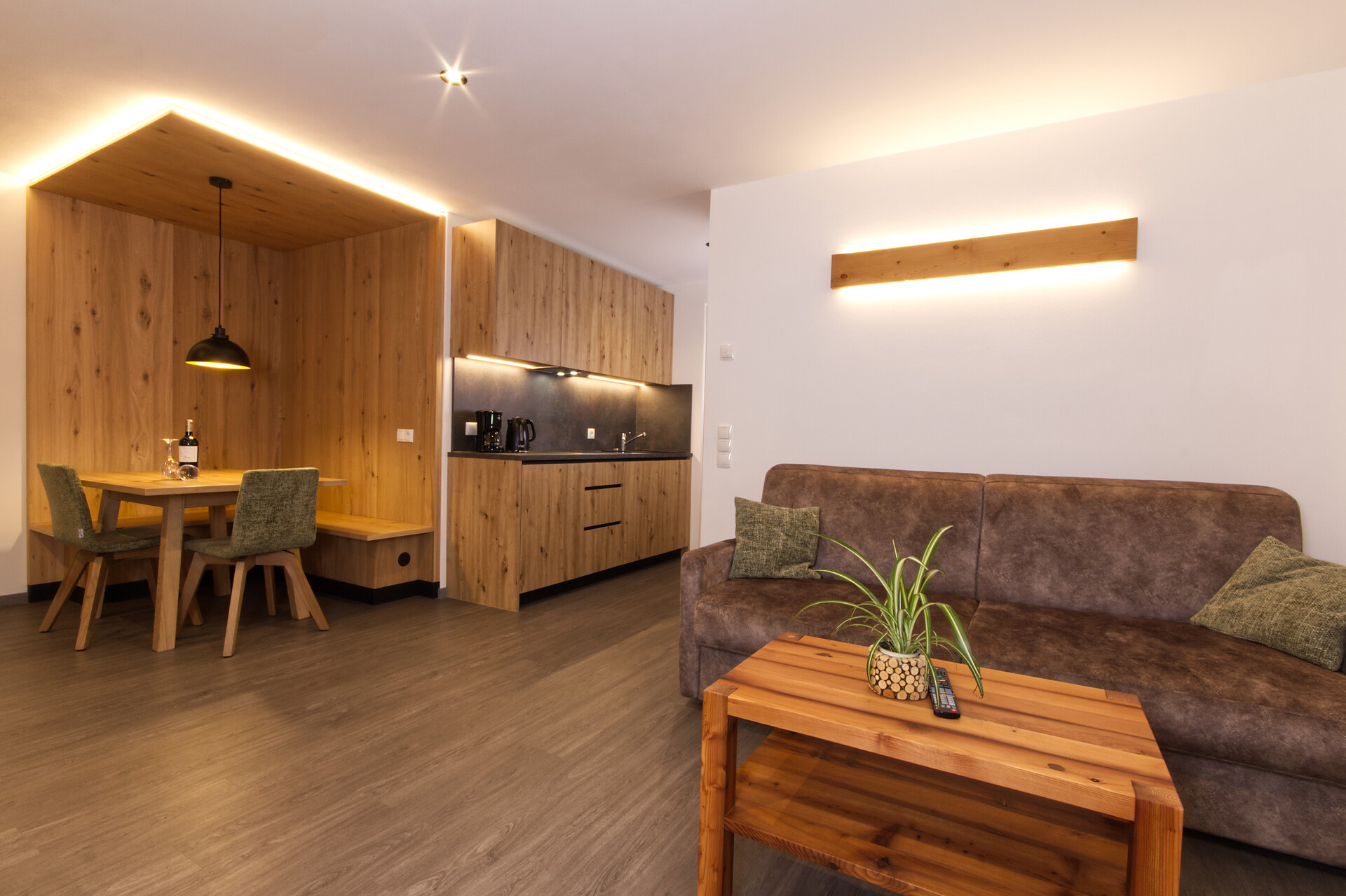 The "Montoni" apartment is on the 2nd floor and has a beautiful all-round view of the Venosta valley and the Prader town centre from the terrace. Like all other apartments, it has a cozy living area with a fully equipped kitchenette in addition to a separate bedroom.