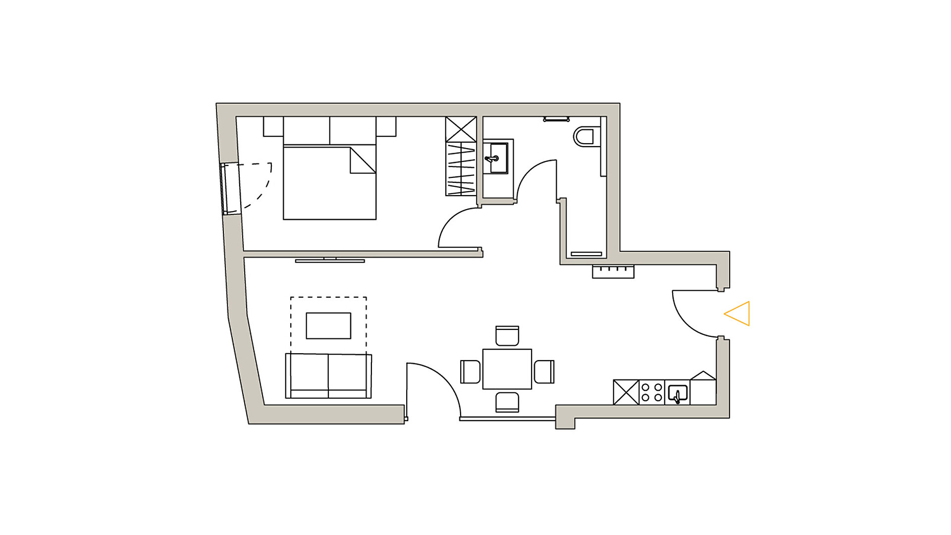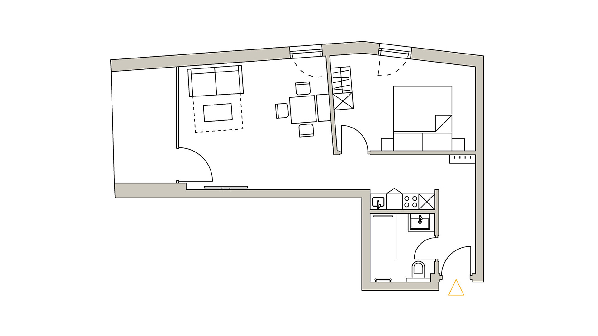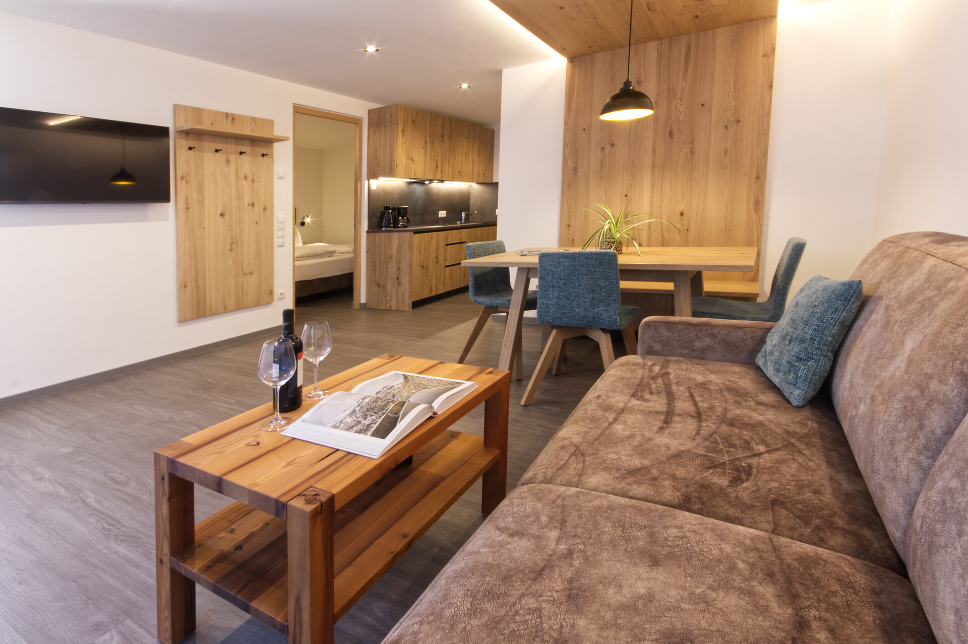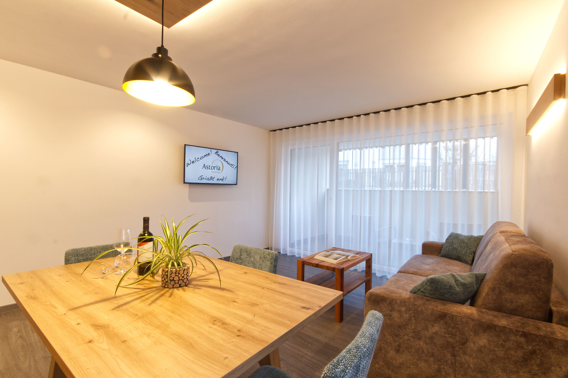 The "Montoni" apartment is on the 2nd floor and has a beautiful all-round view of the Venosta valley and the Prader town centre from the terrace. Like all other apartments, it has a cozy living area with a fully equipped kitchenette in addition to a separate bedroom.
