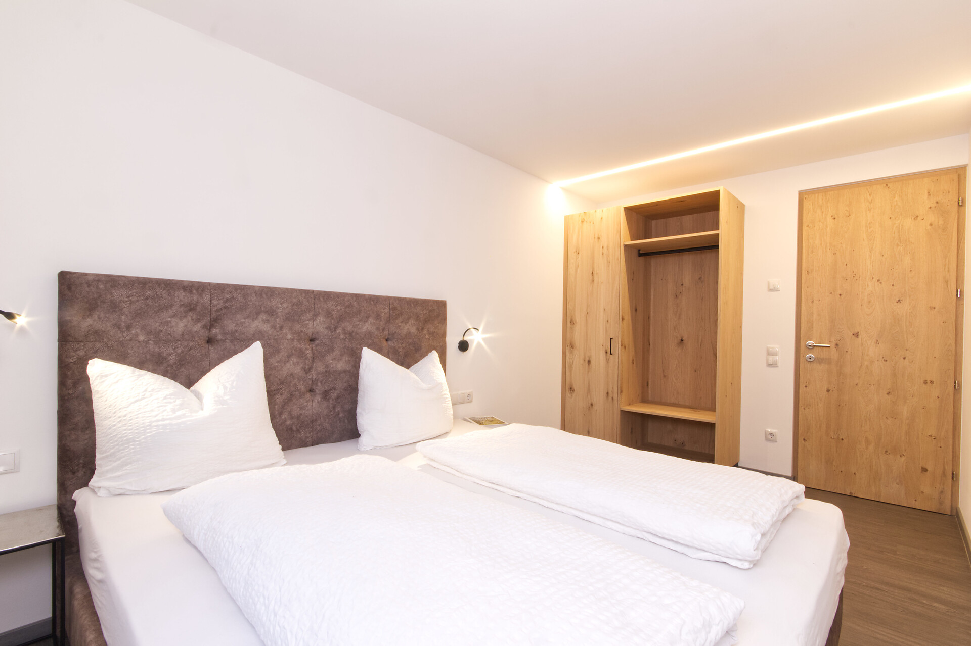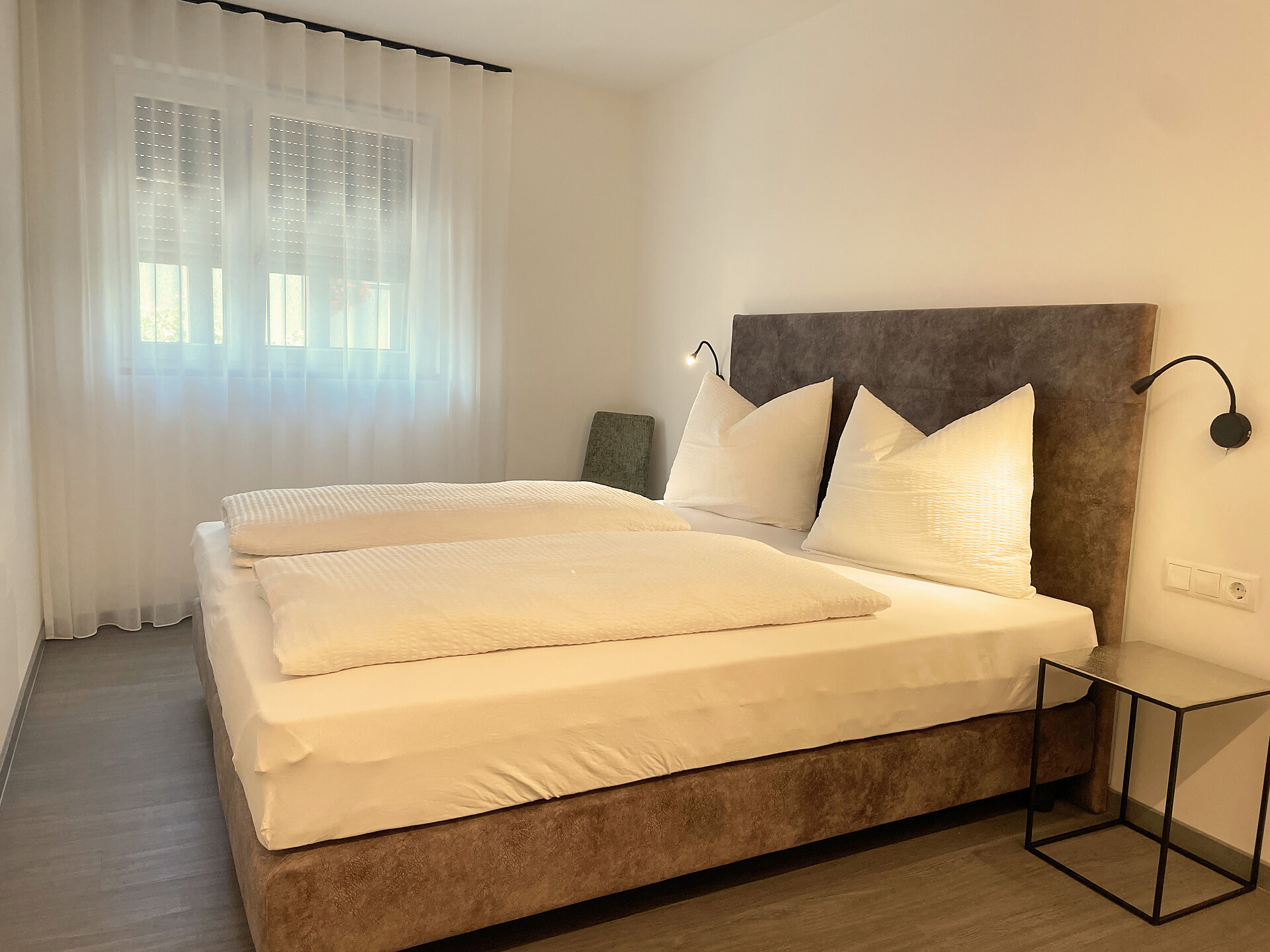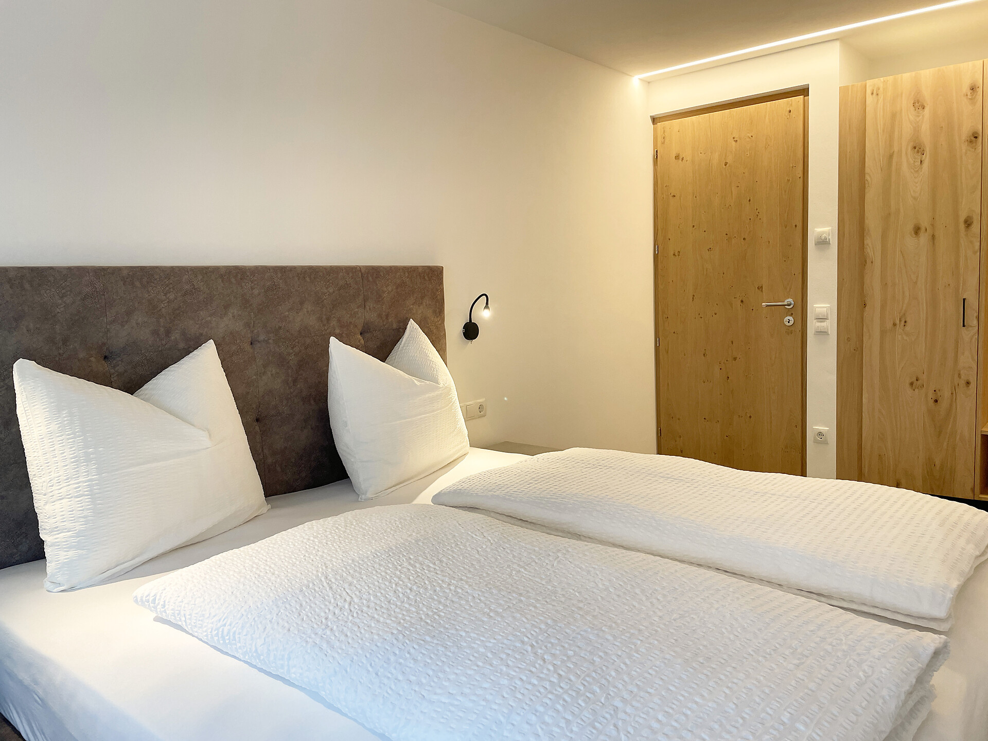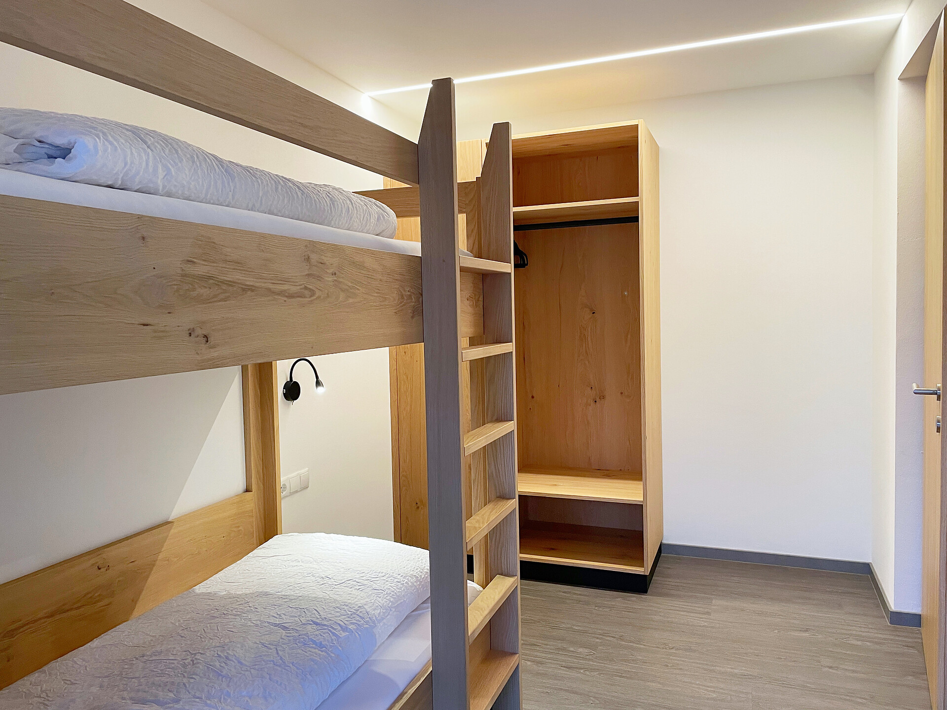 Spacious apartment on the 2nd floor in our newly built dependance with 2 bedrooms (1 bedroom with double bed & 1 children's room with bunk bed), eat-in kitchen with fully equipped kitchen, sofa (can also be used as a full sofa bed) & covered balcony (completion July 2023).