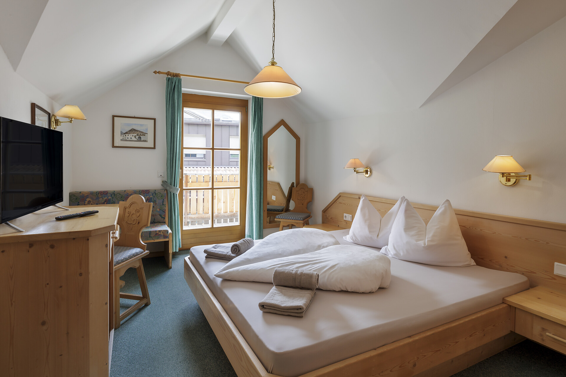 Double room, Double bed , Balcony, Shower / Bath tub, TV, Satellite/Cable, WLAN, Main building