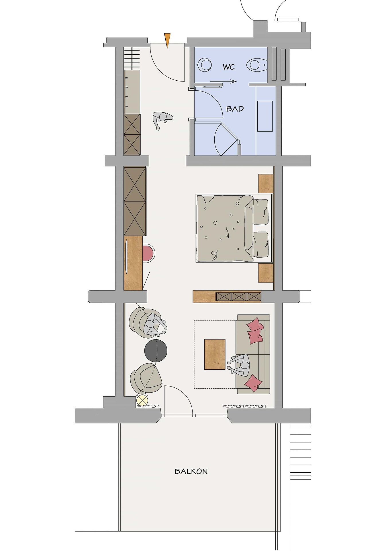 Double room, Double bed , Mini-bar, Safe, Shower / Bath tub, TV, Satellite/Cable, Internet access, Main building, South view