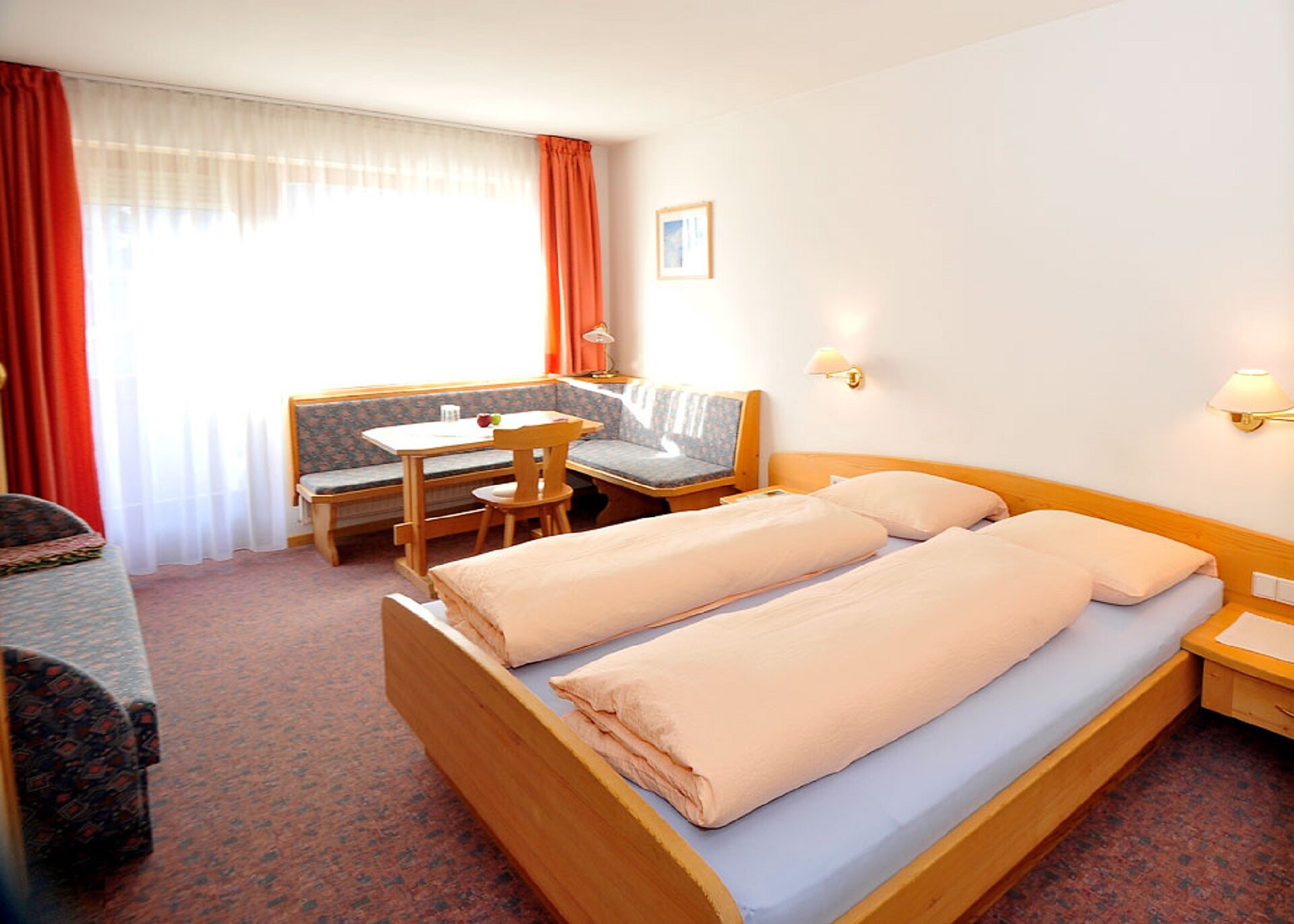 Double room, Double bed , Sofa bed, Balcony, Room with connecting door, Safe, Shower / Bath tub, TV, Satellite/Cable, Main building, South view